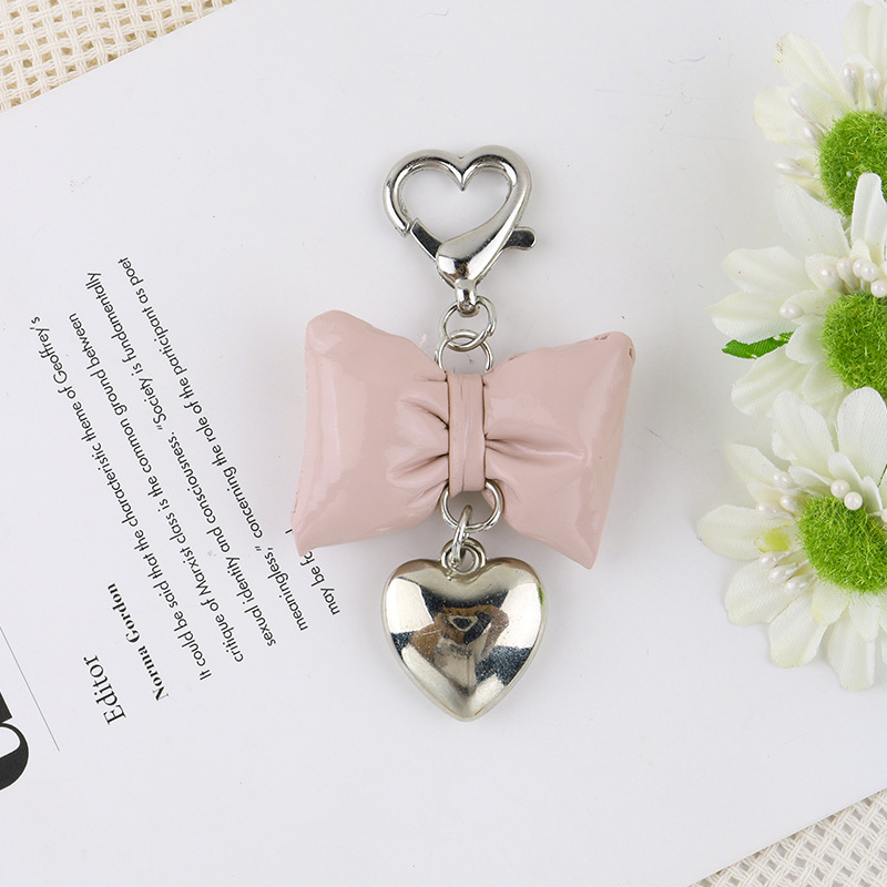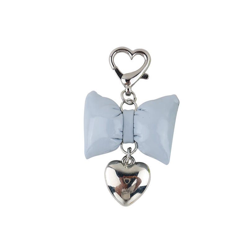新款创意小皮革蝴蝶结树脂银色爱心车钥匙扣包挂饰钥匙扣装饰挂件