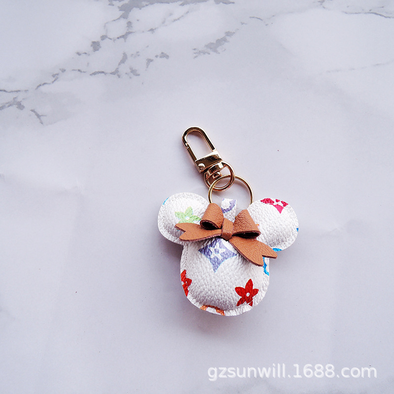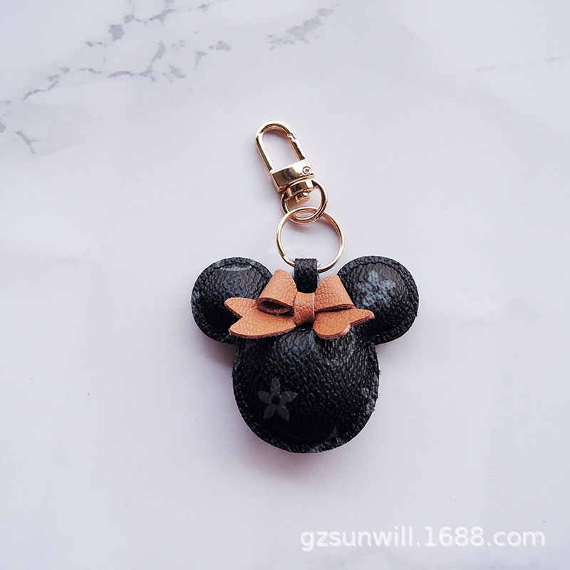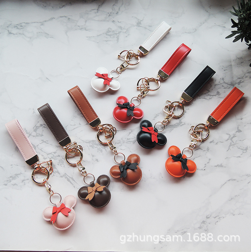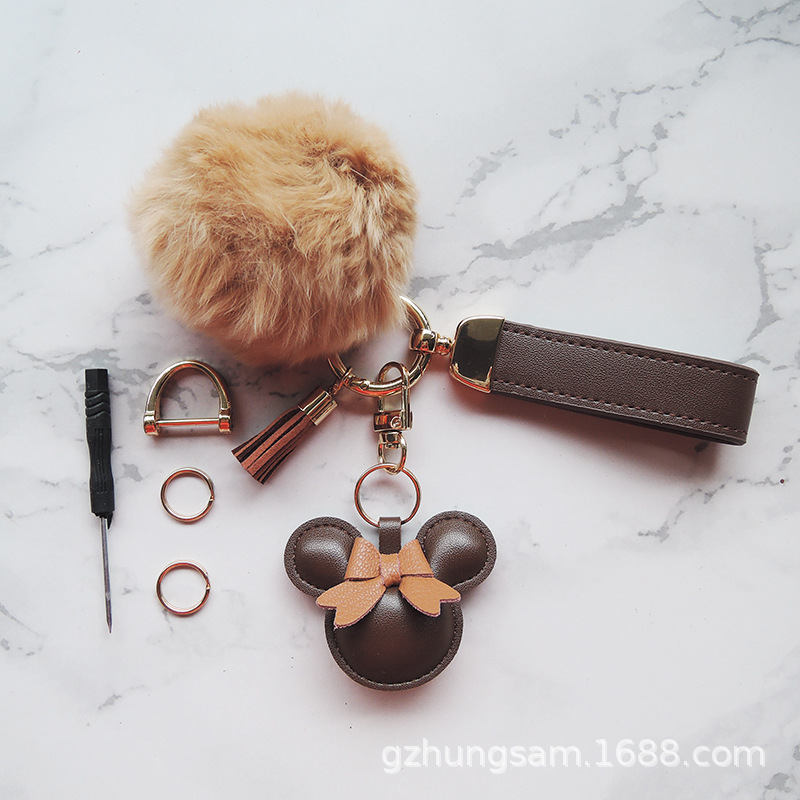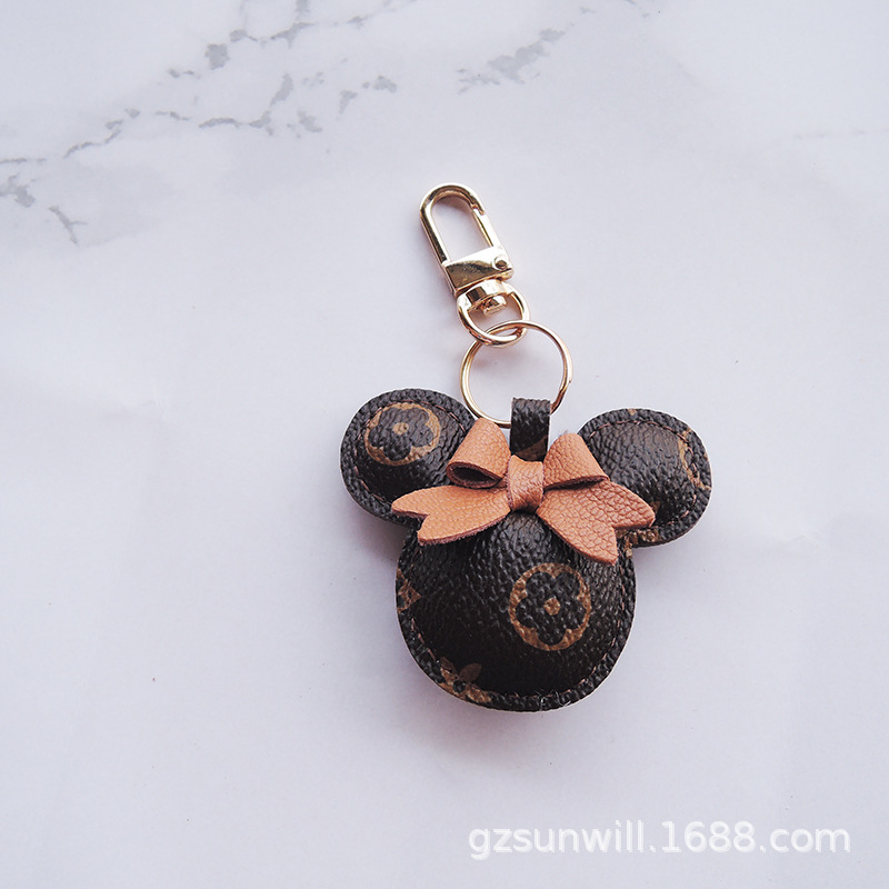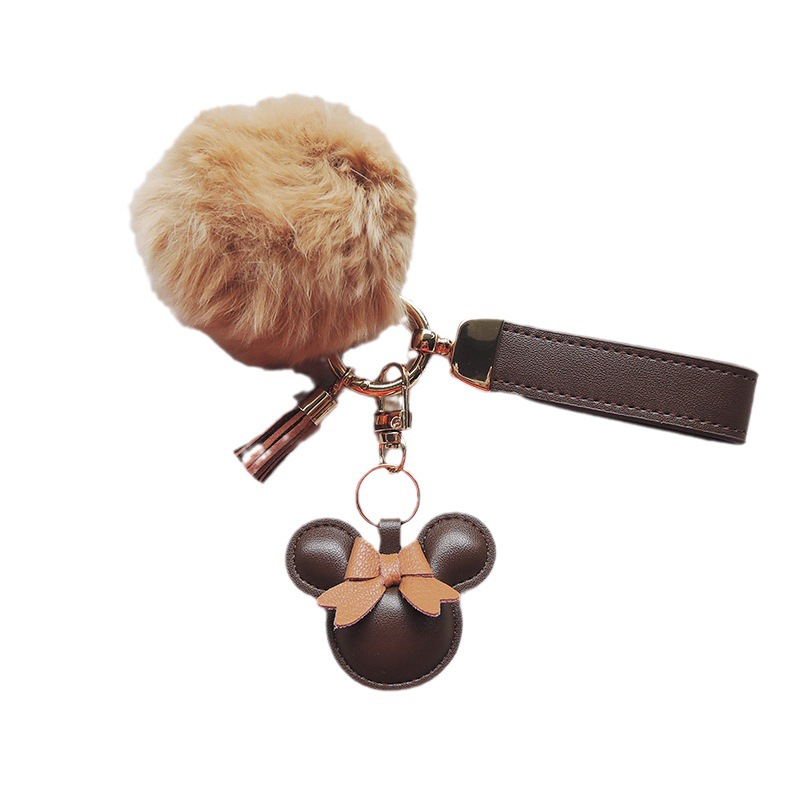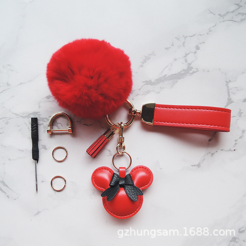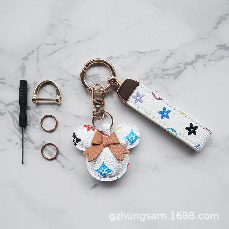 老花钥匙扣皮革蝴蝶结米奇 格子纹米妮兔毛球挂件手绳汽车钥匙链