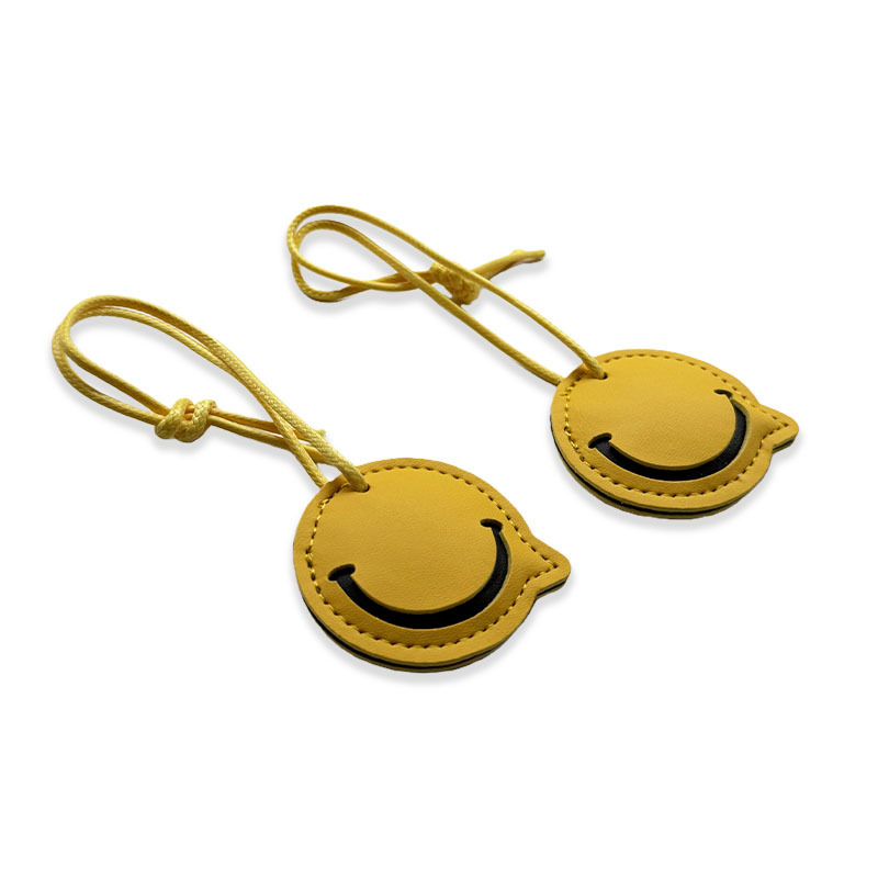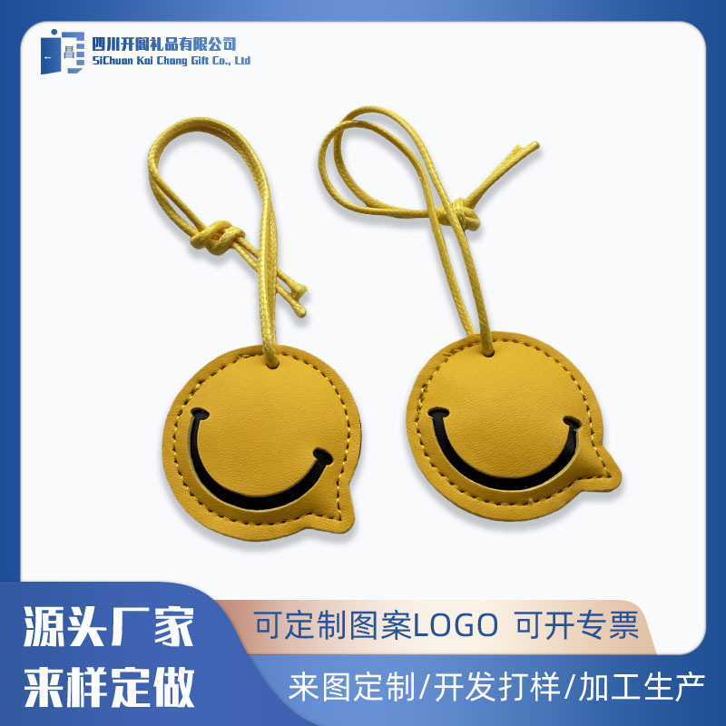 供应PU皮质包挂件童趣可爱包包挂饰多层拼接撞色笑脸包挂坠小礼品