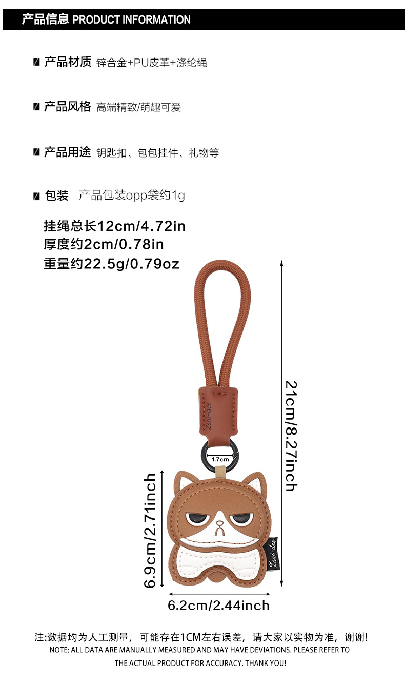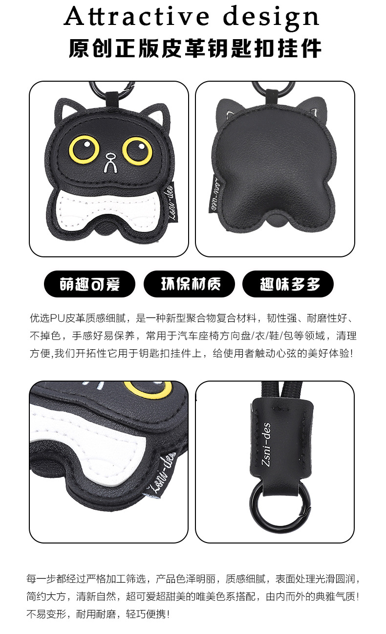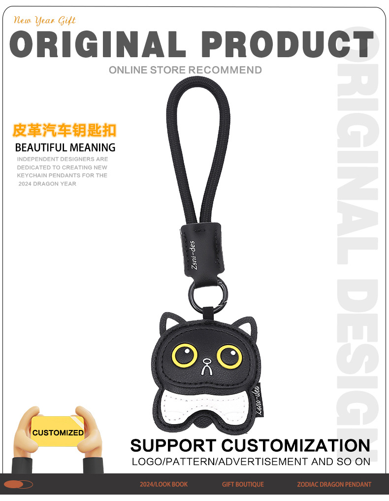 皮革小猫挂件钥匙扣可爱情侣卡通皮质创意礼物公仔包包挂饰批发