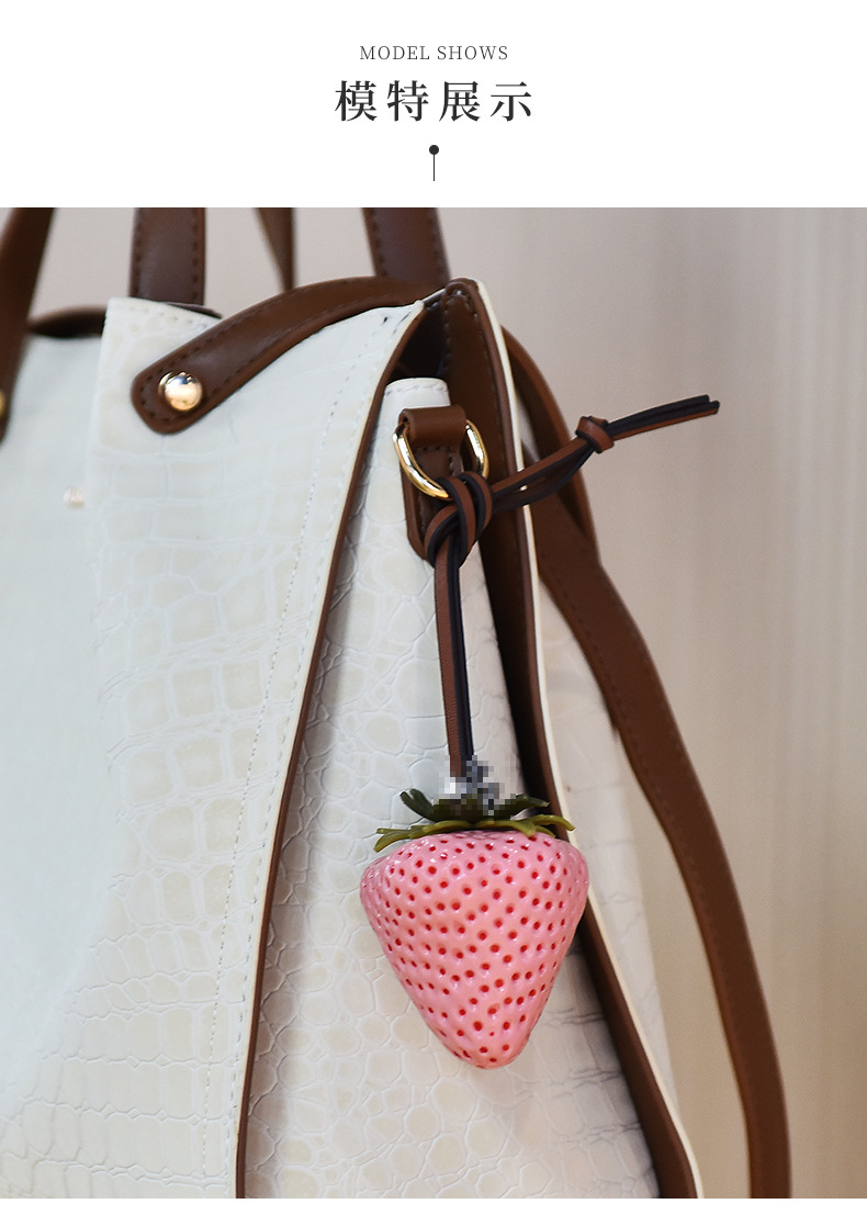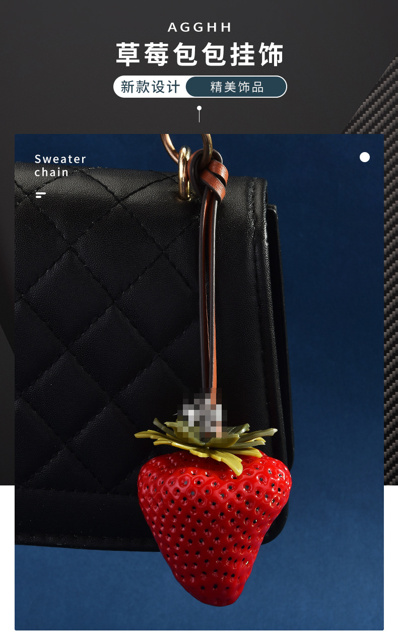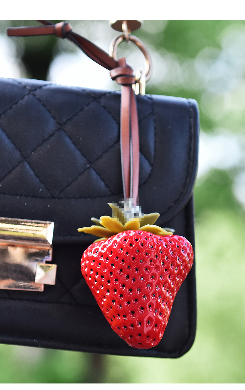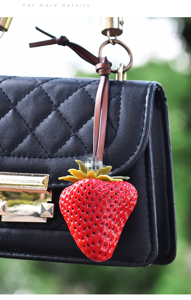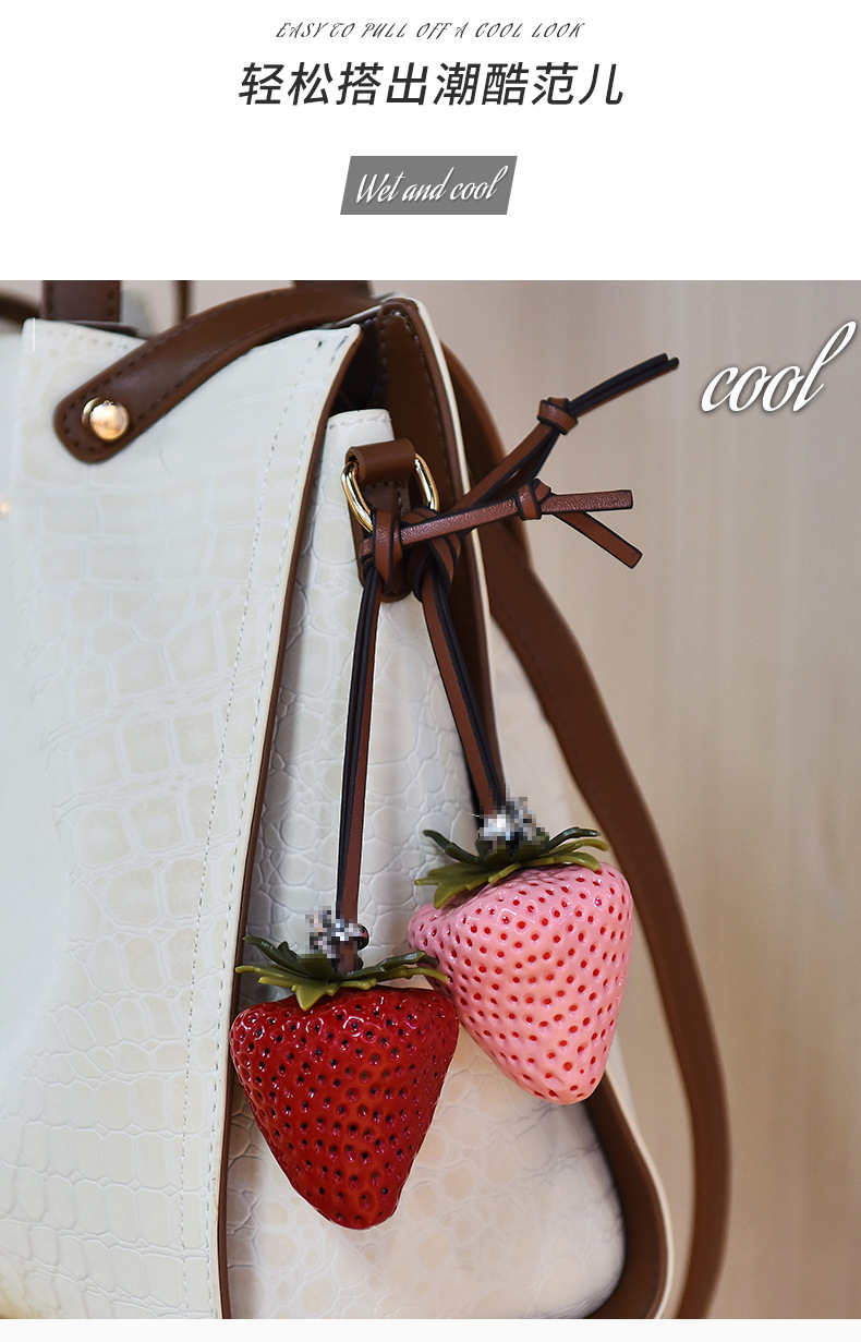 跨境热销立体大草莓包包挂饰个性皮革包包草莓钥匙扣女包配饰批发