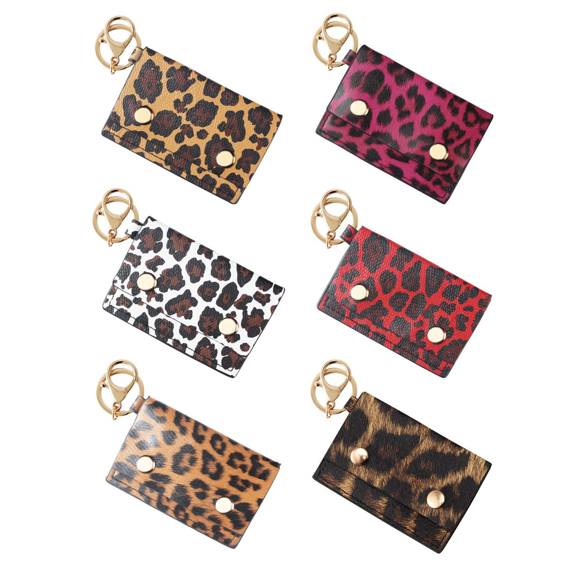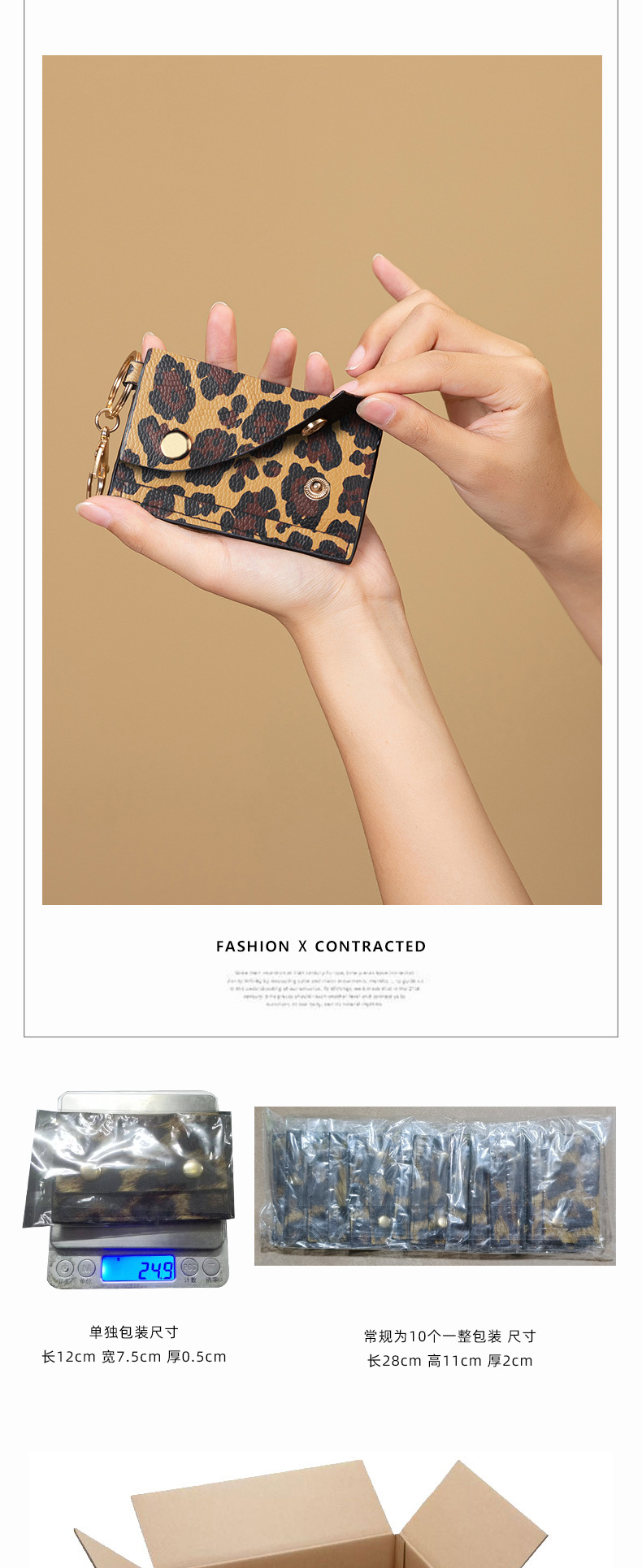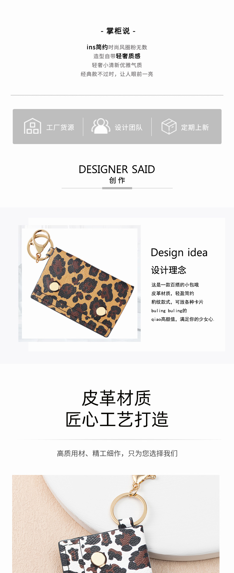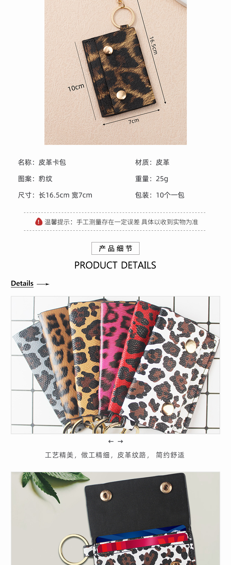 跨境新款豹纹PU皮革钥匙扣挂件女零钱包卡包手拿包证件包亚马逊