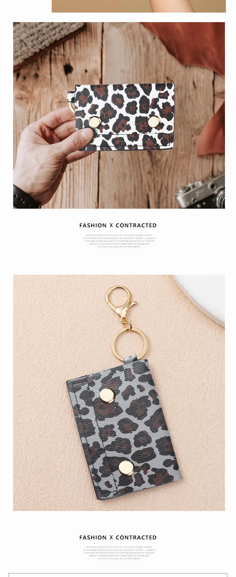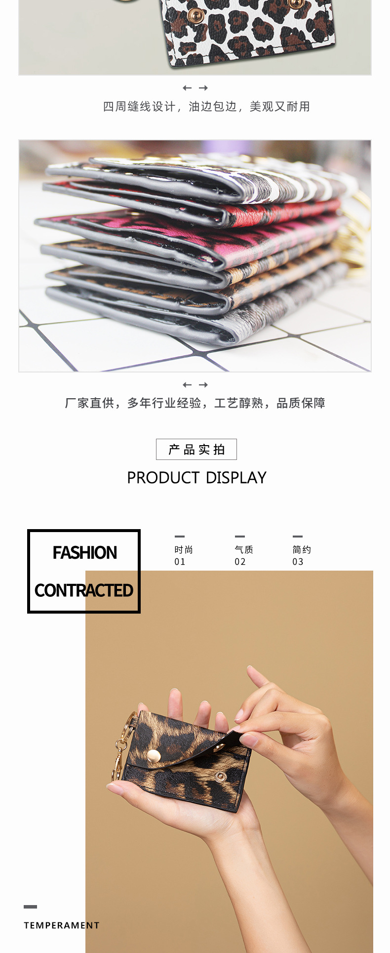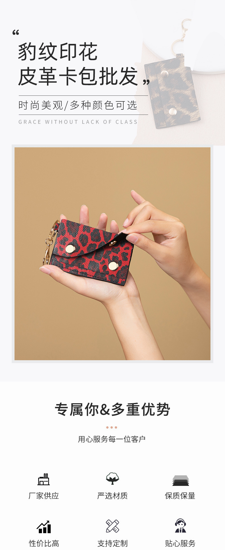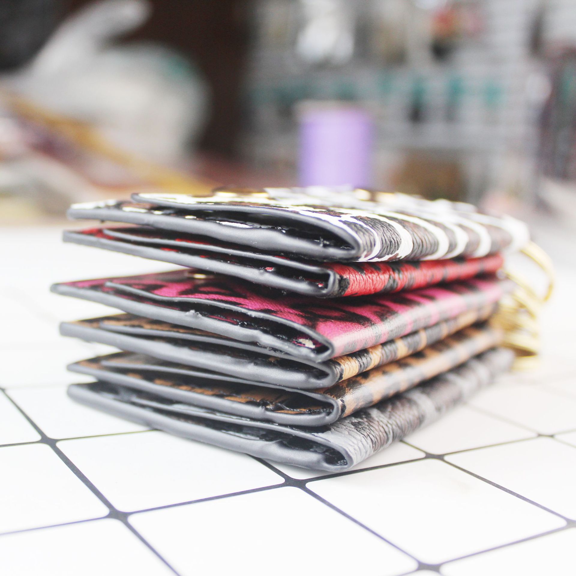跨境新款豹纹PU皮革钥匙扣挂件女零钱包卡包手拿包证件包亚马逊