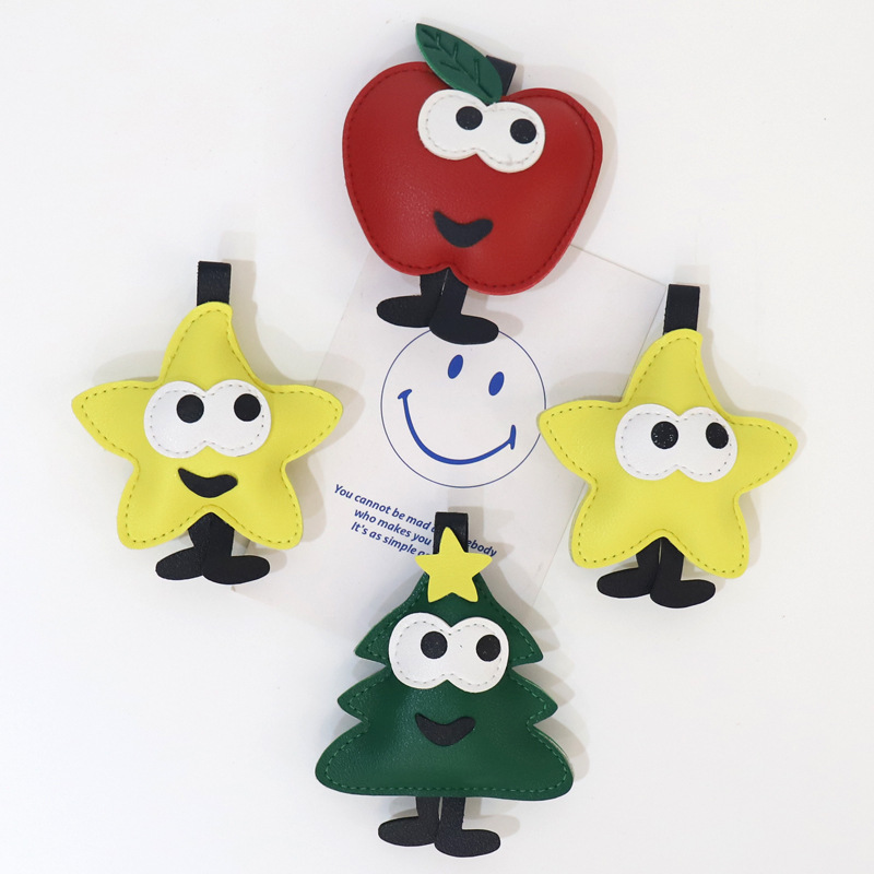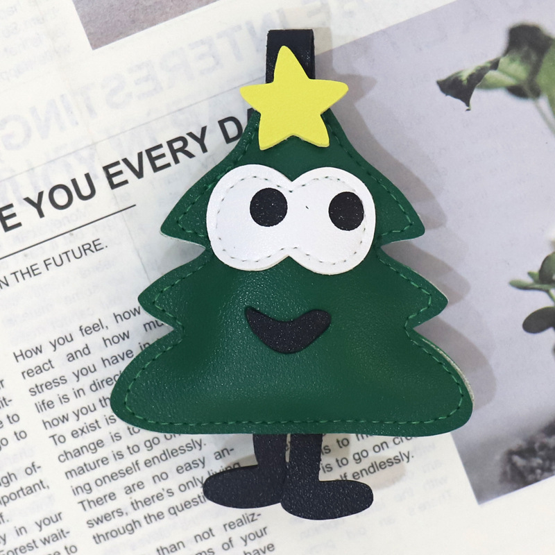 圣诞皮革 公仔挂件百搭钥匙扣 挂饰创意PU 皮玩偶背包 挂坠小礼物