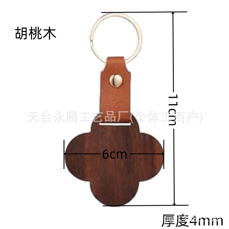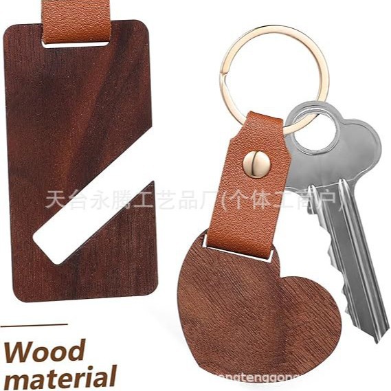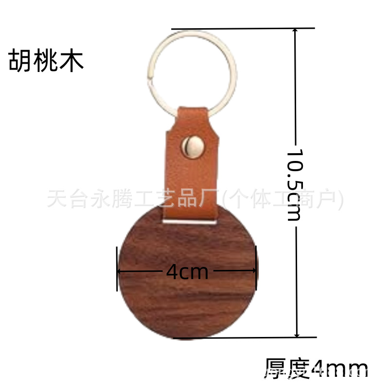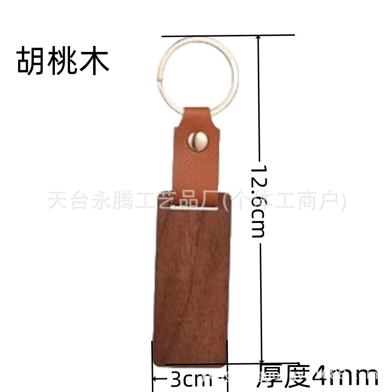 工厂批发现货跨境专供空白木头钥匙扣镭射激光木质挂件PU皮钥匙扣