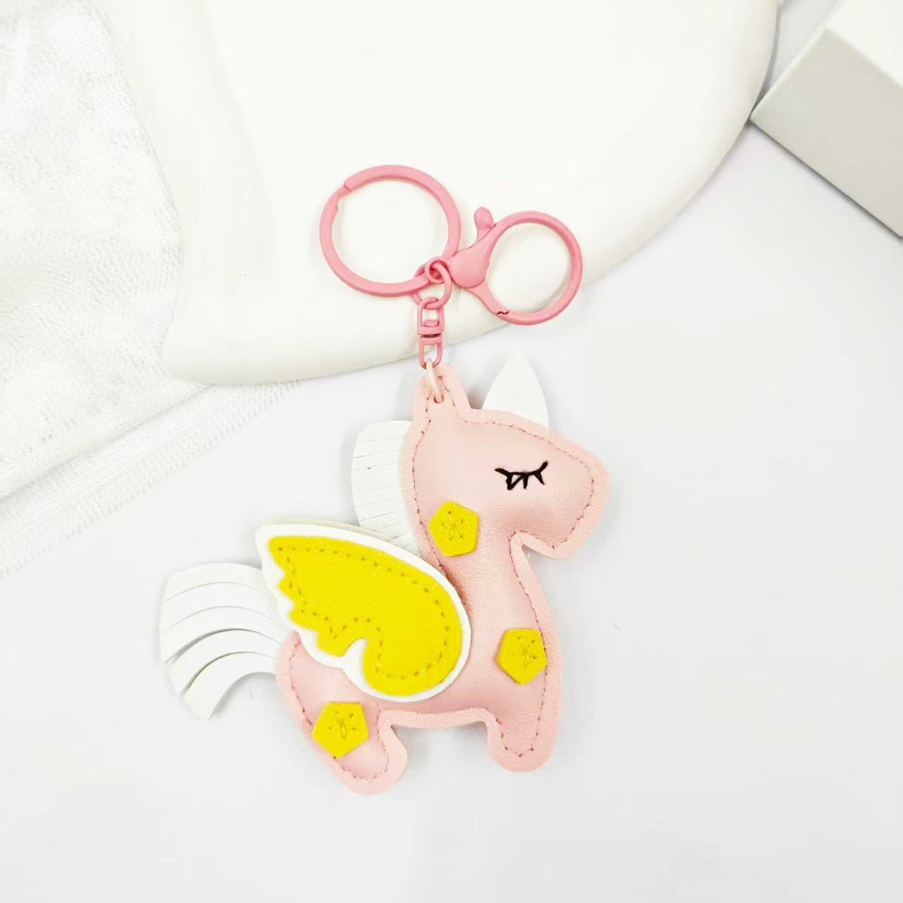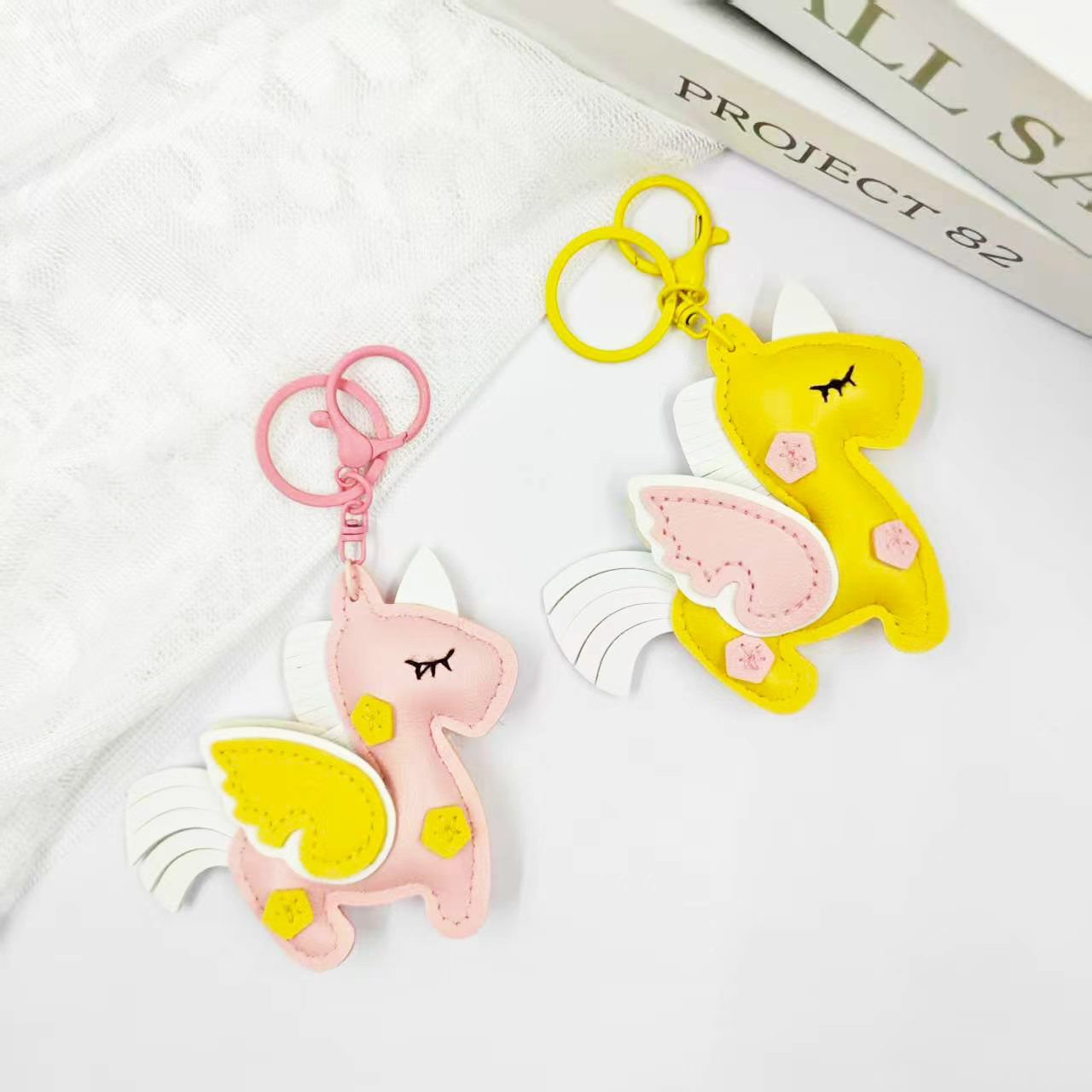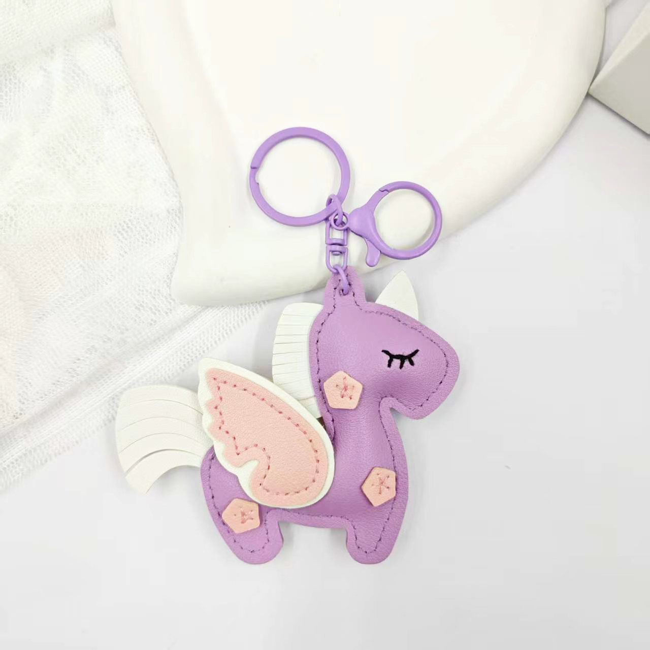 新款PU独角兽包包挂件可爰小飞马皮革钥匙扣箱包挂饰配件