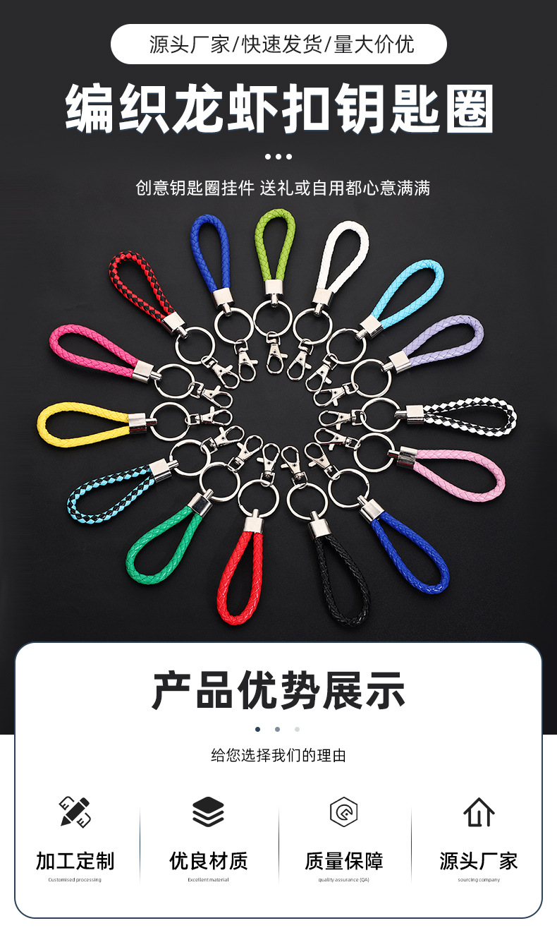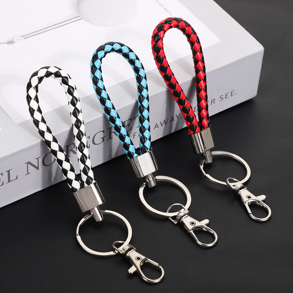 手工编织绳钥匙扣防丢汽车挂件PU皮绳钥匙圈配件包包挂饰创意礼品