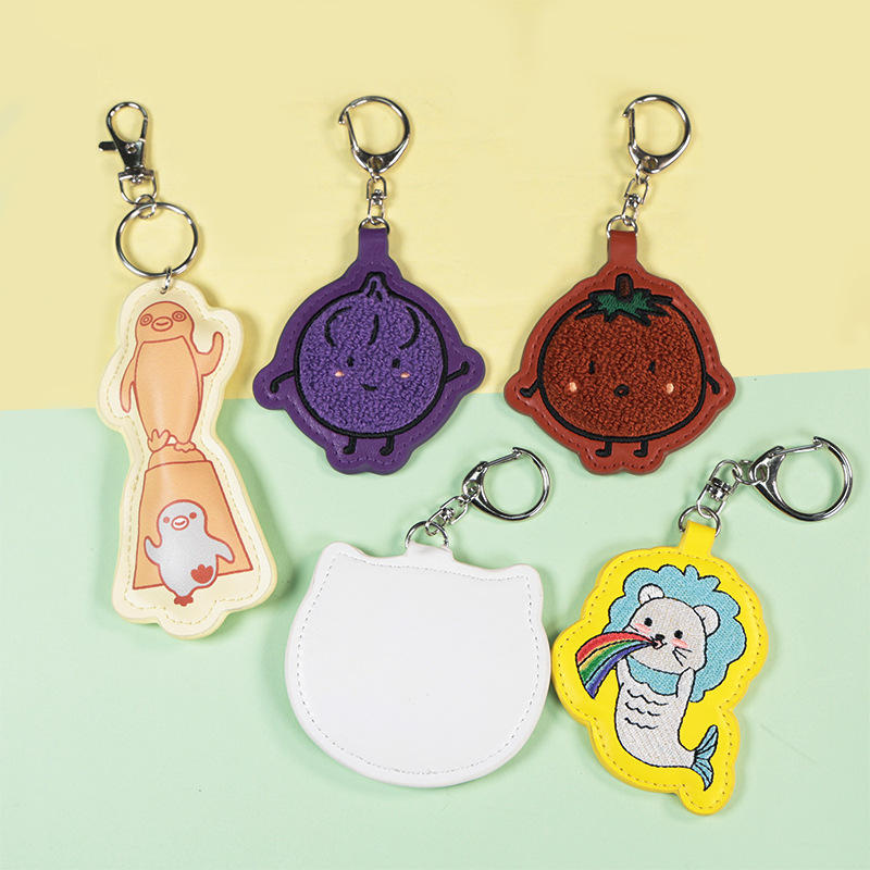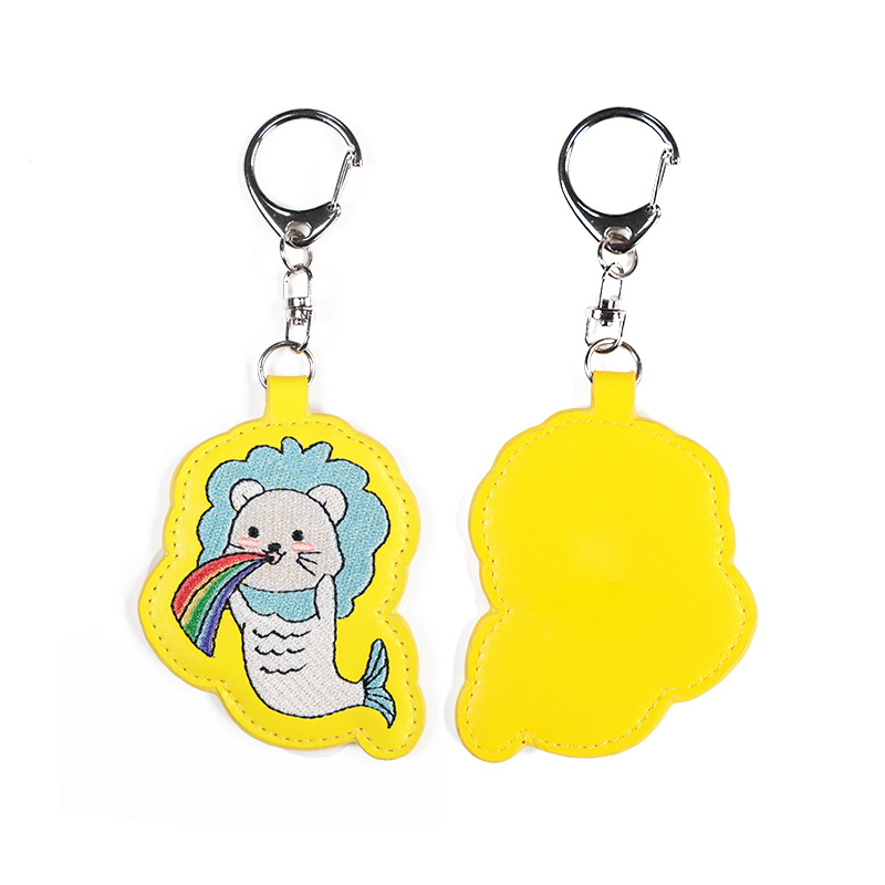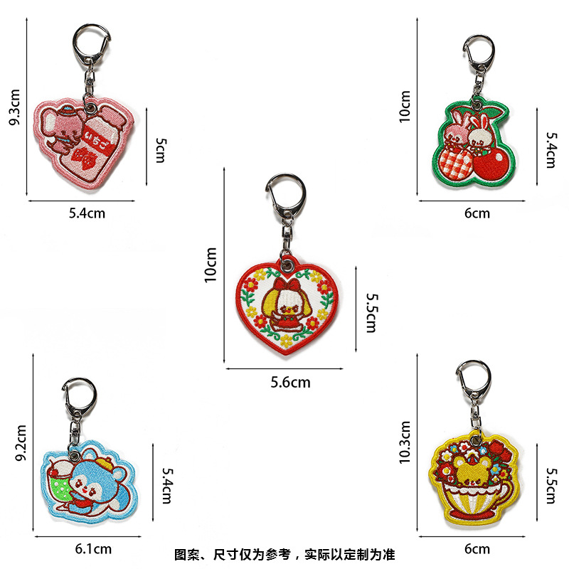 PU皮革刺绣钥匙扣卡通可爱小熊毛巾绣挂件汽车钥匙圈车载包包挂饰
