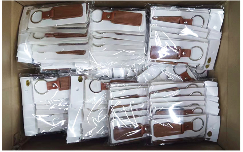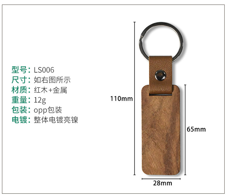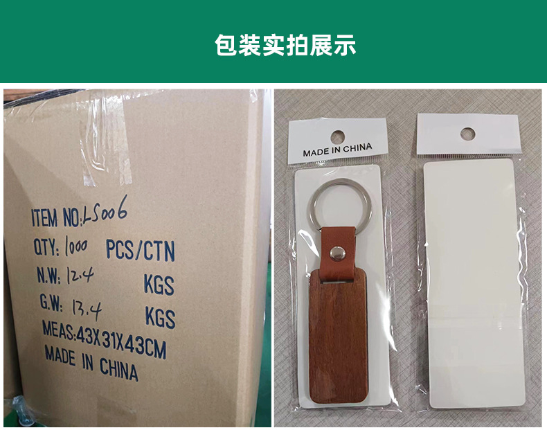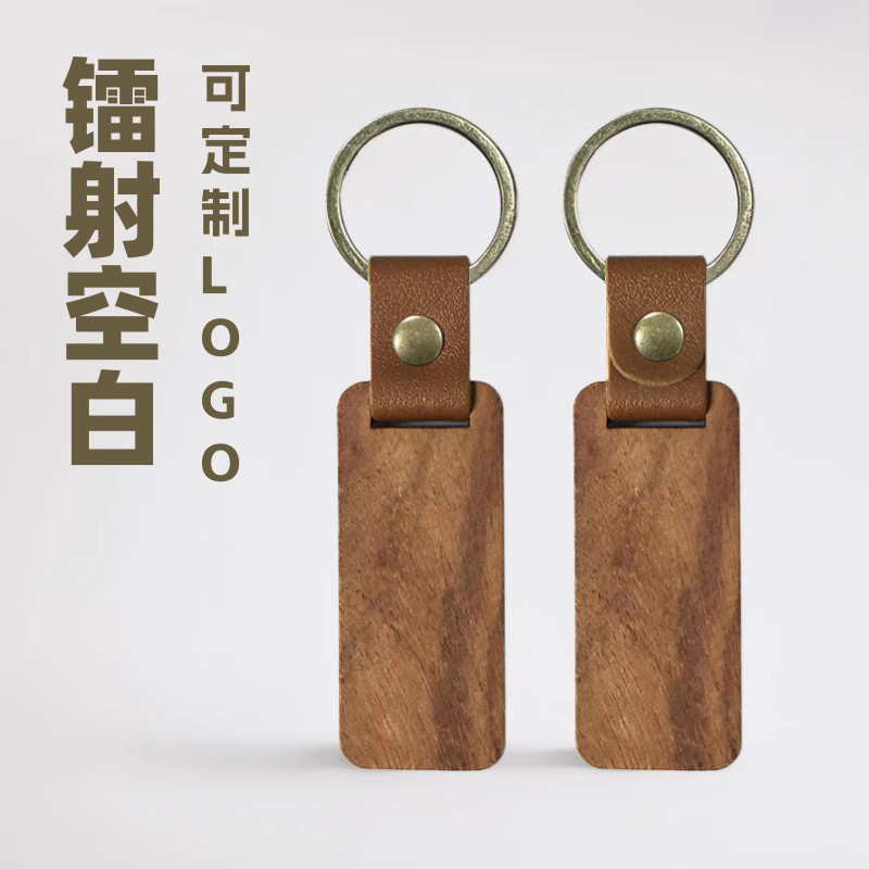 跨境亚马逊空白木头钥匙扣木质挂件PU皮镭射激光可diy定 制钥匙扣