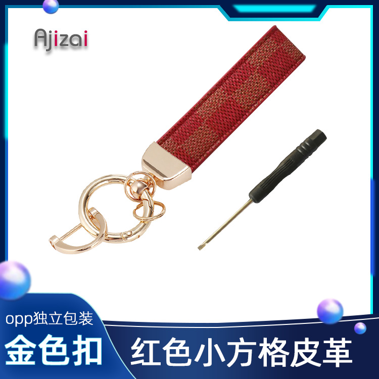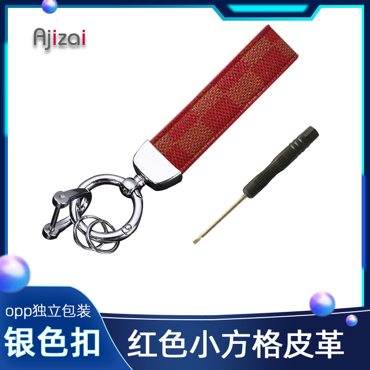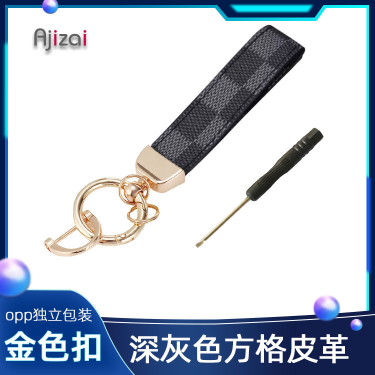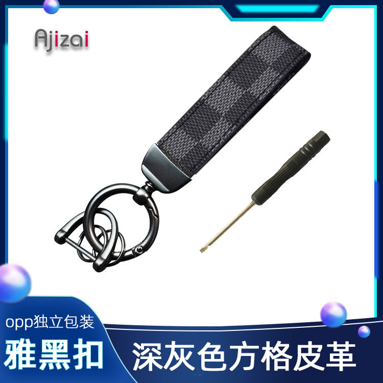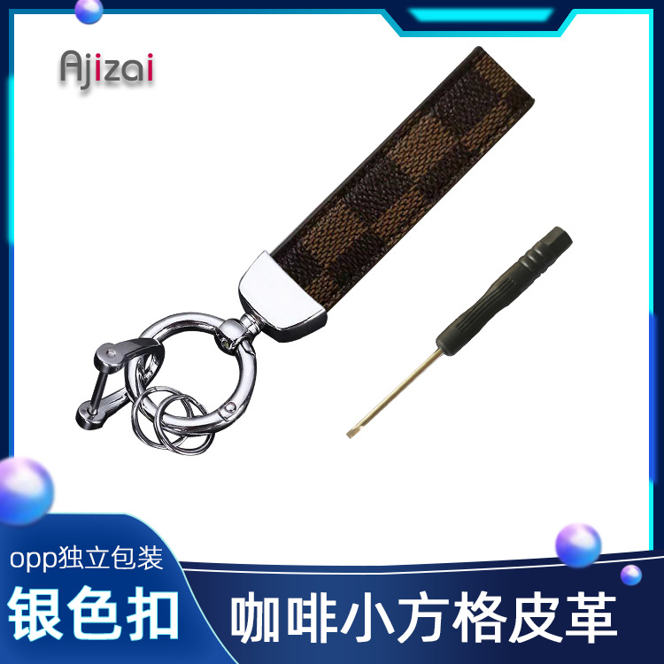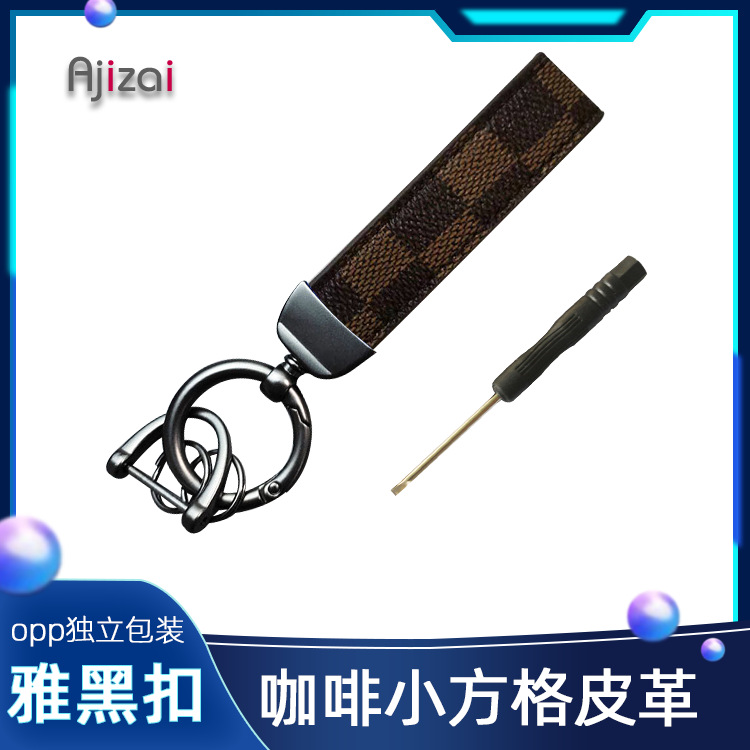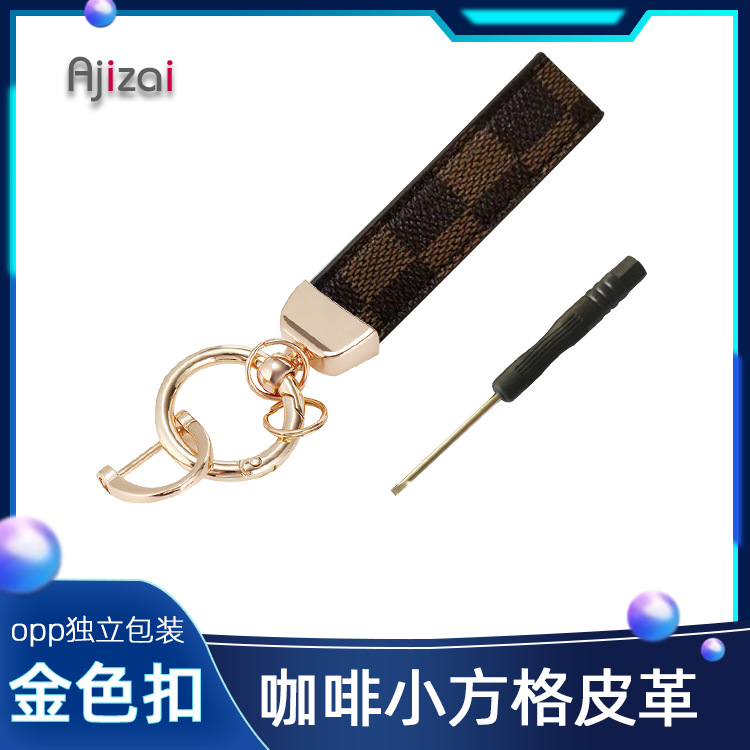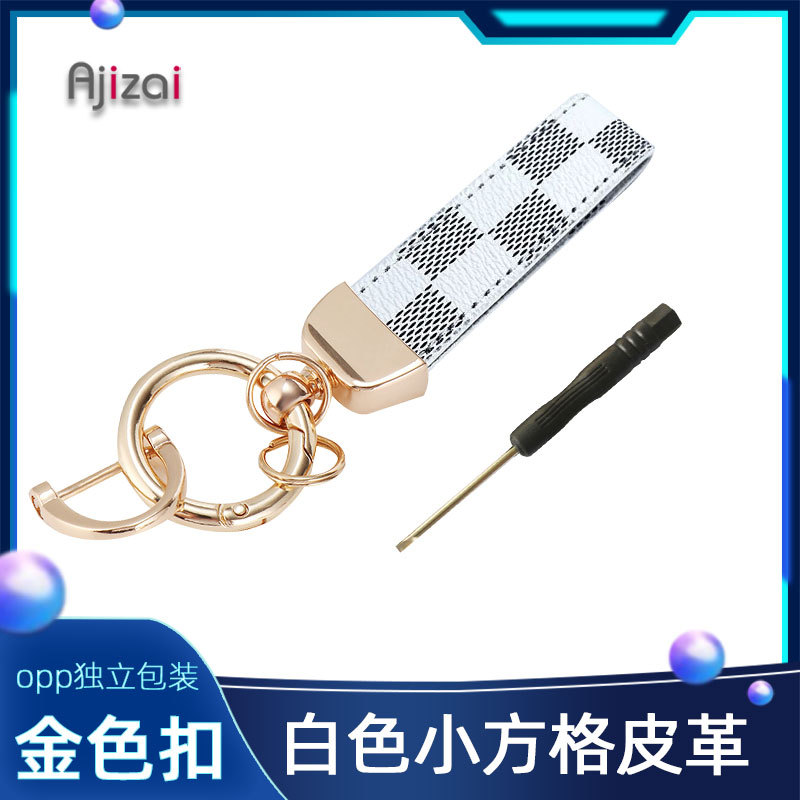 车用钥匙扣马蹄扣潮花瓣方格纹印刷卡通图案皮革印logo礼品牌外贸
