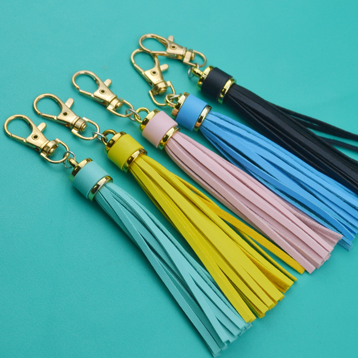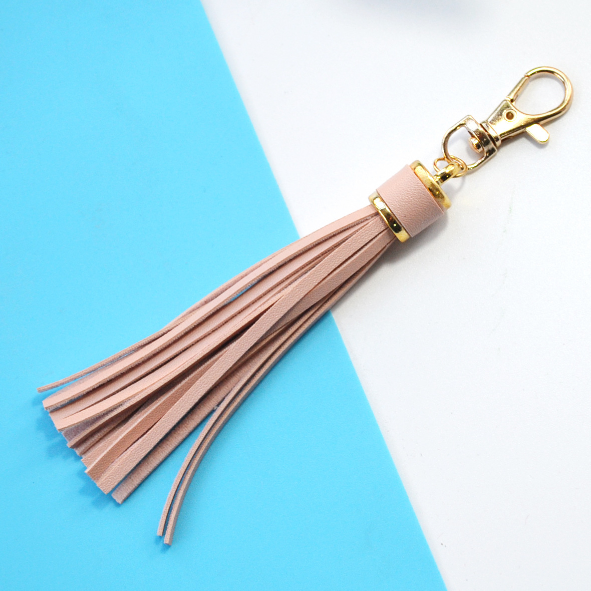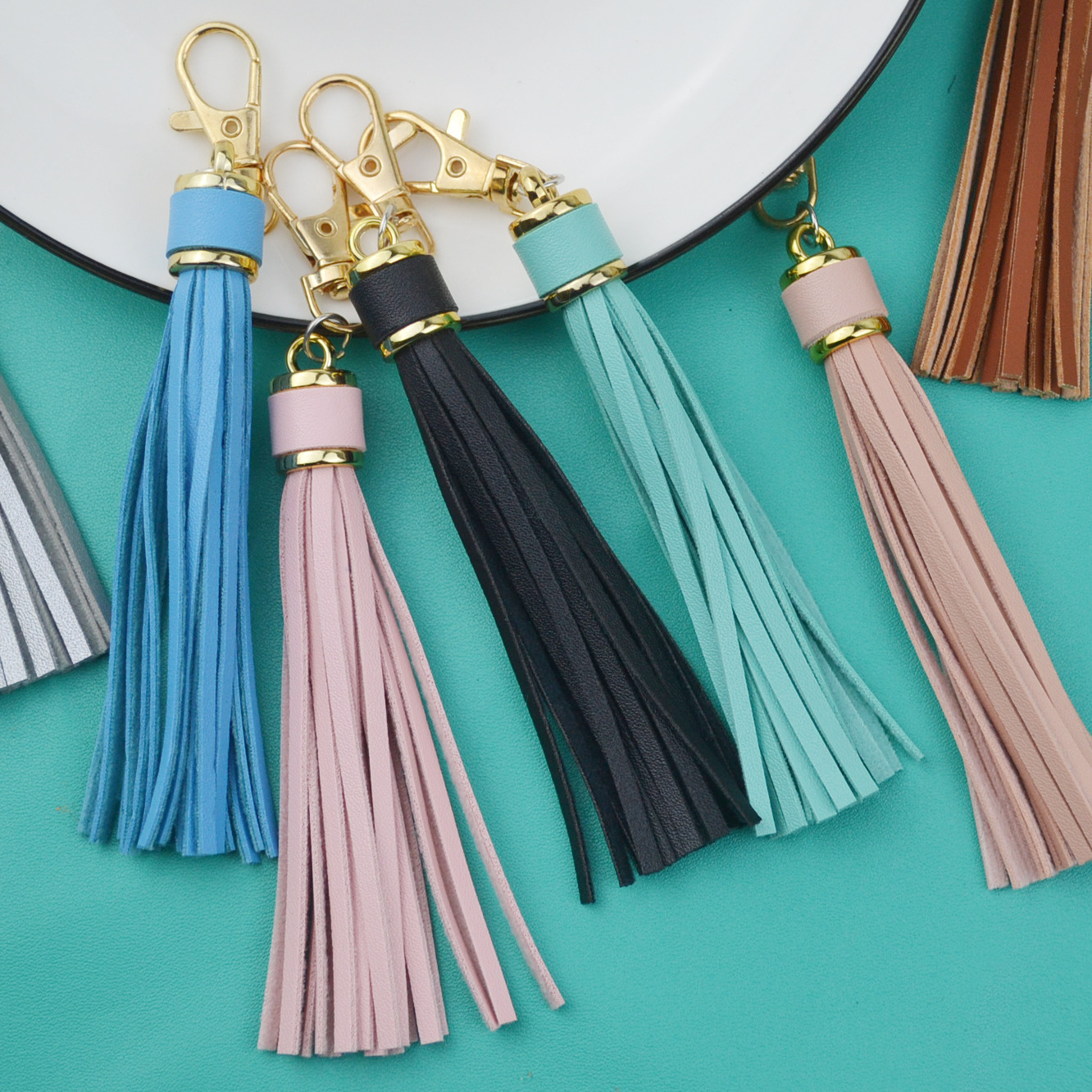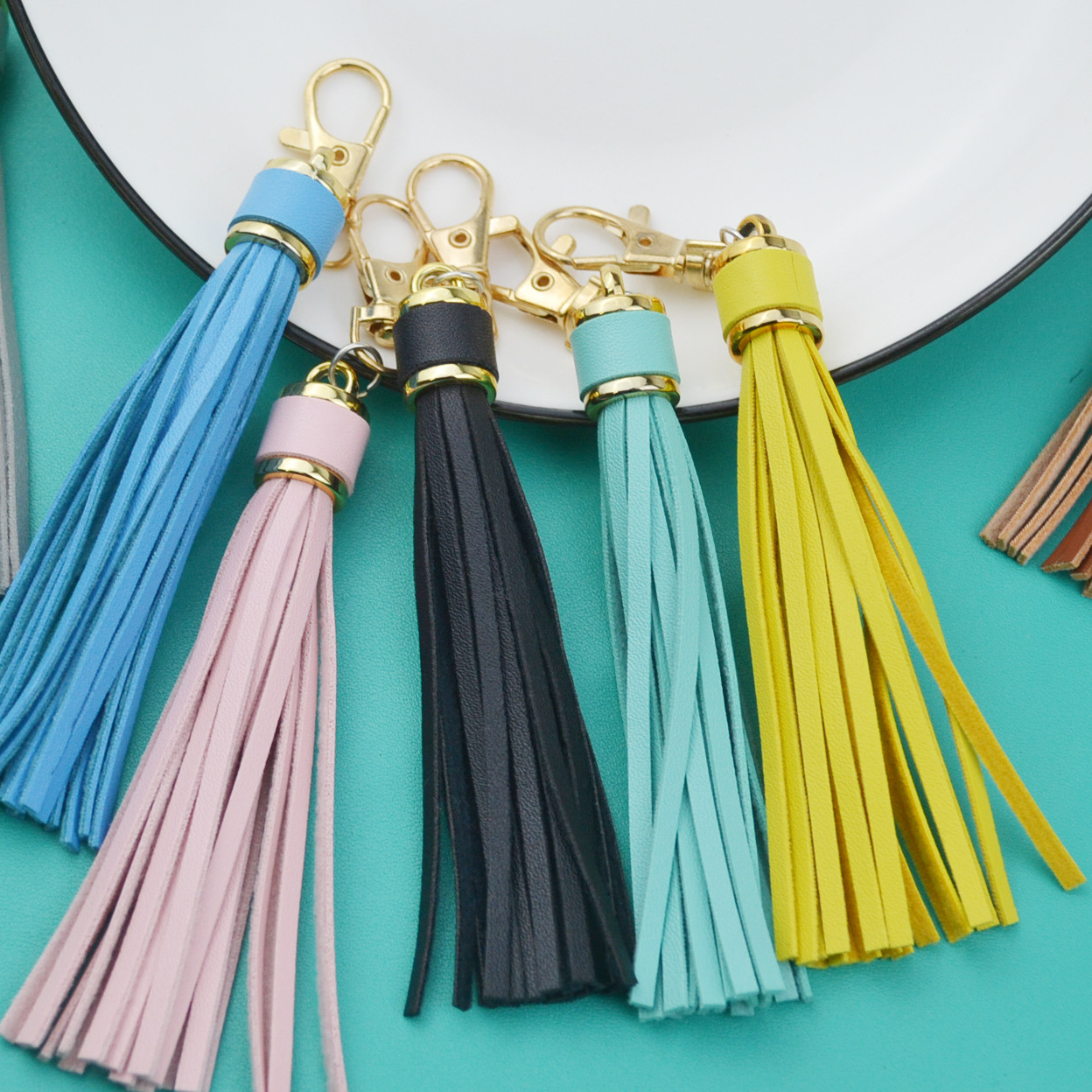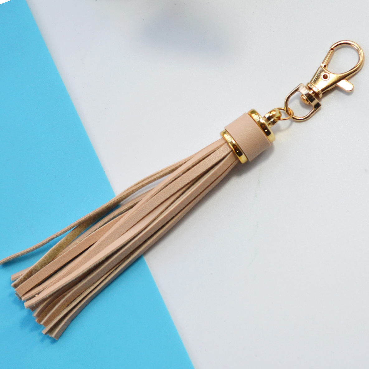 跨境纤长同底色皮革流苏钥匙扣 硅胶手链流苏配件女士包包挂件
