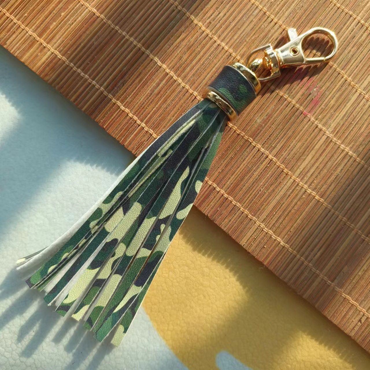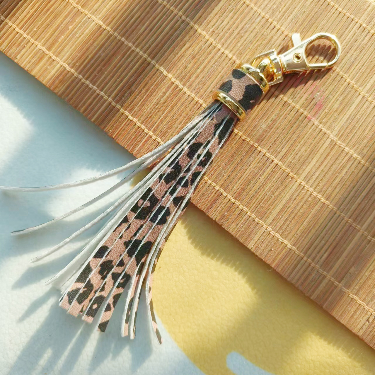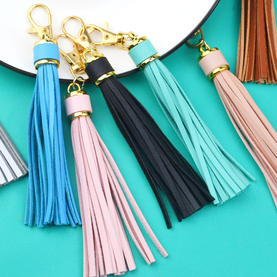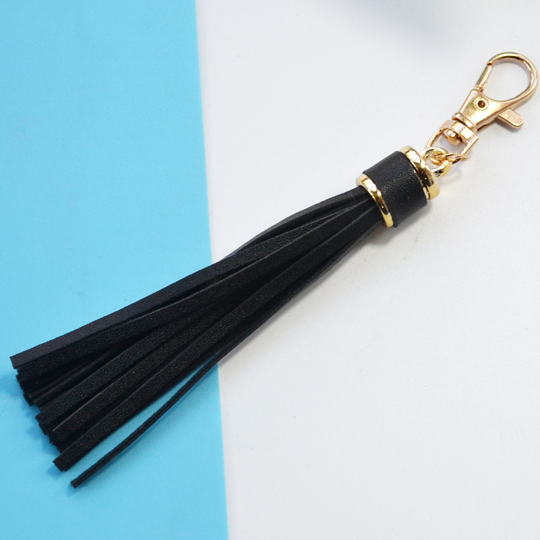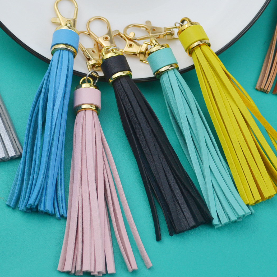 跨境纤长同底色皮革流苏钥匙扣 硅胶手链流苏配件女士包包挂件