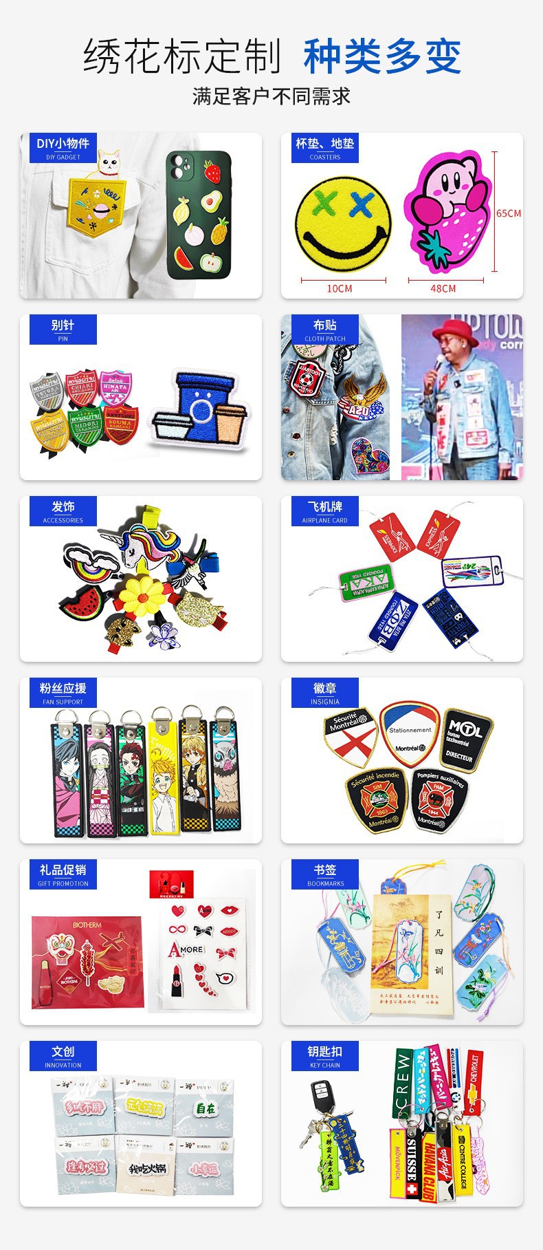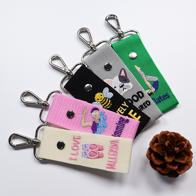 定制织唛刺绣钥匙扣双面字母卡通图案绣花PU皮革钥匙扣包包小挂件