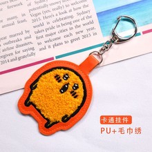 PU皮革车缝油边钥匙扣毛巾绣刺绣钥匙包包挂件可印logo文创小吊饰