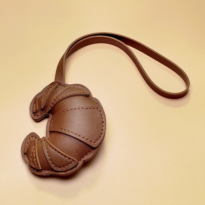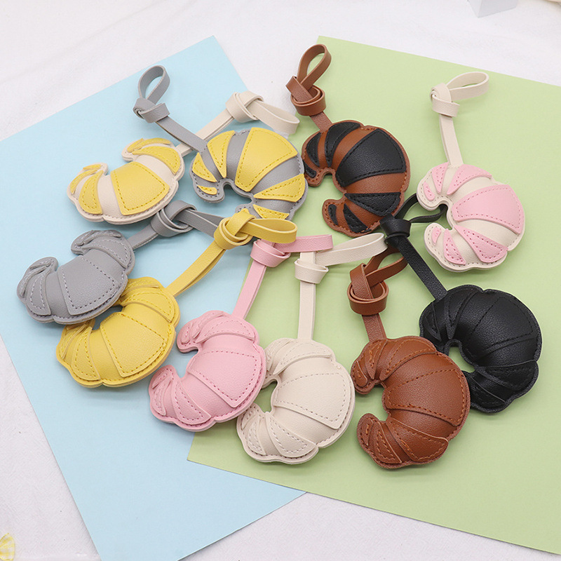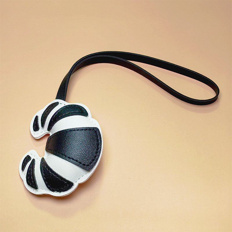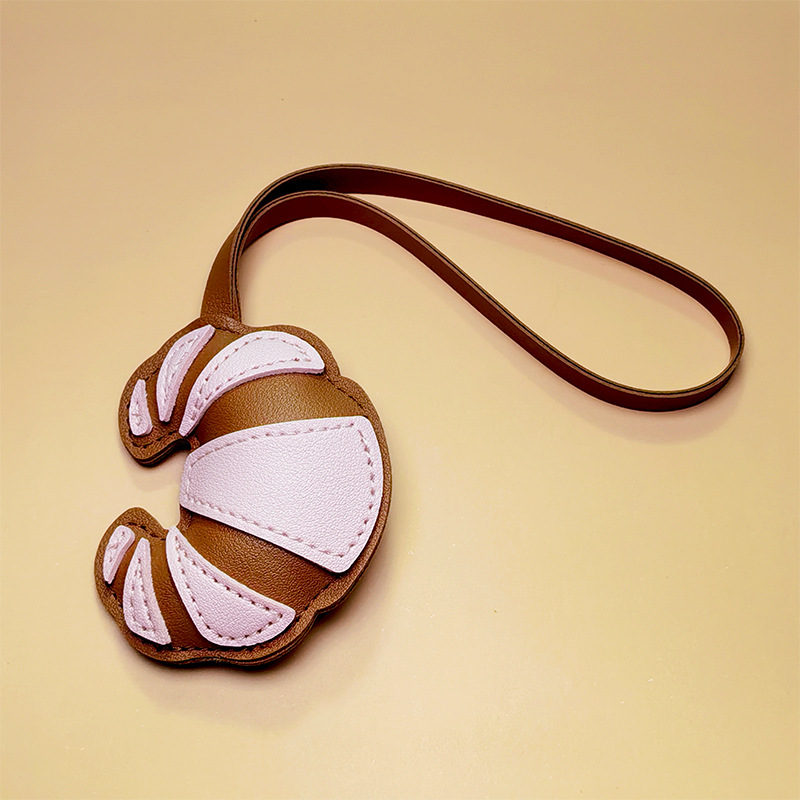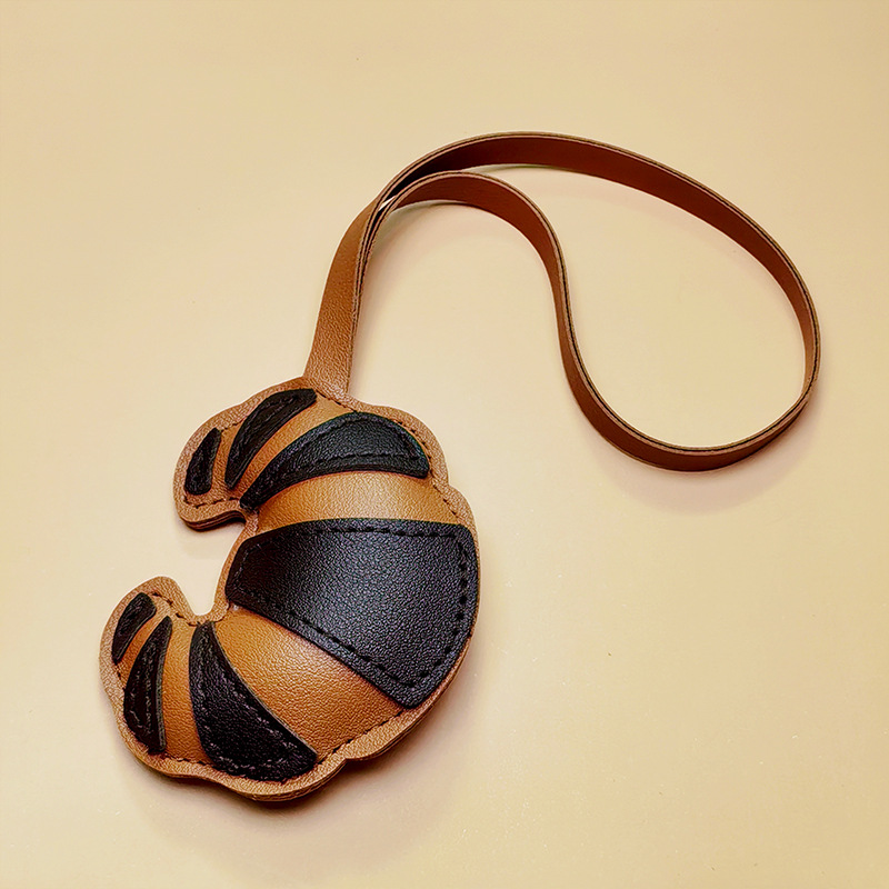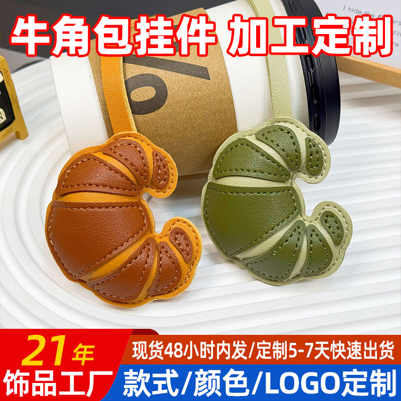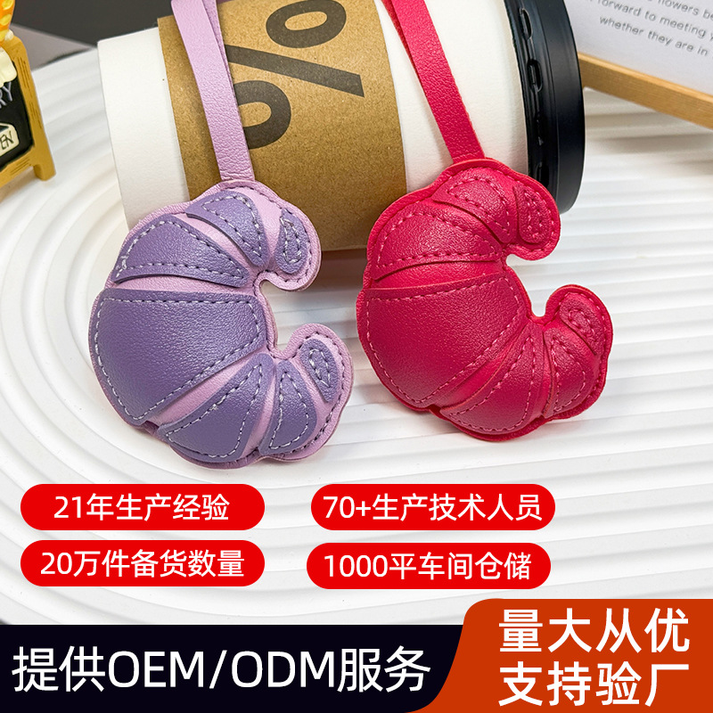 定制牛角包挂件钥匙扣创意手工多层补丁牛角包挂饰皮质包挂ins风