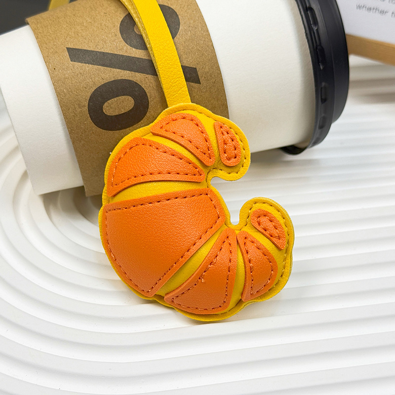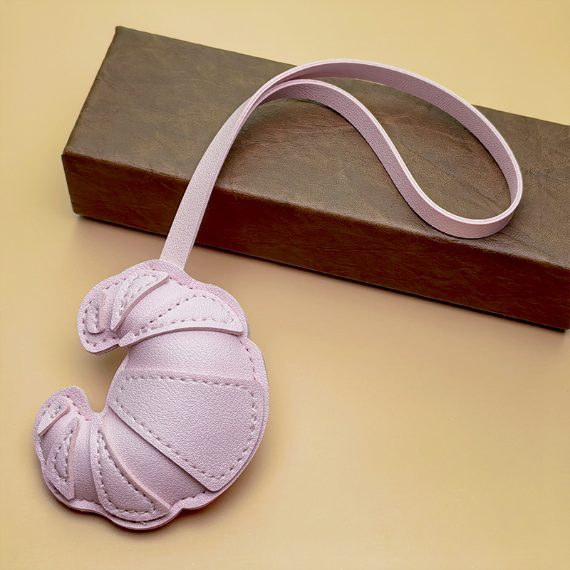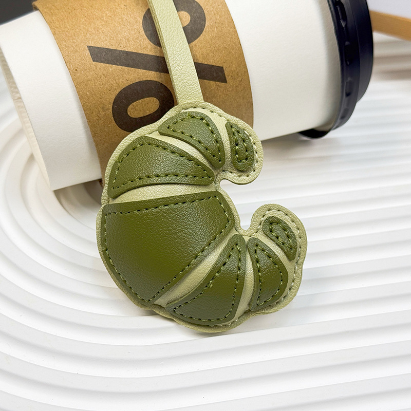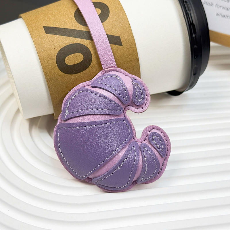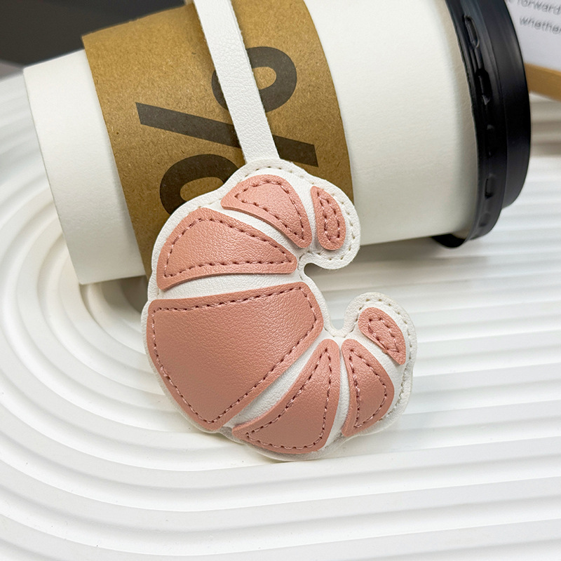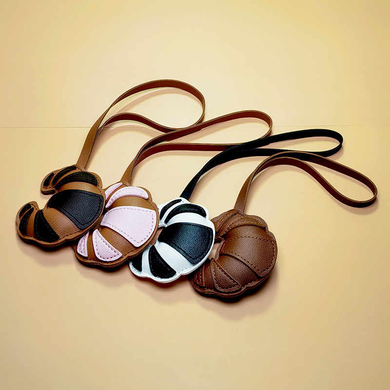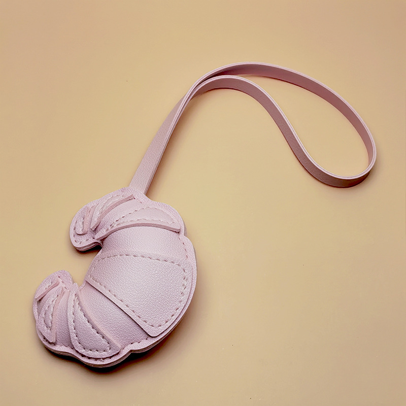 定制牛角包挂件钥匙扣创意手工多层补丁牛角包挂饰皮质包挂ins风