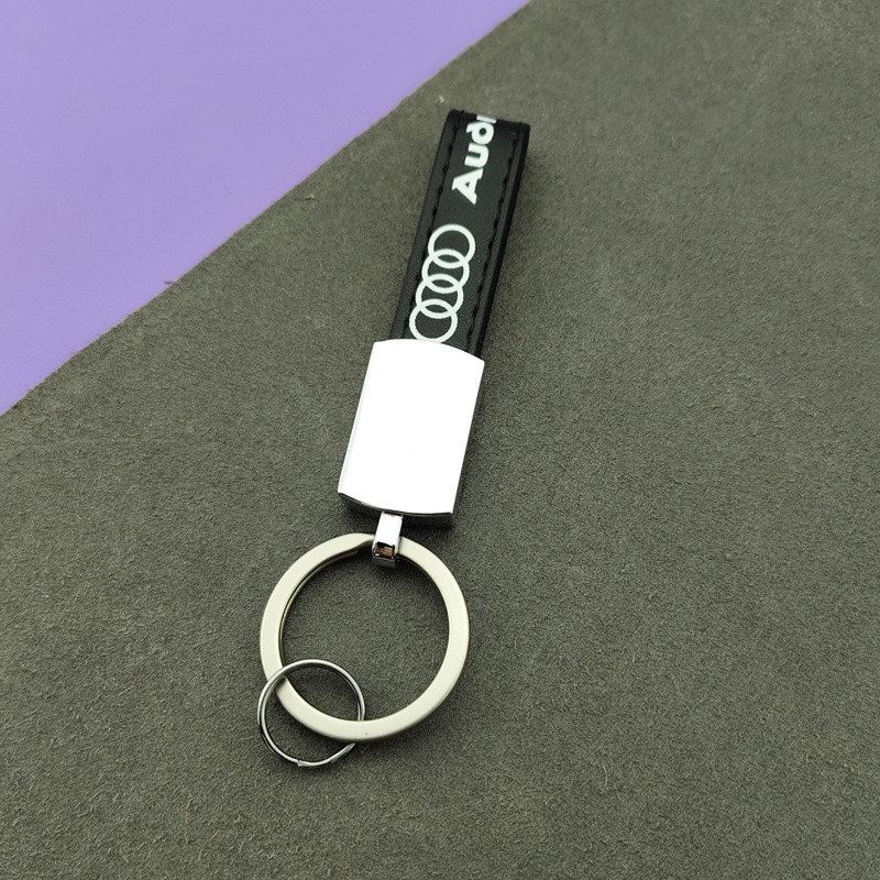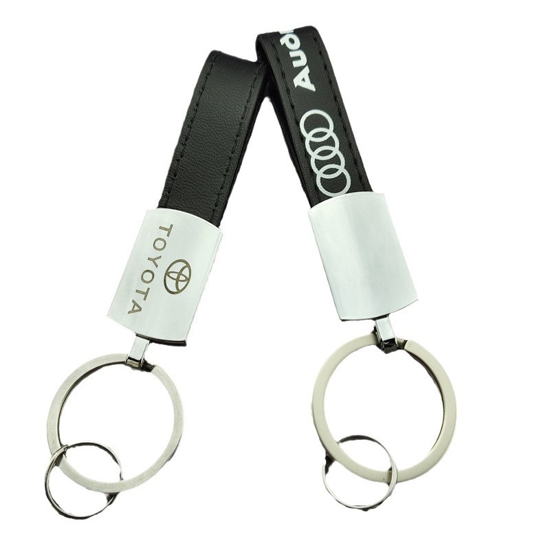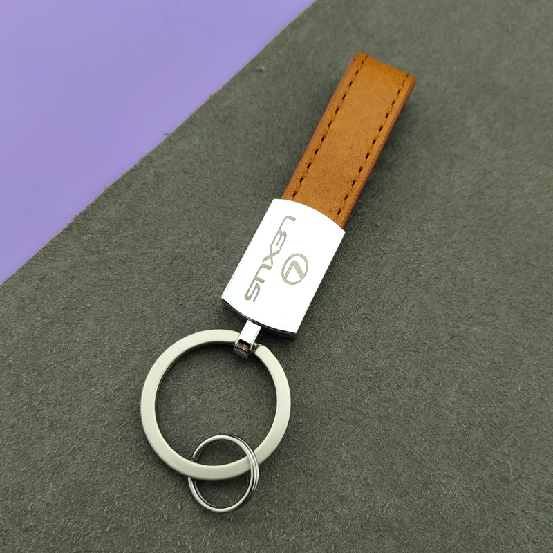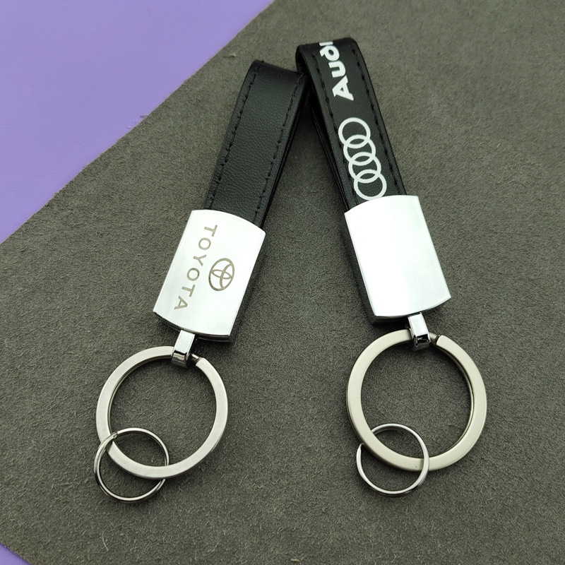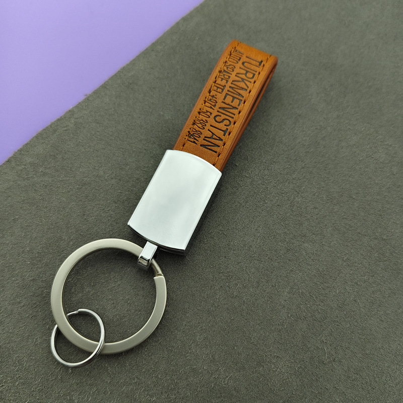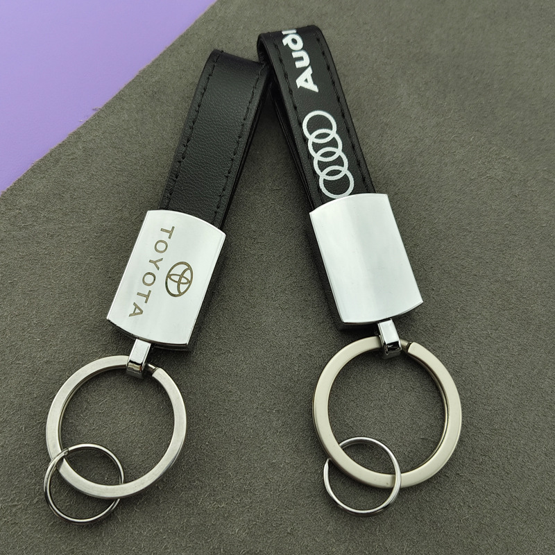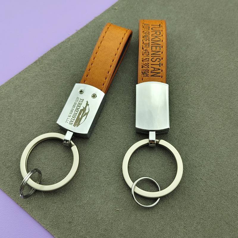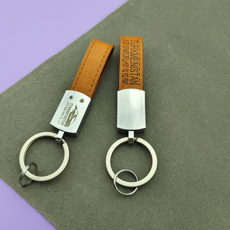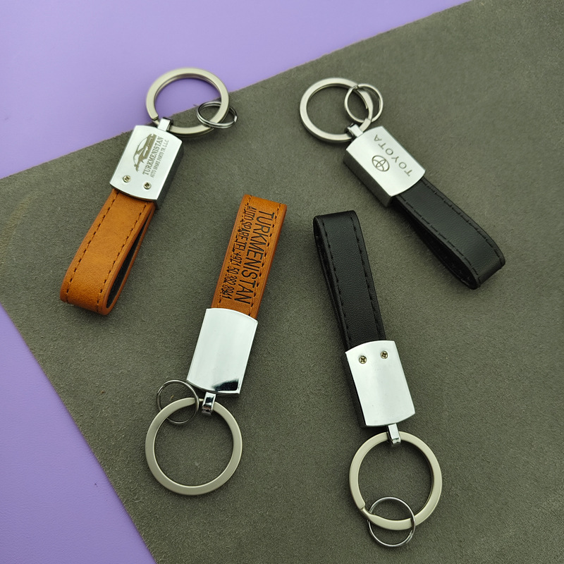 钥匙扣金属挂件简约皮革钥匙圈 激光logo 高档男士挂件