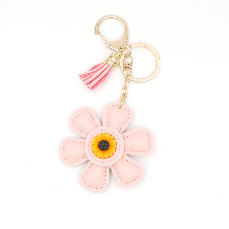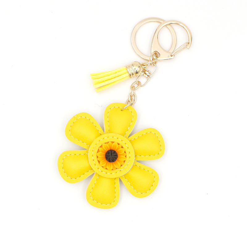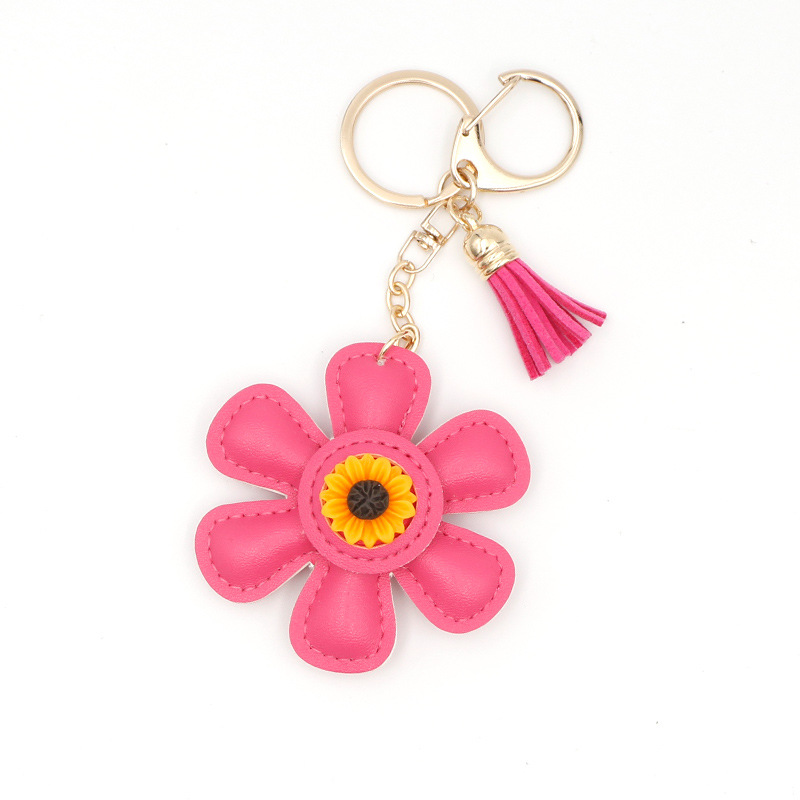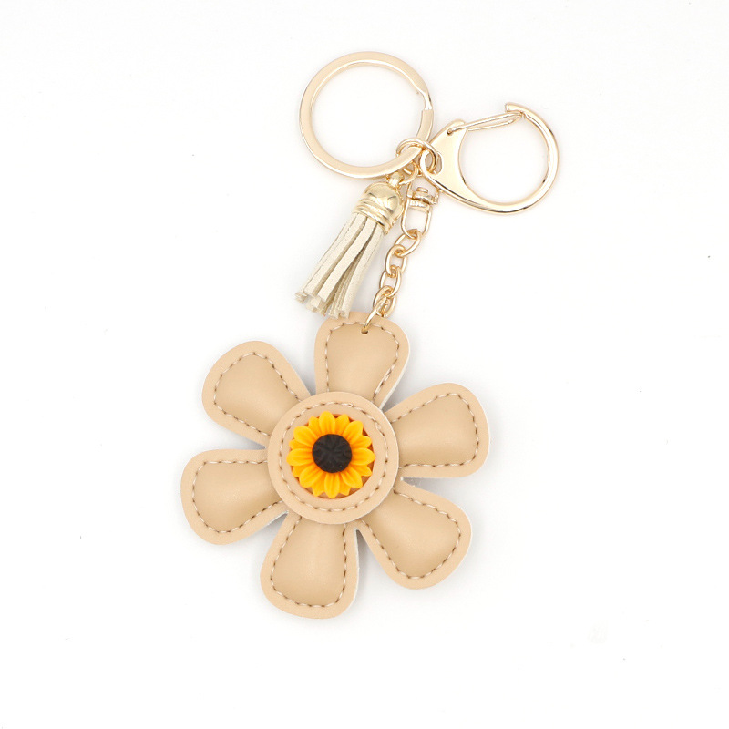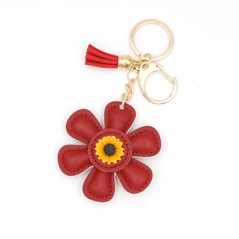欧美ins优质精致pu皮革太阳花钥匙扣挂件女生包包创意手机挂件