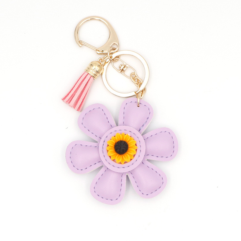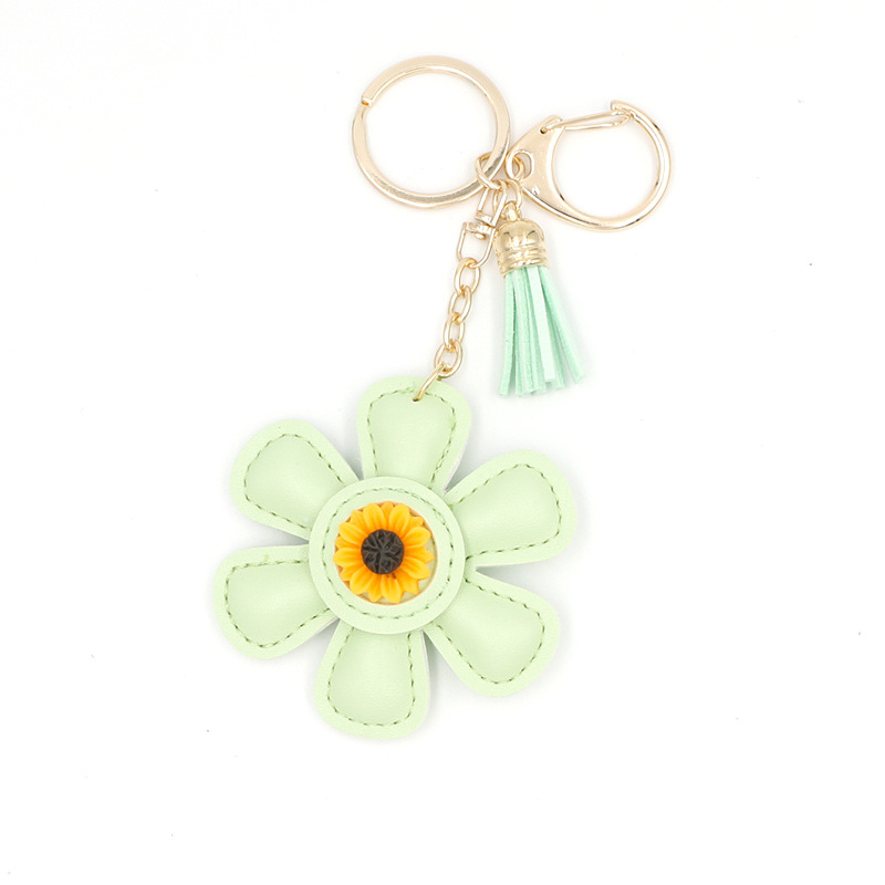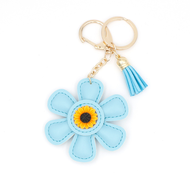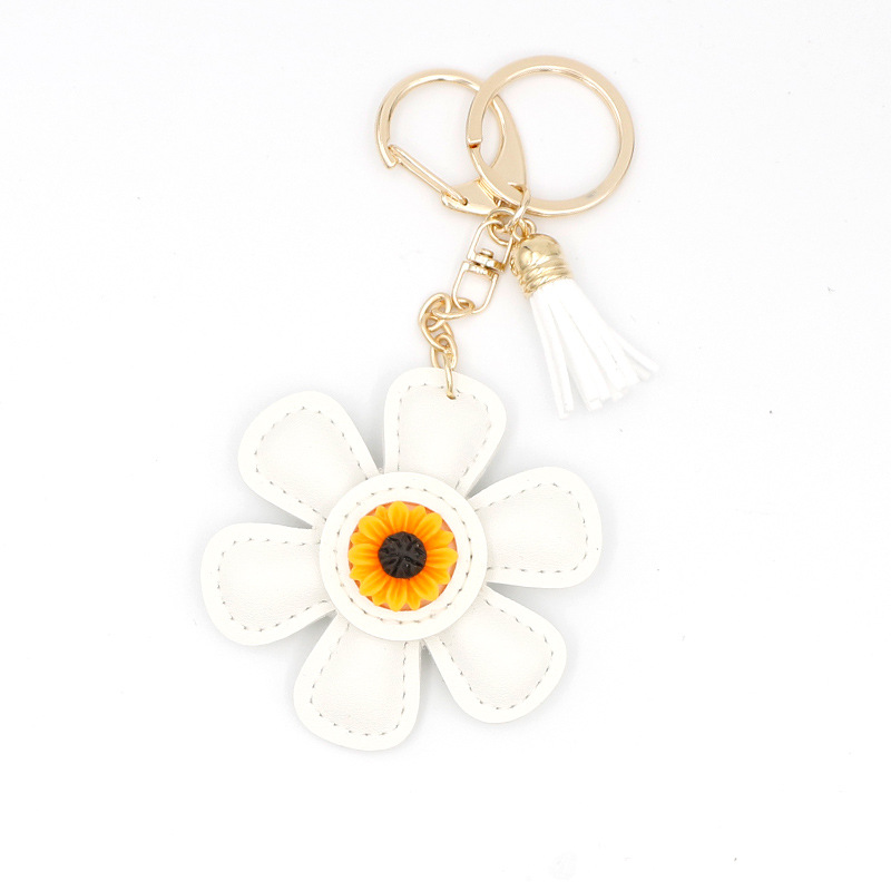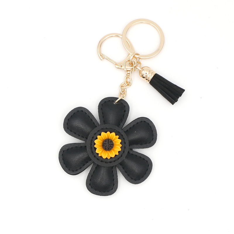 欧美ins优质精致pu皮革太阳花钥匙扣挂件女生包包创意手机挂件