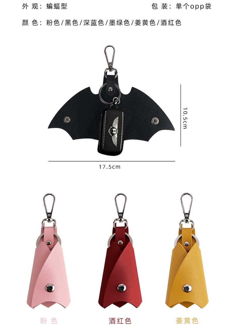 跨境男女士机车钥匙扣PU皮革创意蝙蝠侠形汽车钥匙包钥匙链挂件