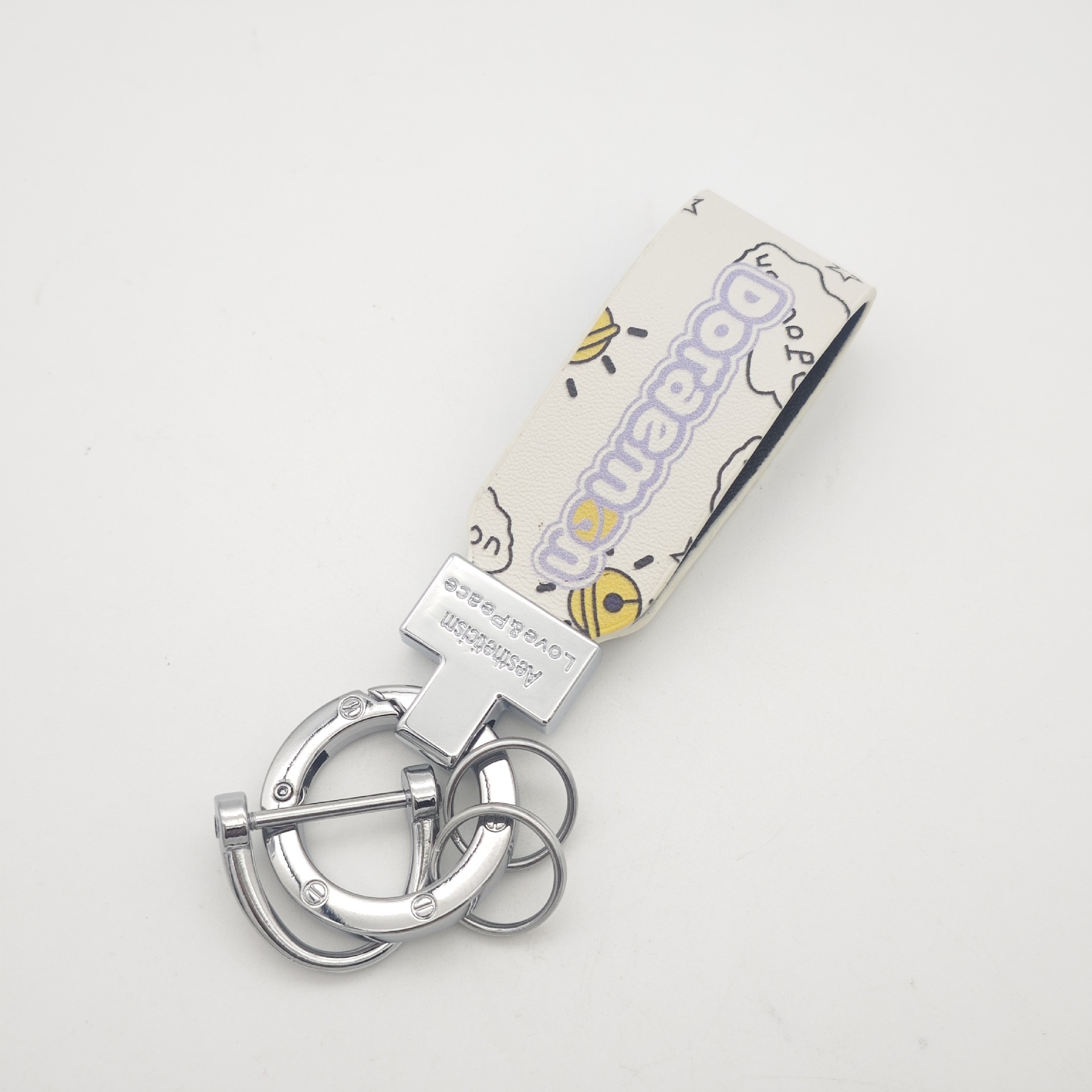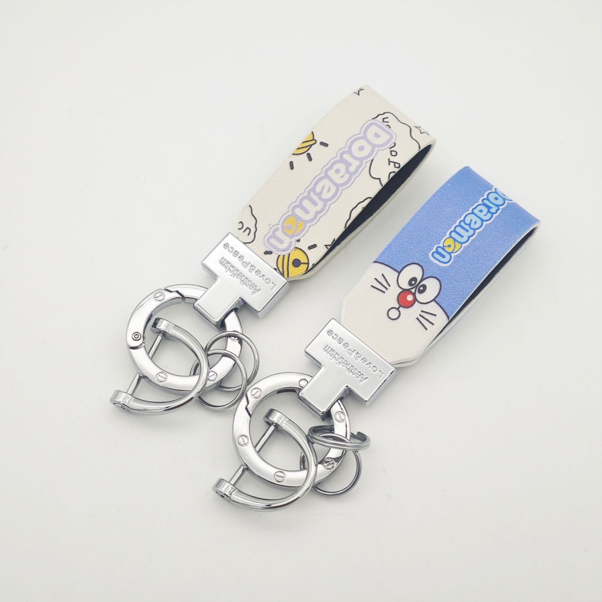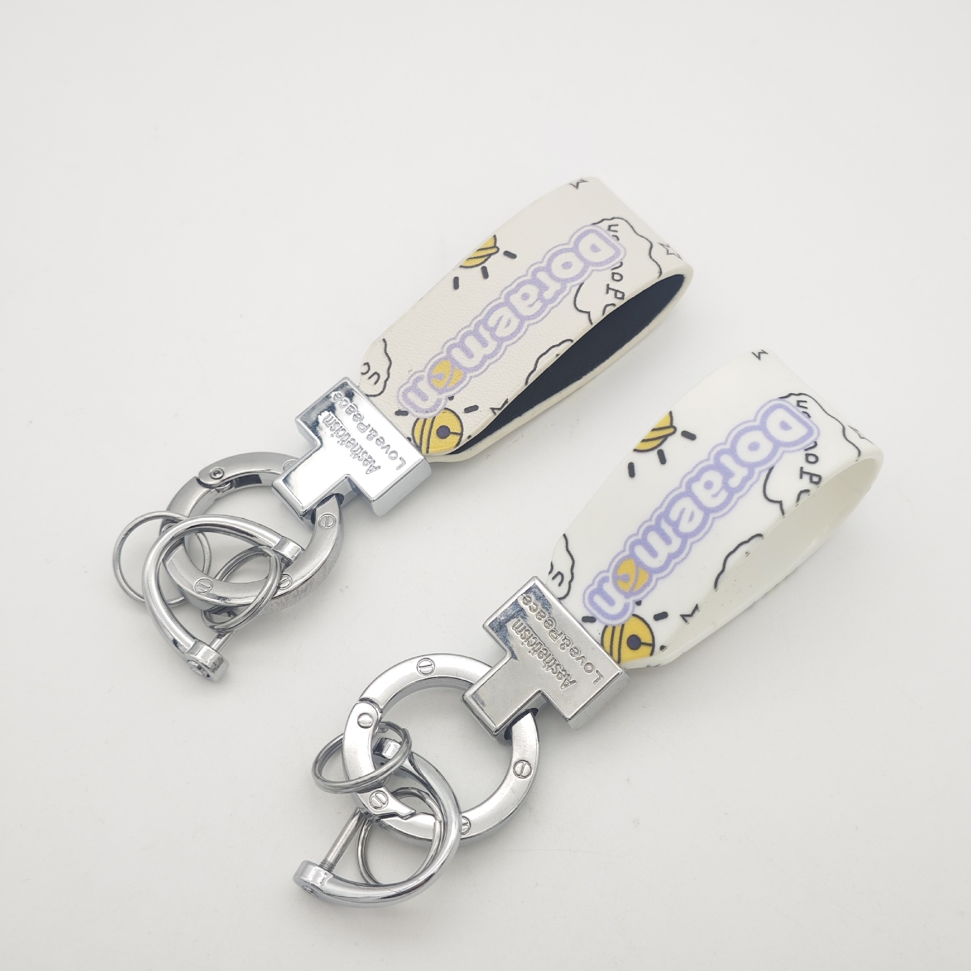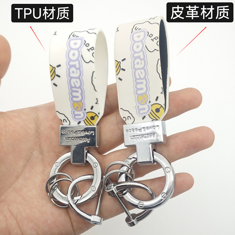 彩印叮当猫钥匙扣圈环印刷logo图案可爱钥匙挂件创意箱包配件情侣