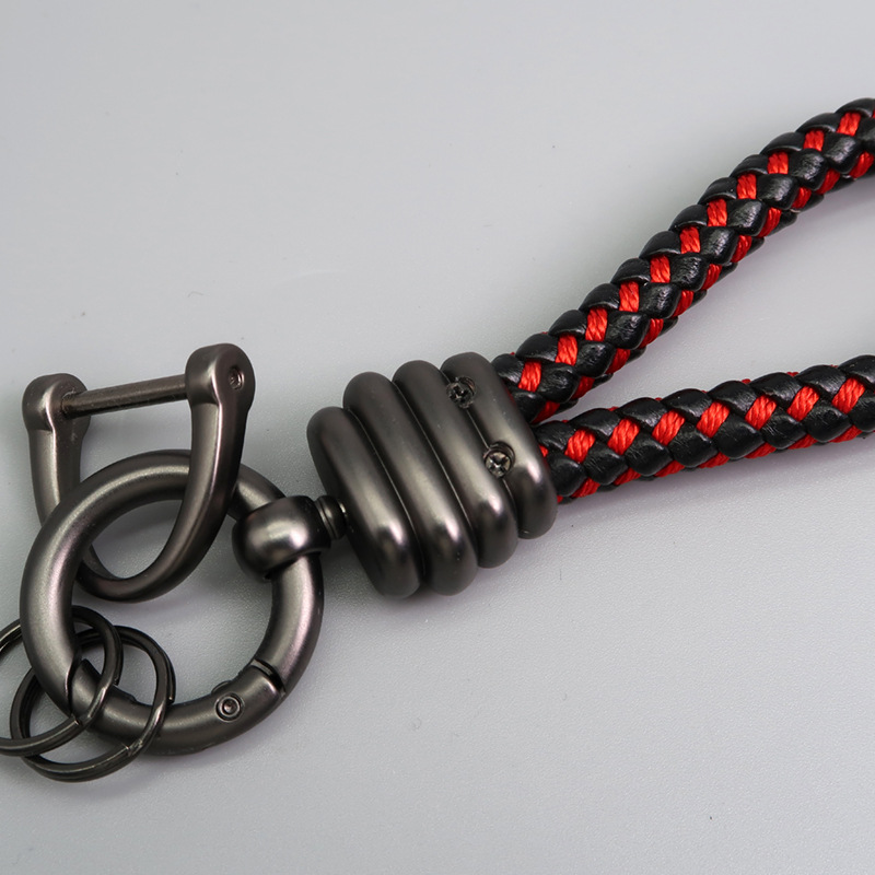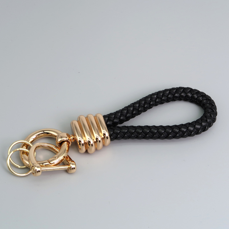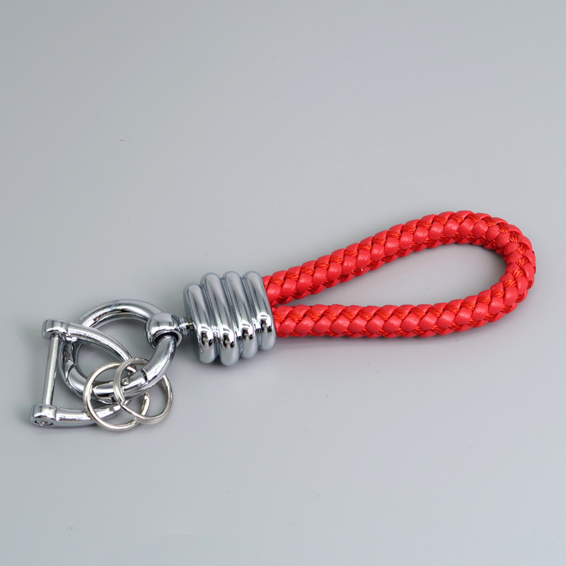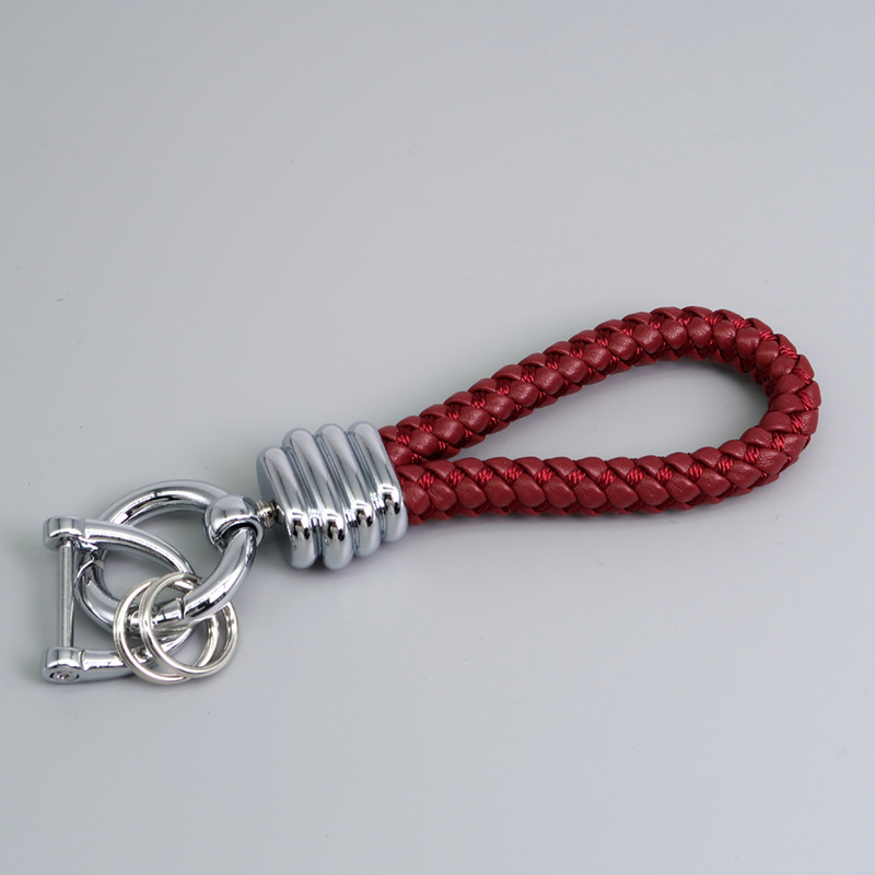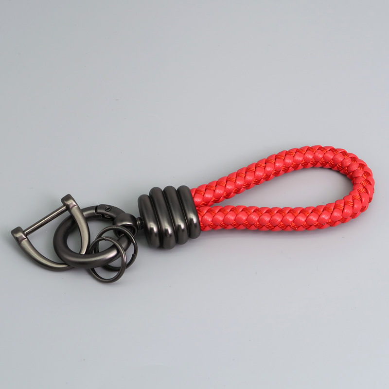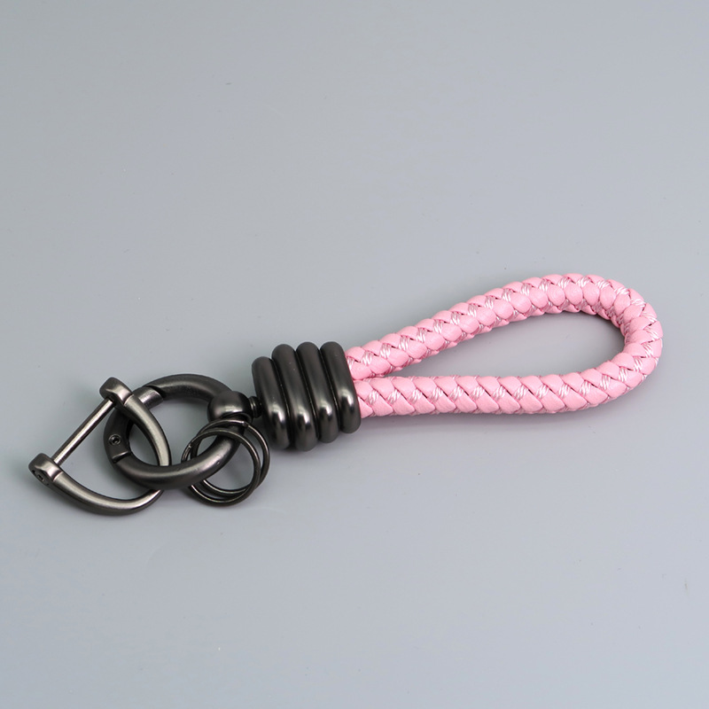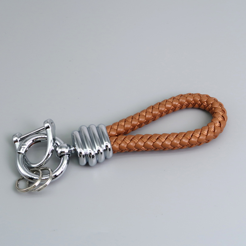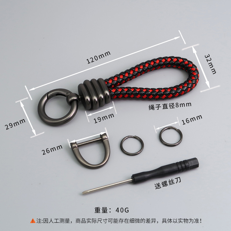 跨境编织皮绳汽车钥匙扣韩版情侣包包挂件创意大扣头手绳钥匙链