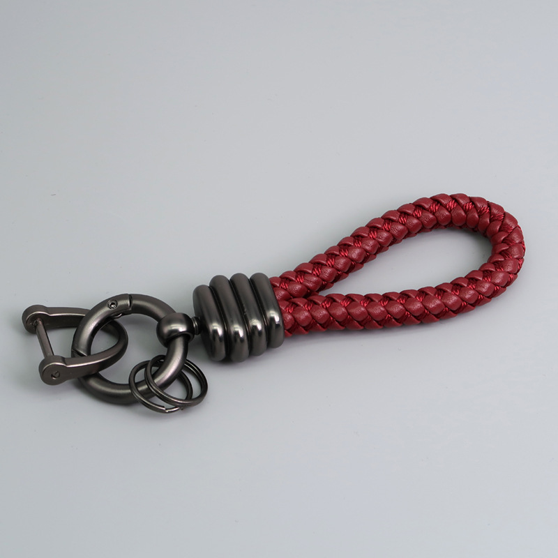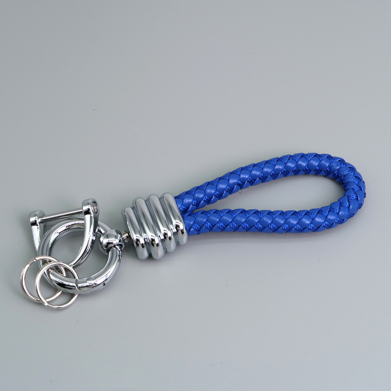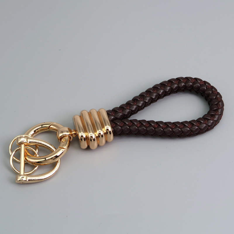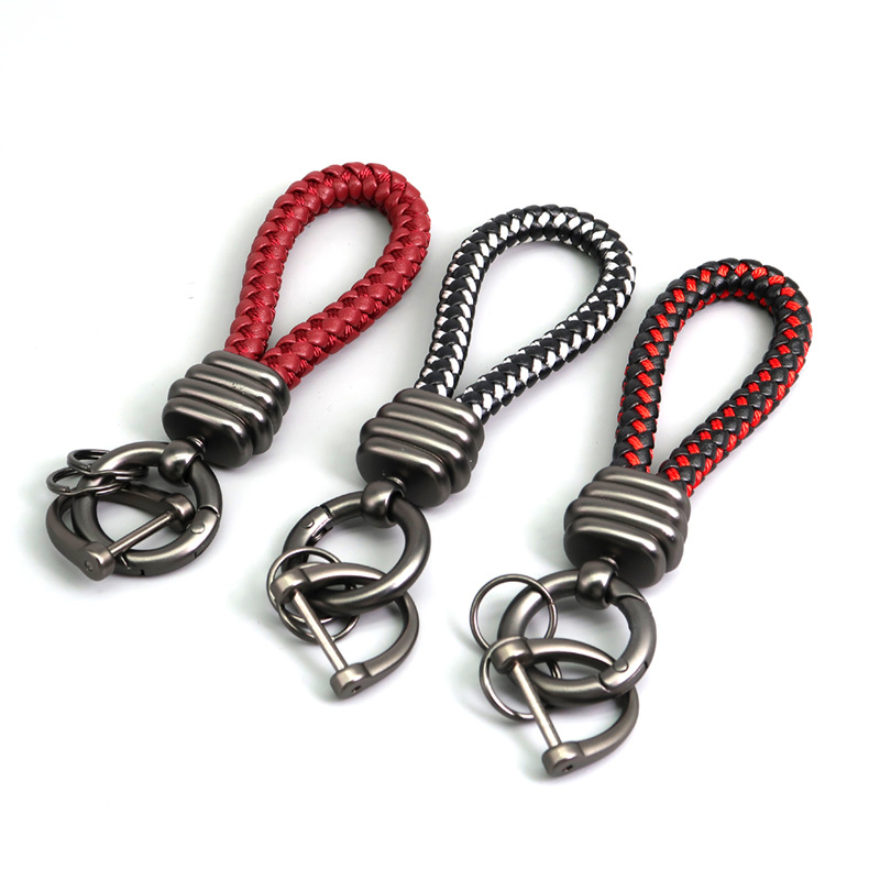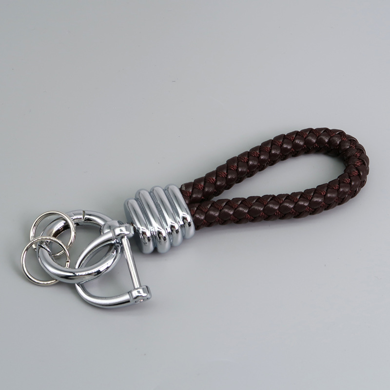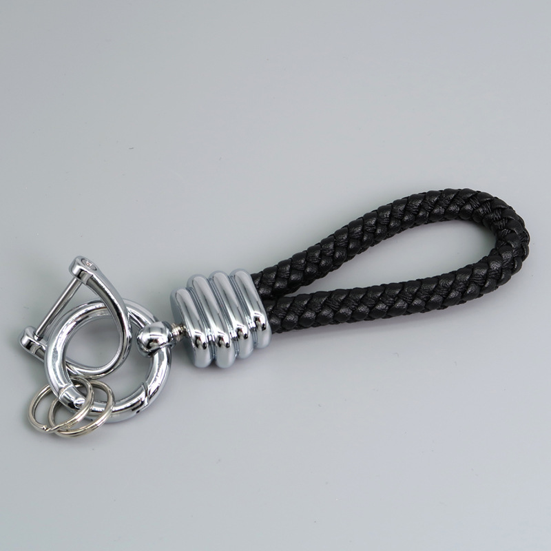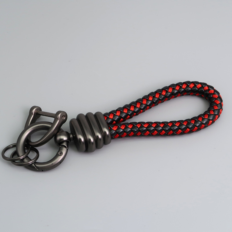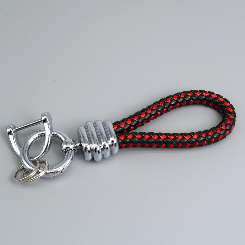 跨境编织皮绳汽车钥匙扣韩版情侣包包挂件创意大扣头手绳钥匙链