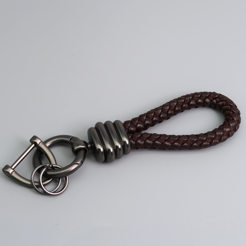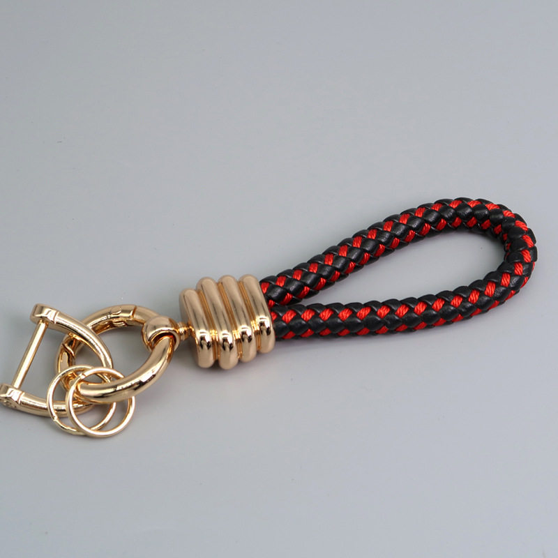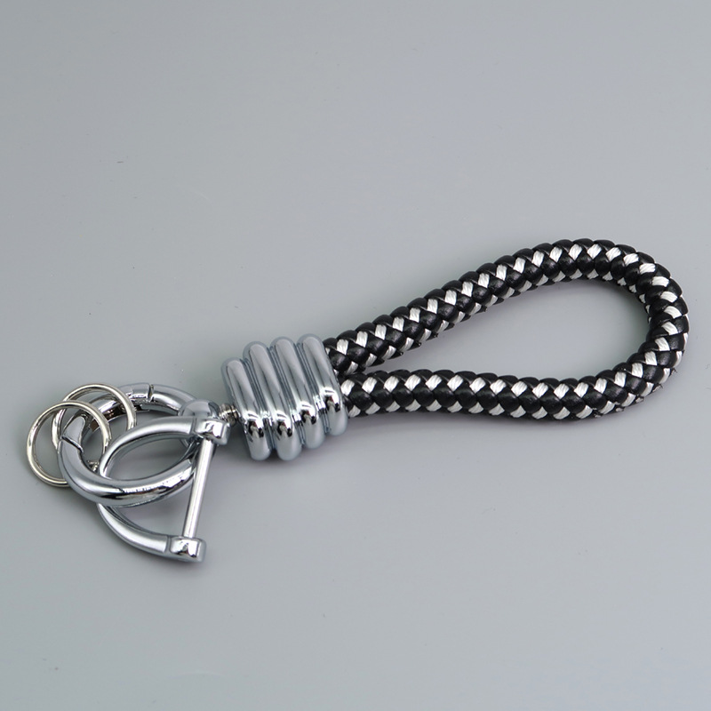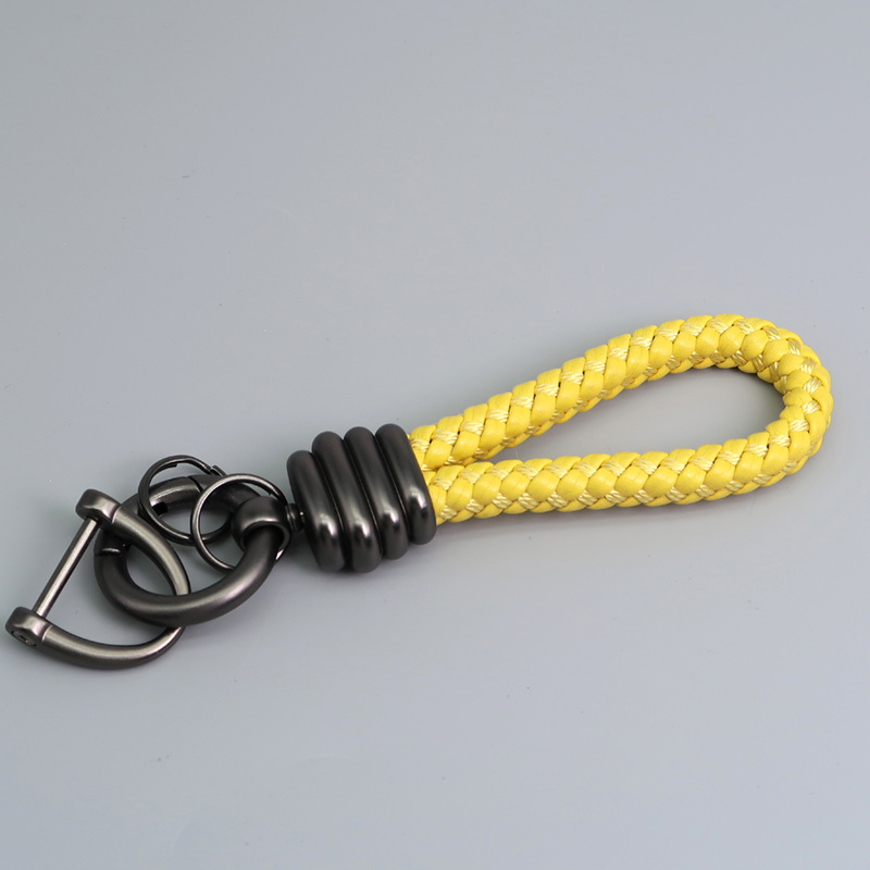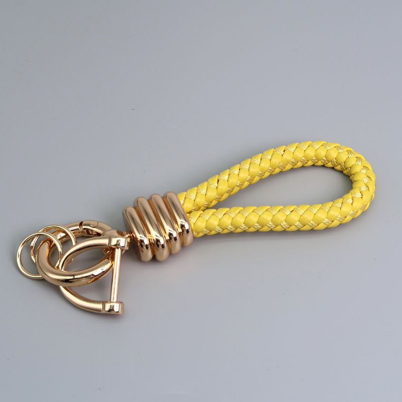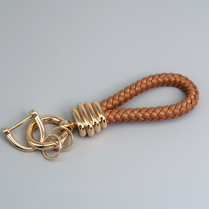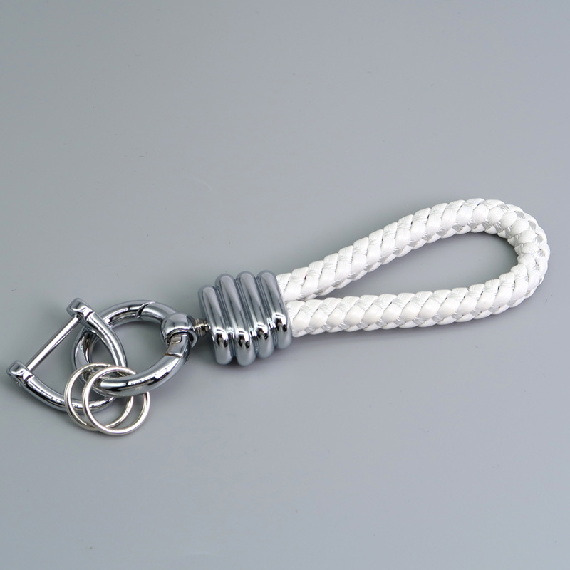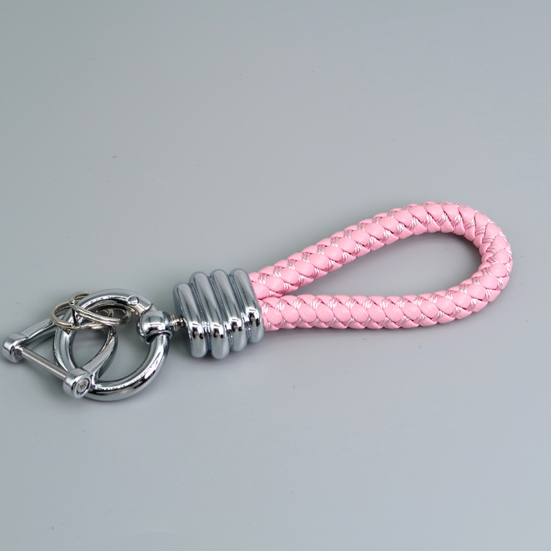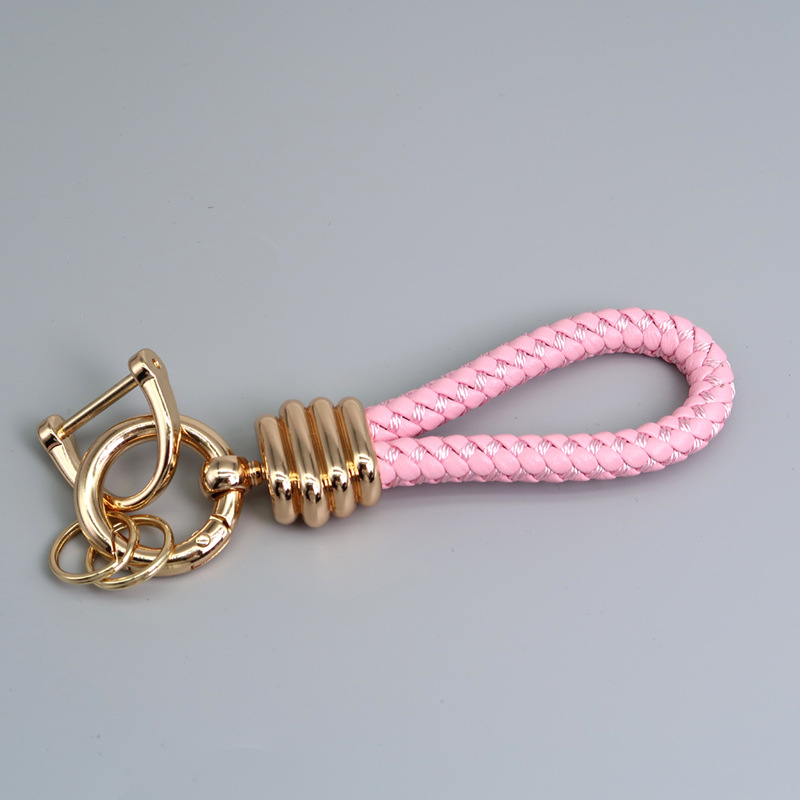跨境编织皮绳汽车钥匙扣韩版情侣包包挂件创意大扣头手绳钥匙链