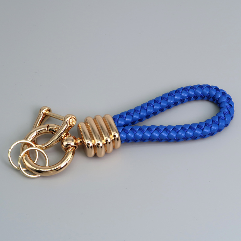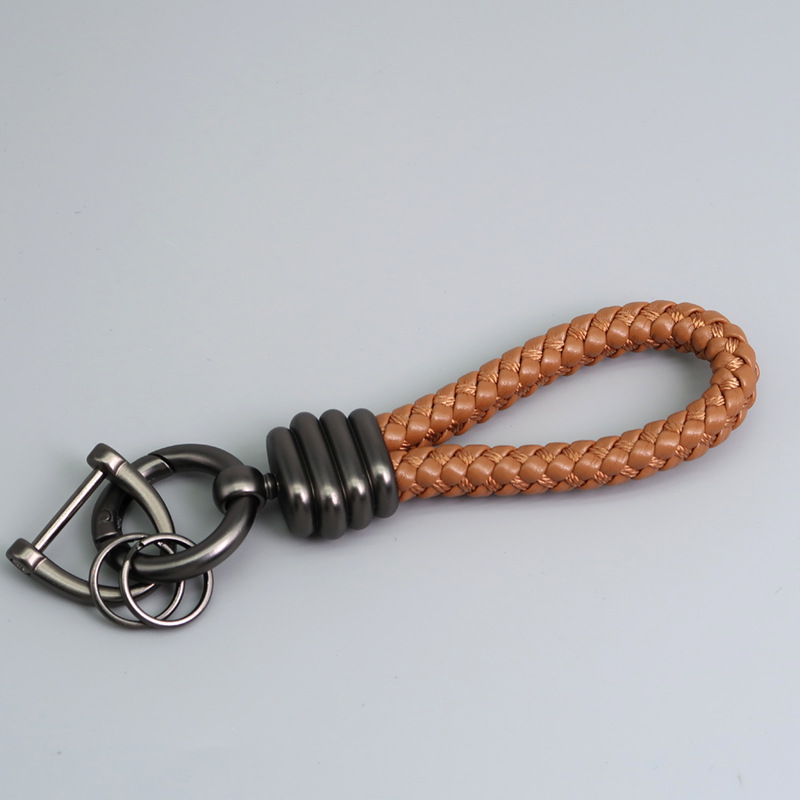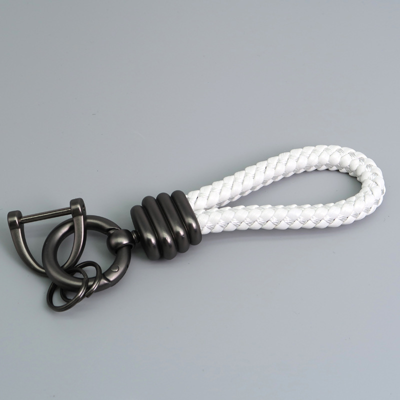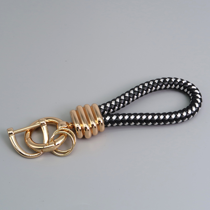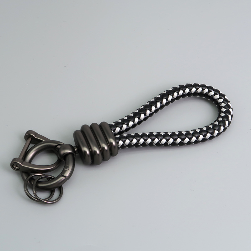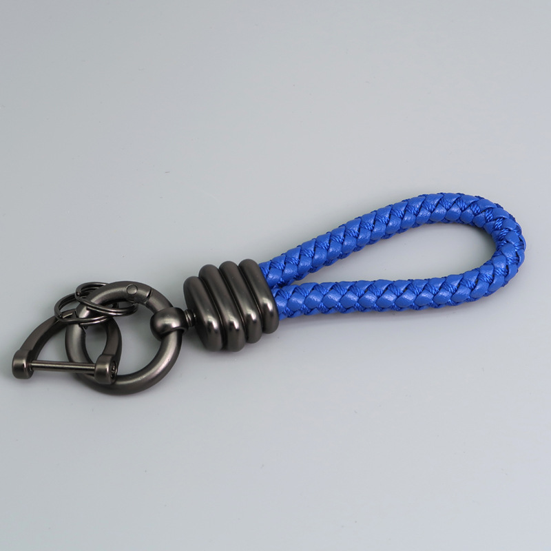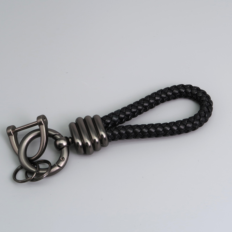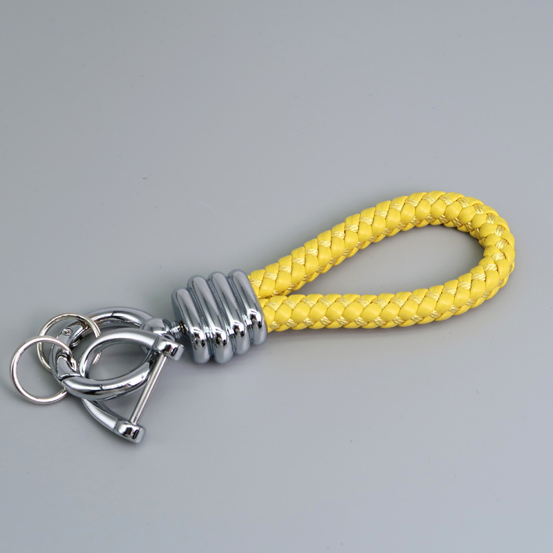 跨境编织皮绳汽车钥匙扣韩版情侣包包挂件创意大扣头手绳钥匙链