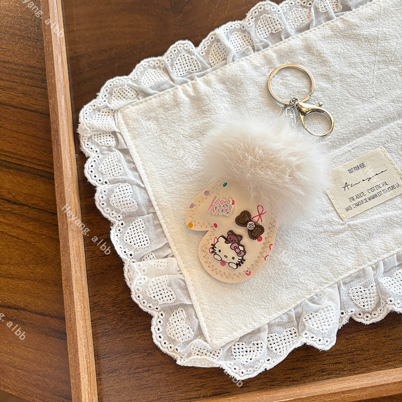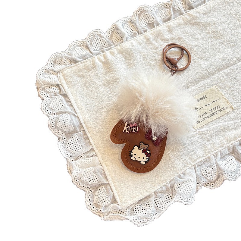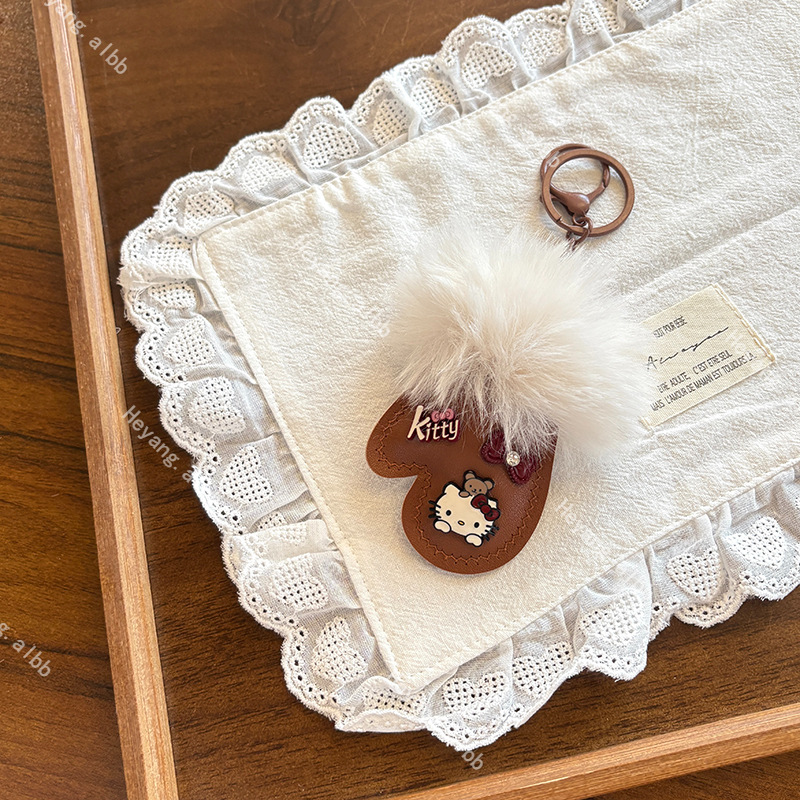 新款卡通毛绒皮质猫咪钥匙扣挂件秋冬时尚龙虾扣包包挂饰百搭饰品