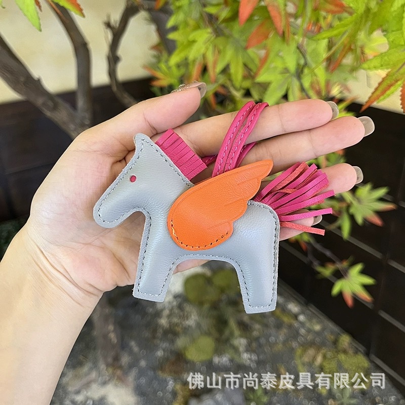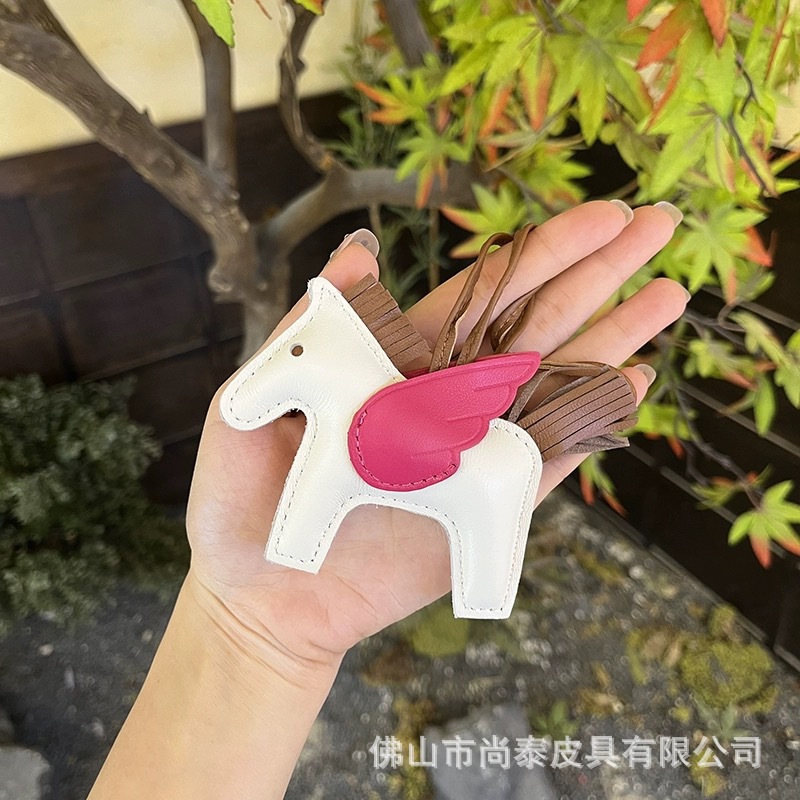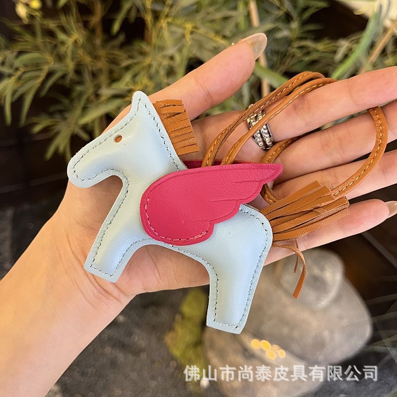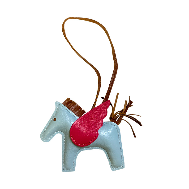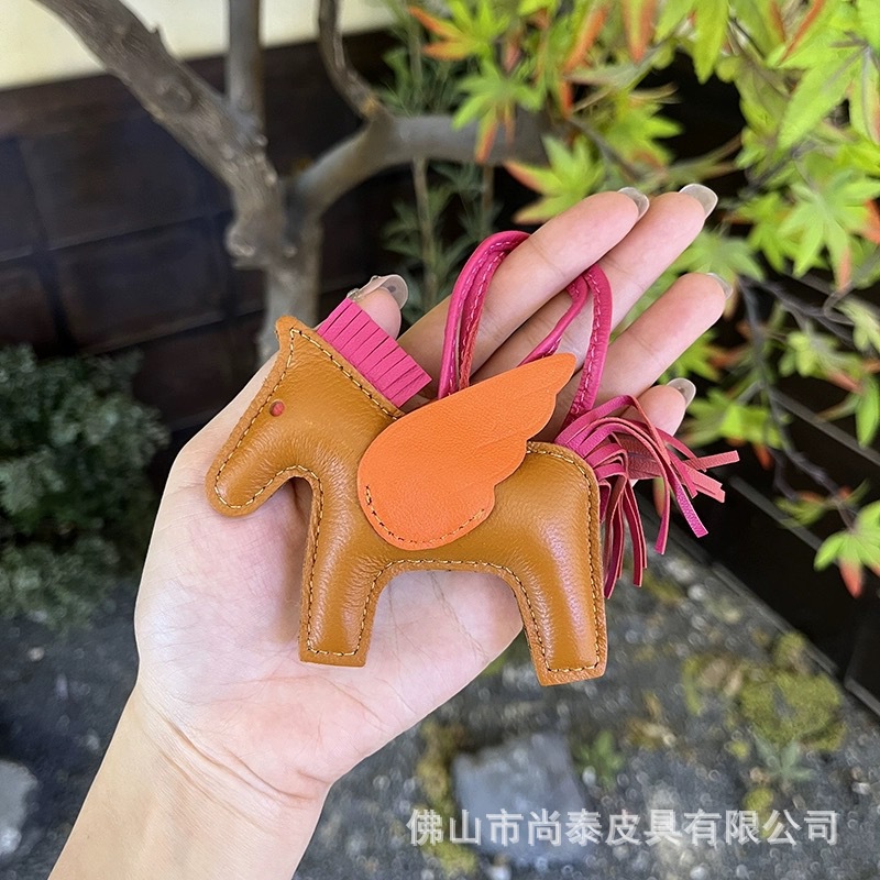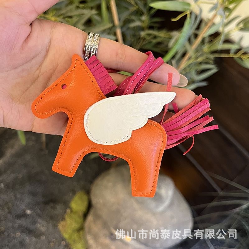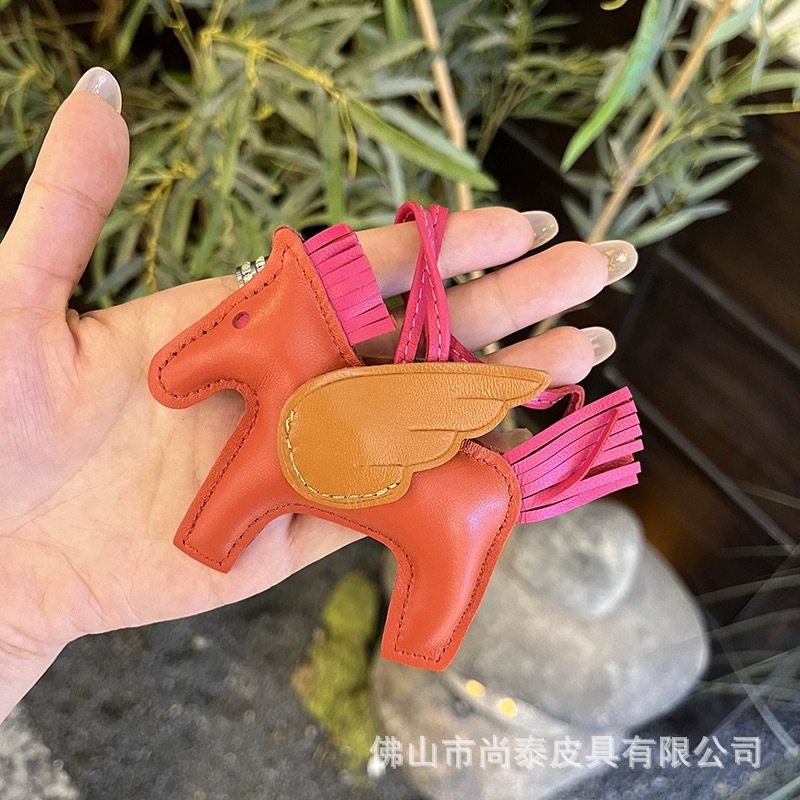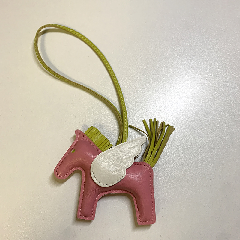 H家真皮mini小马挂件车缝线绵羊皮流苏小吊饰铂金菜篮子女包挂饰