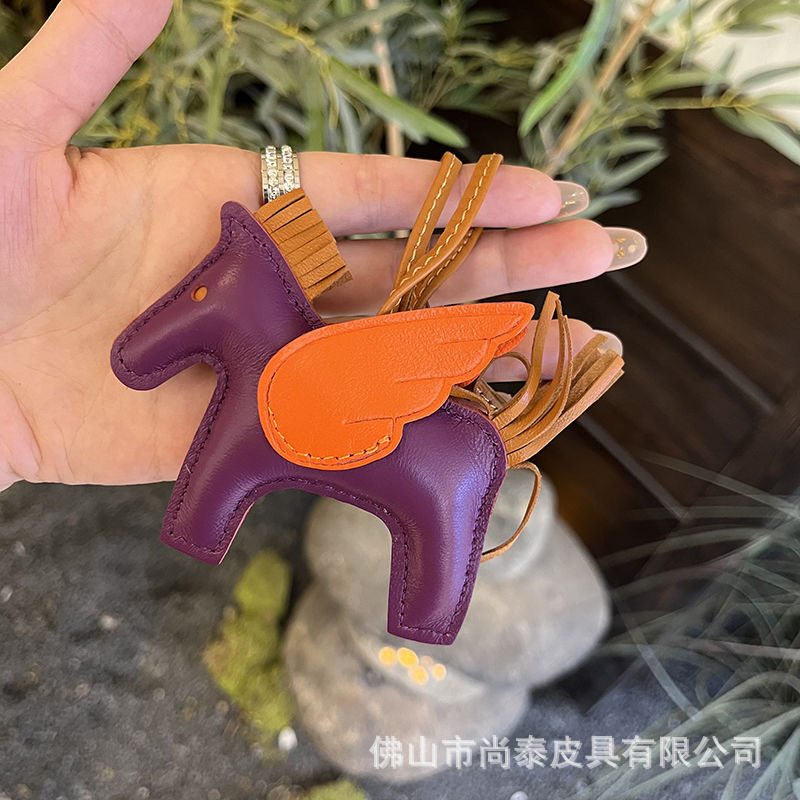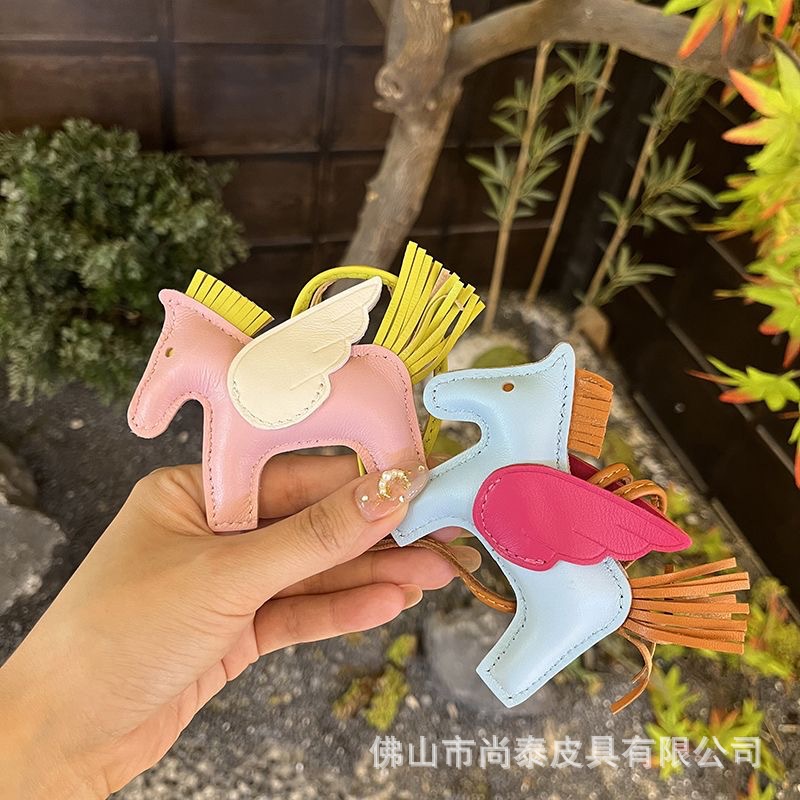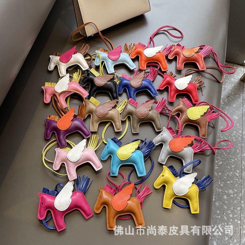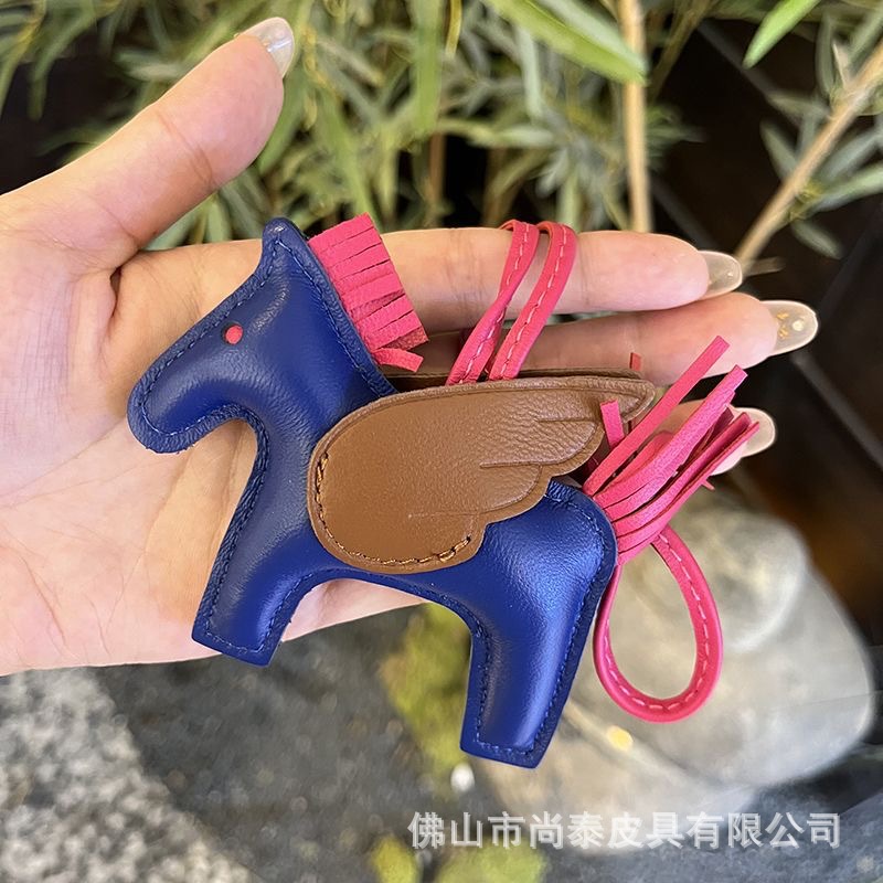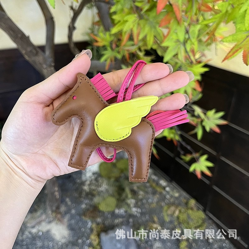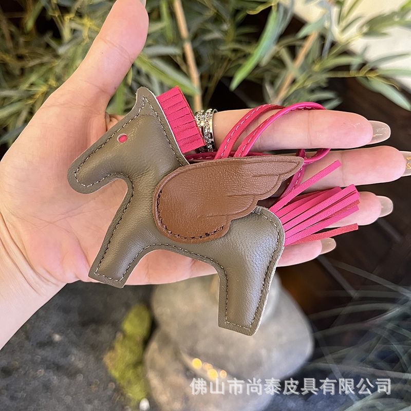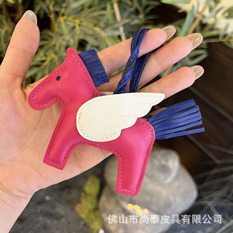 H家真皮mini小马挂件车缝线绵羊皮流苏小吊饰铂金菜篮子女包挂饰