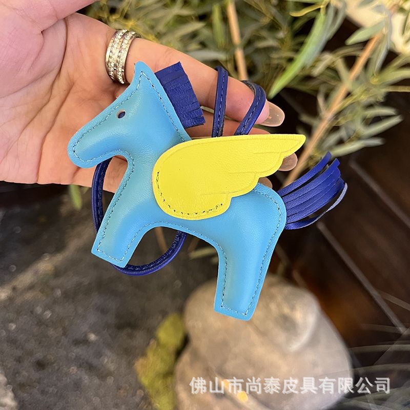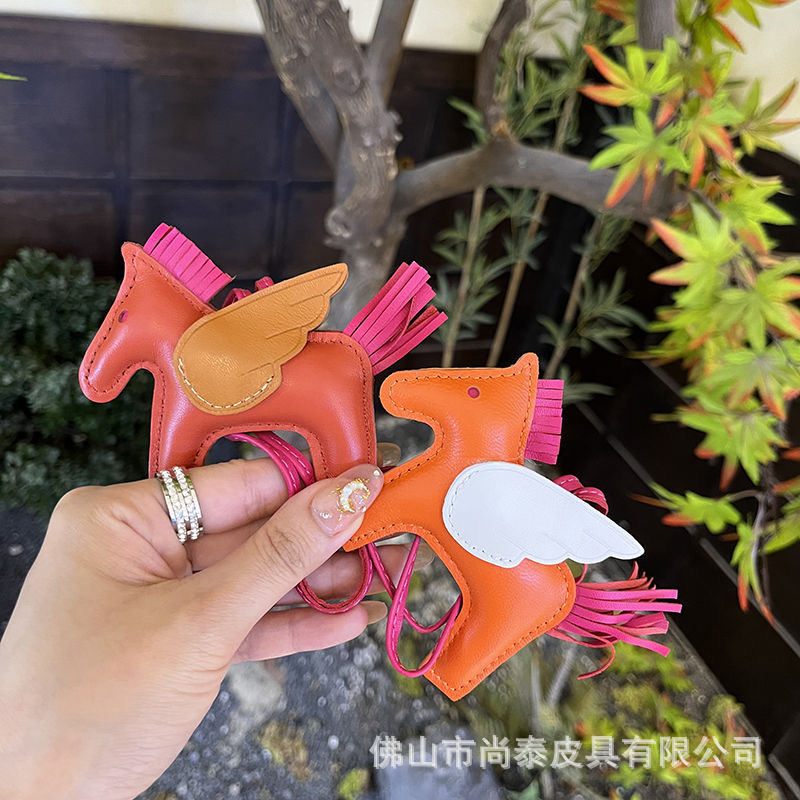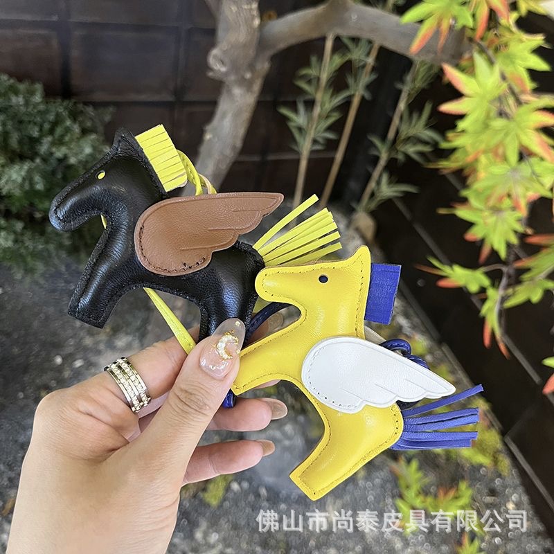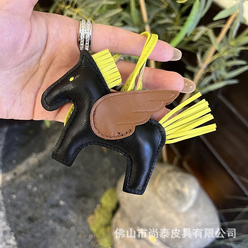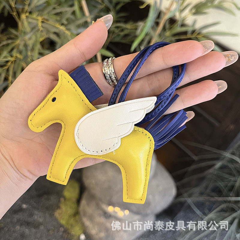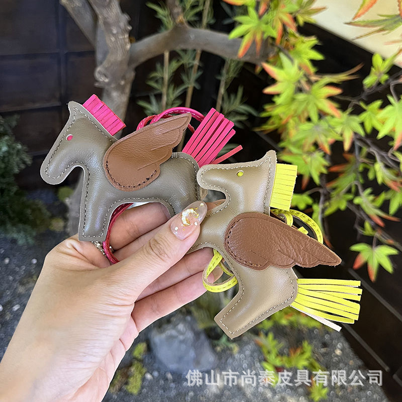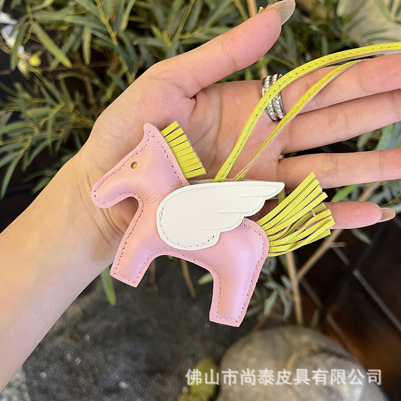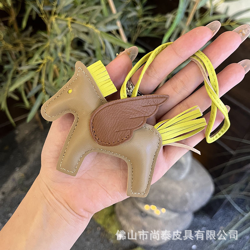 H家真皮mini小马挂件车缝线绵羊皮流苏小吊饰铂金菜篮子女包挂饰