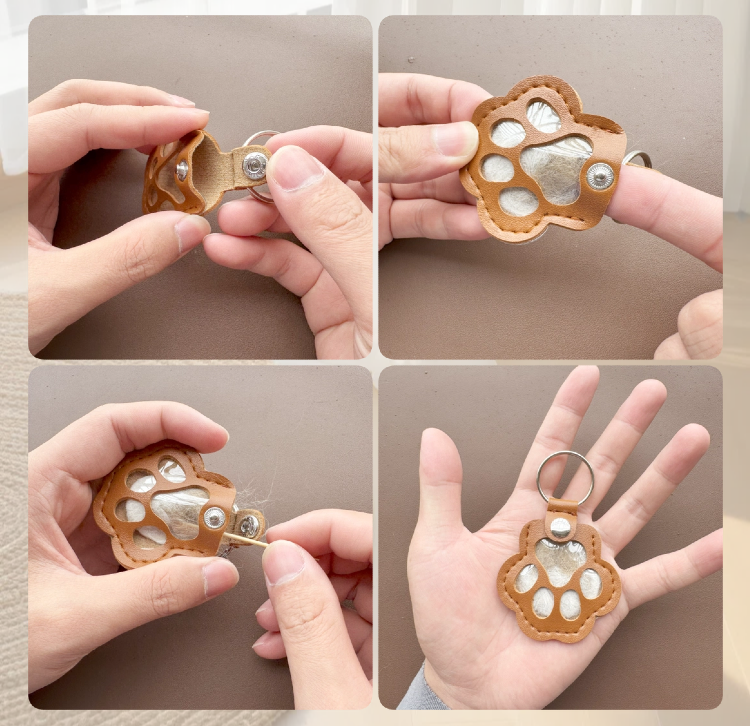 宠物毛发PU收纳包纪念钥匙扣存狗狗猫咪毛发狗爪掌印挂件宠物挂饰