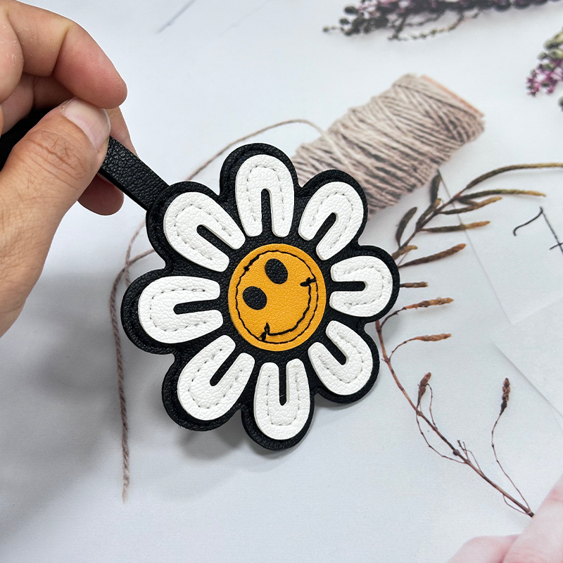 2024年新款皮质太阳花创意车钥匙扣精致包包挂件小饰品钥匙链潮搭