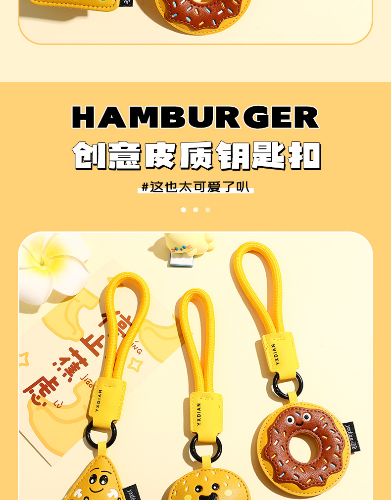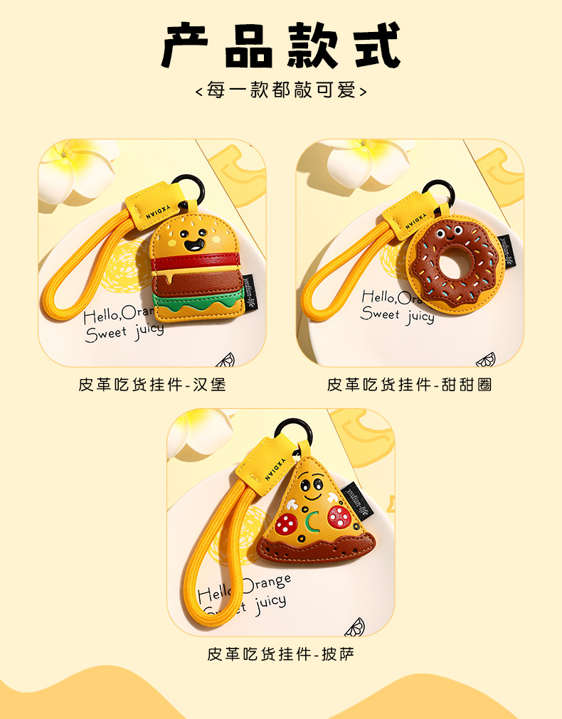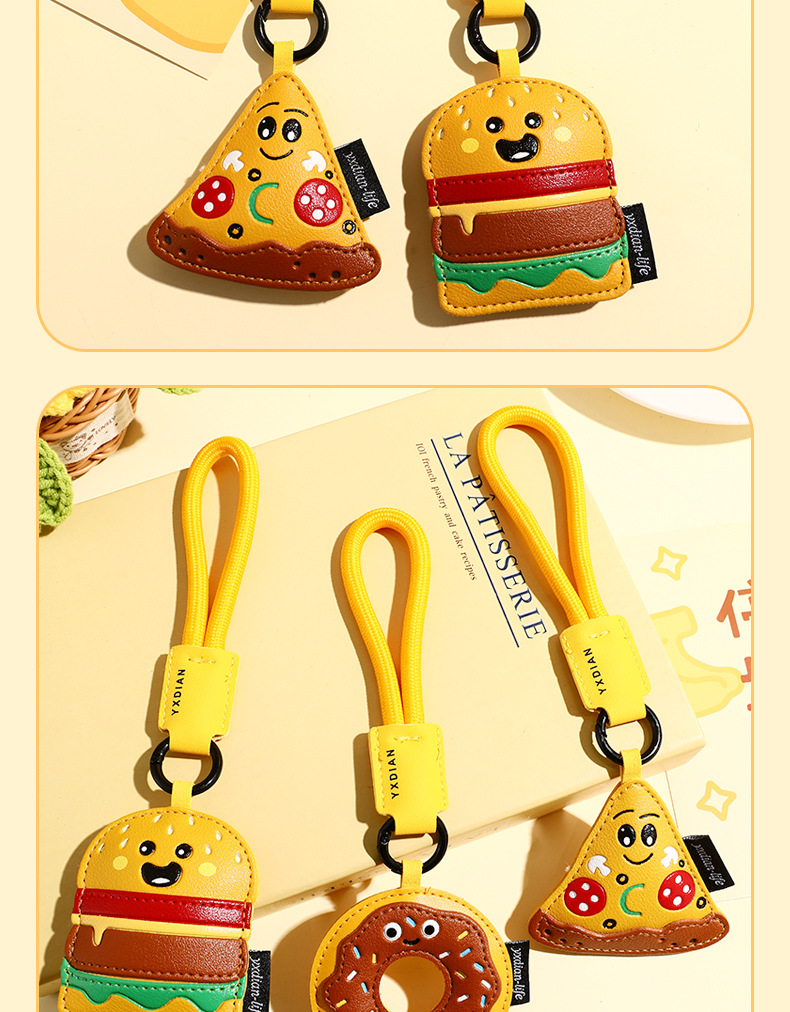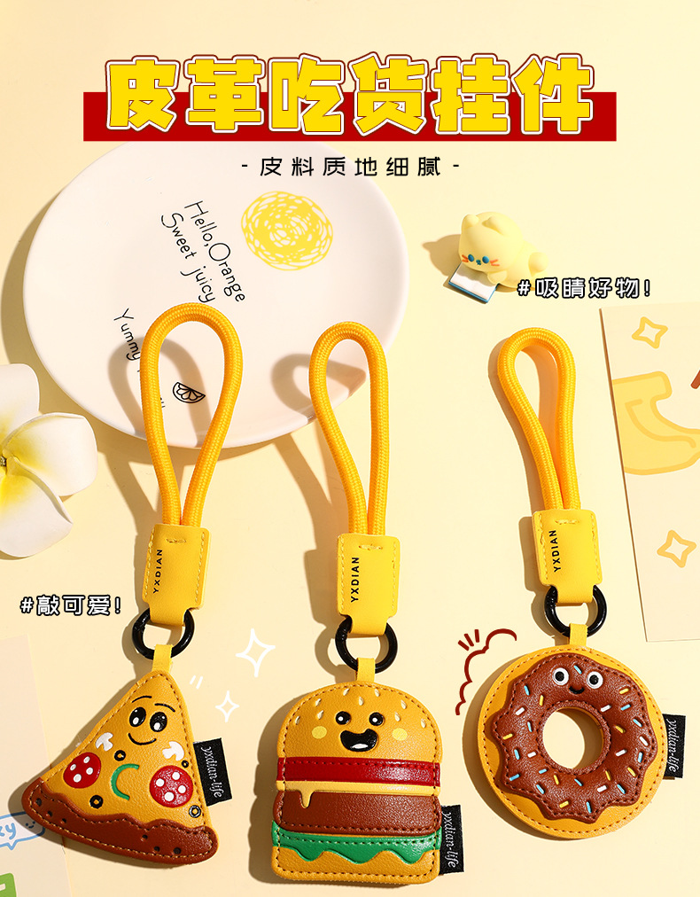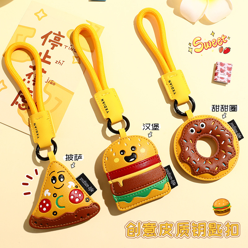 美食皮革吃货汉堡汽车钥匙扣精致卡通学生包包个性装饰小礼品批发