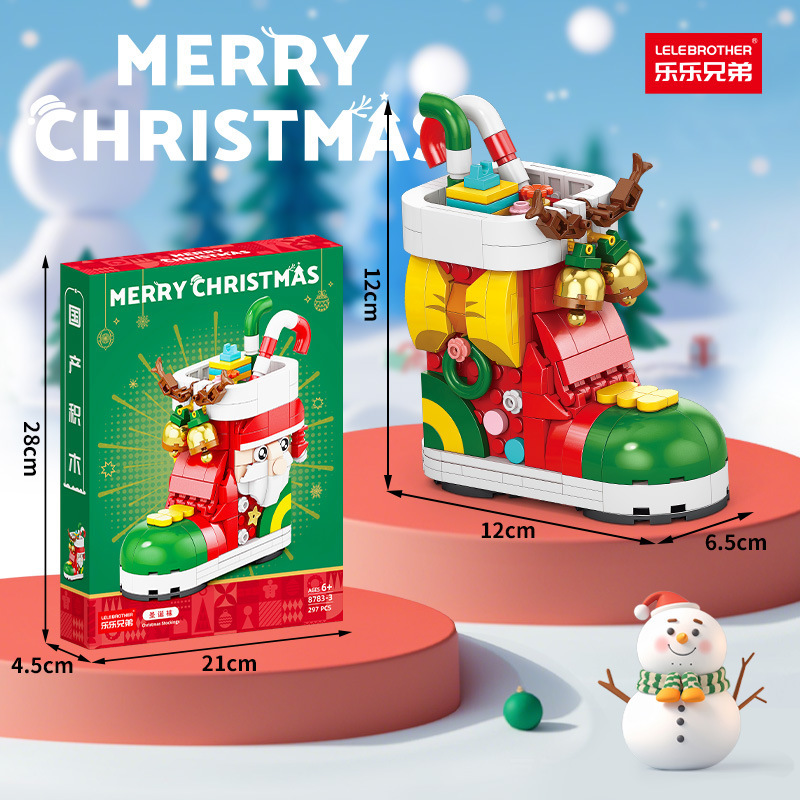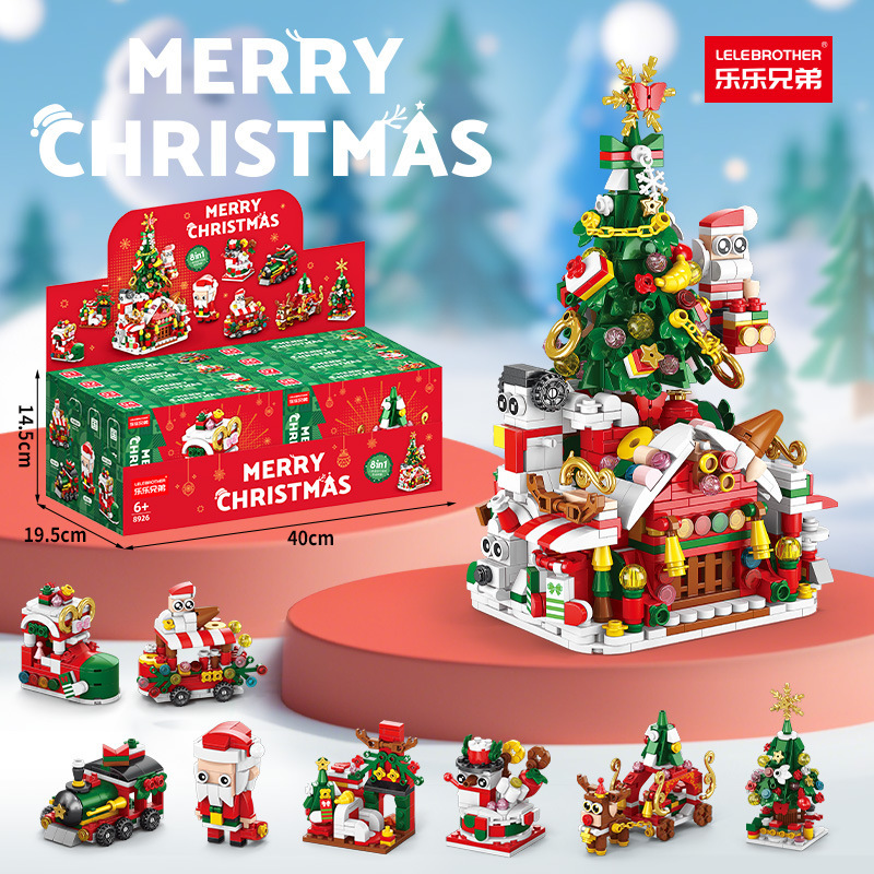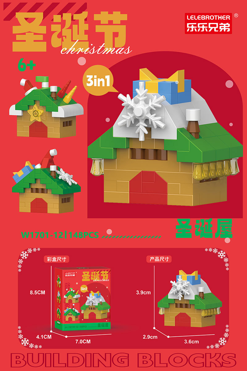 乐乐兄弟8939圣诞老人雪屋盲盒拼装儿童男女孩积木玩具礼品小礼盒