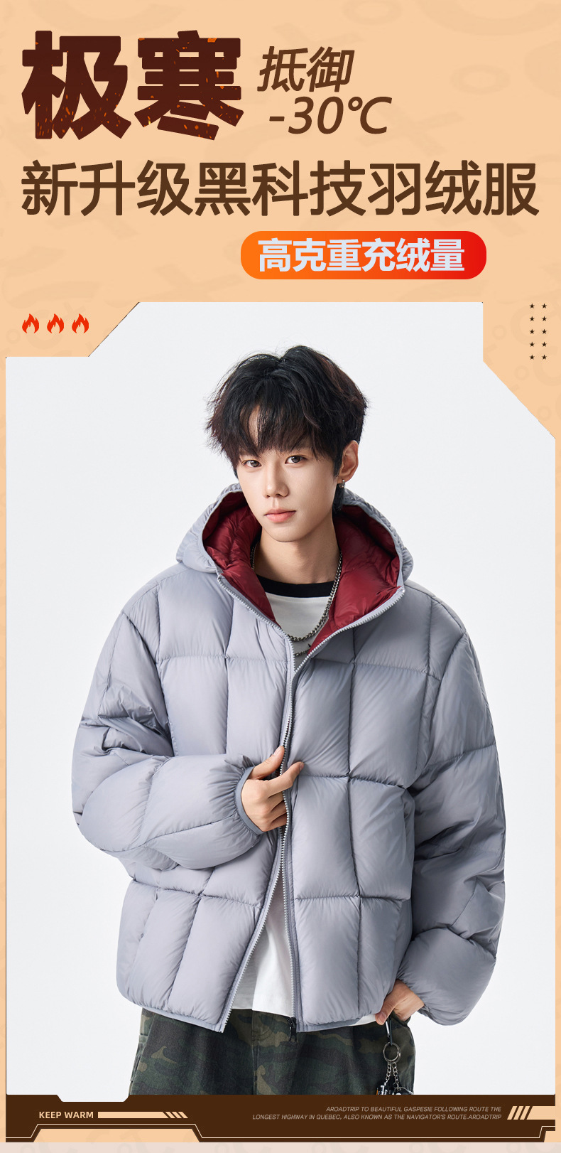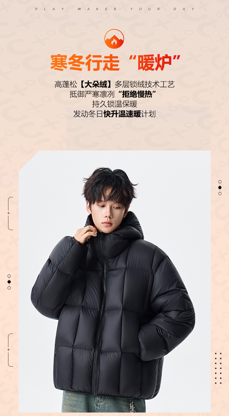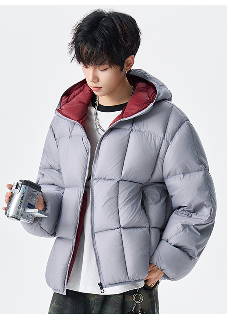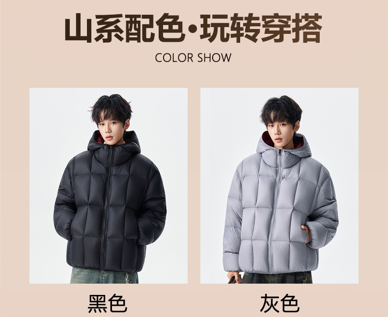 跨境冬季撞色清新羽绒服时尚情侣款加厚保暖羽绒洋气休闲男女外套