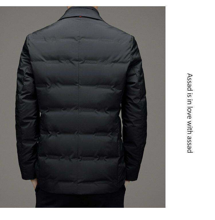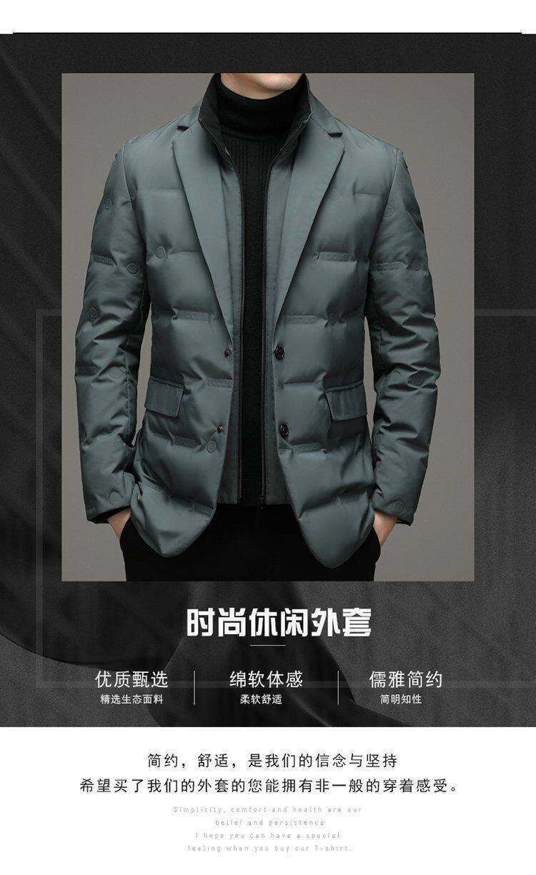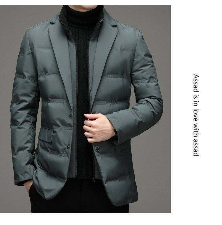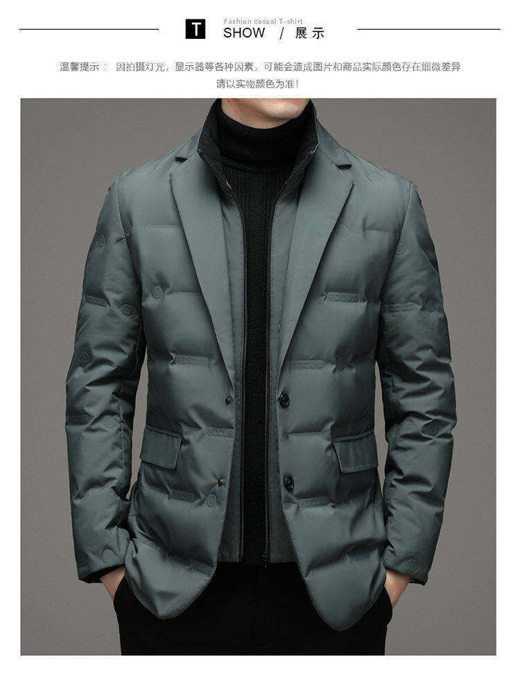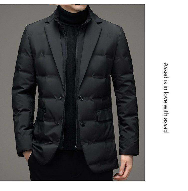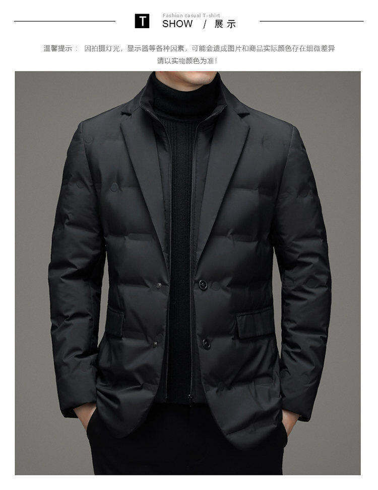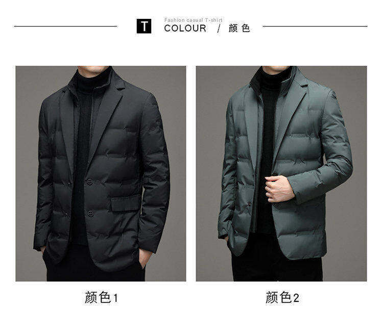 脱卸领羽绒西装2025加肥加大男士冬季新款假两件西服式羽绒服跨境