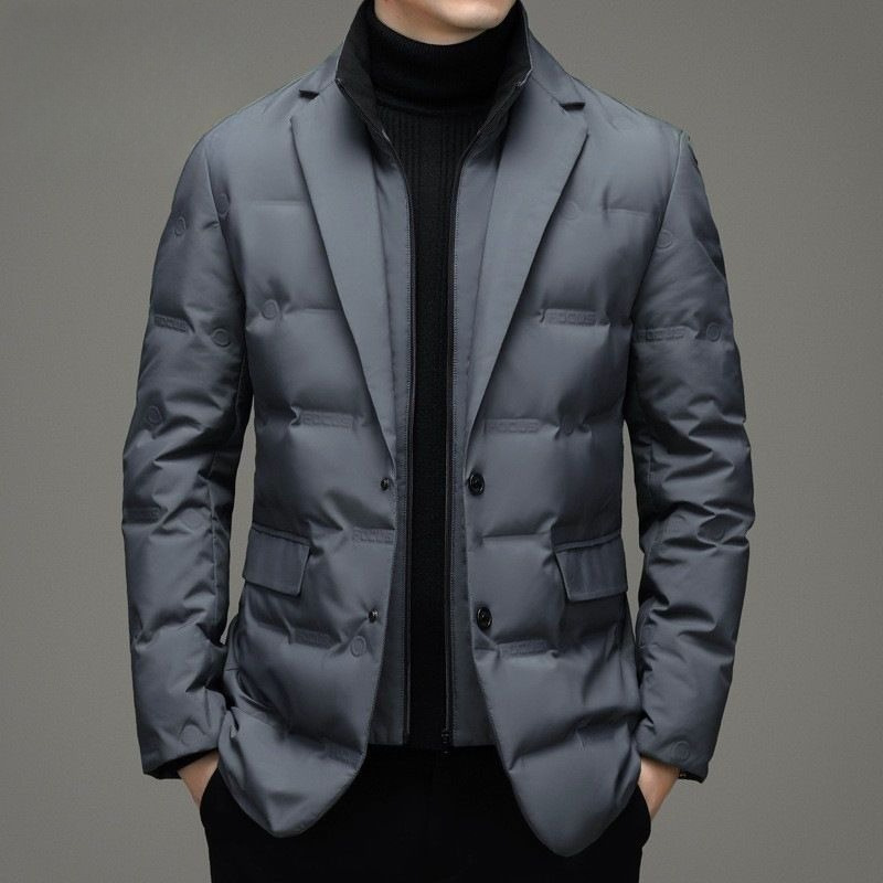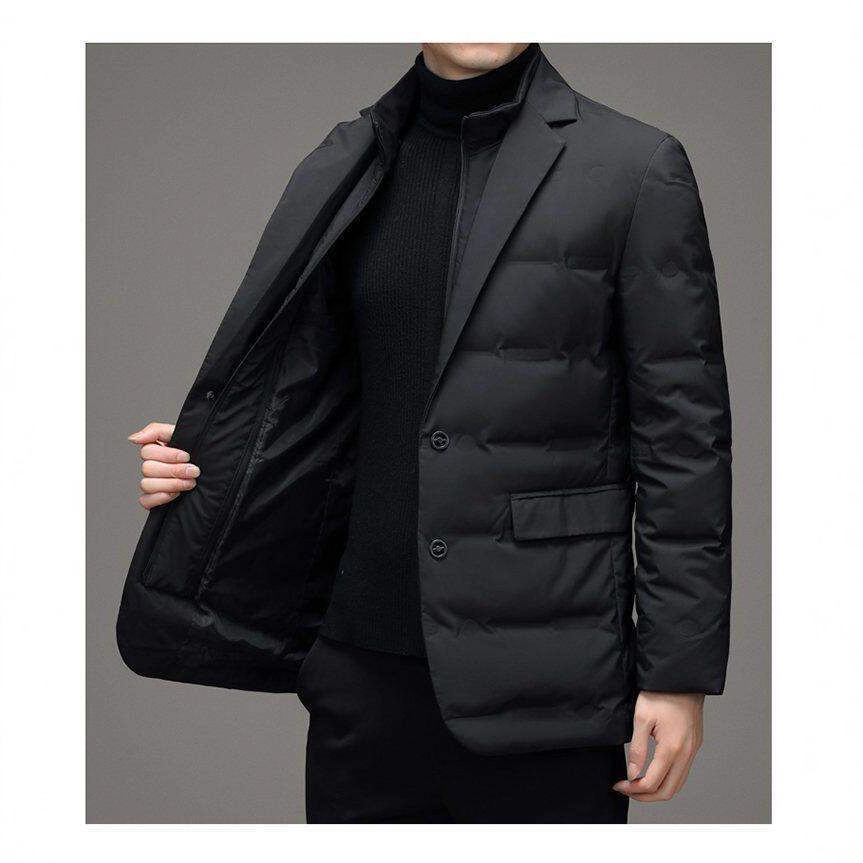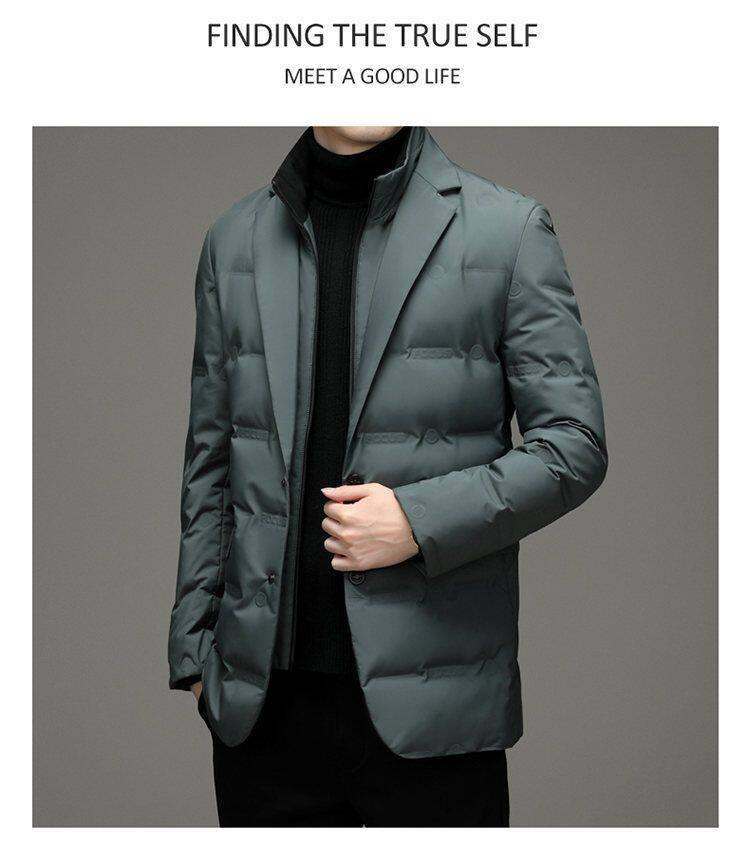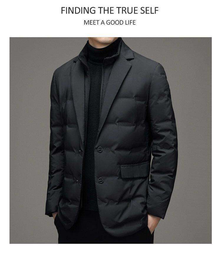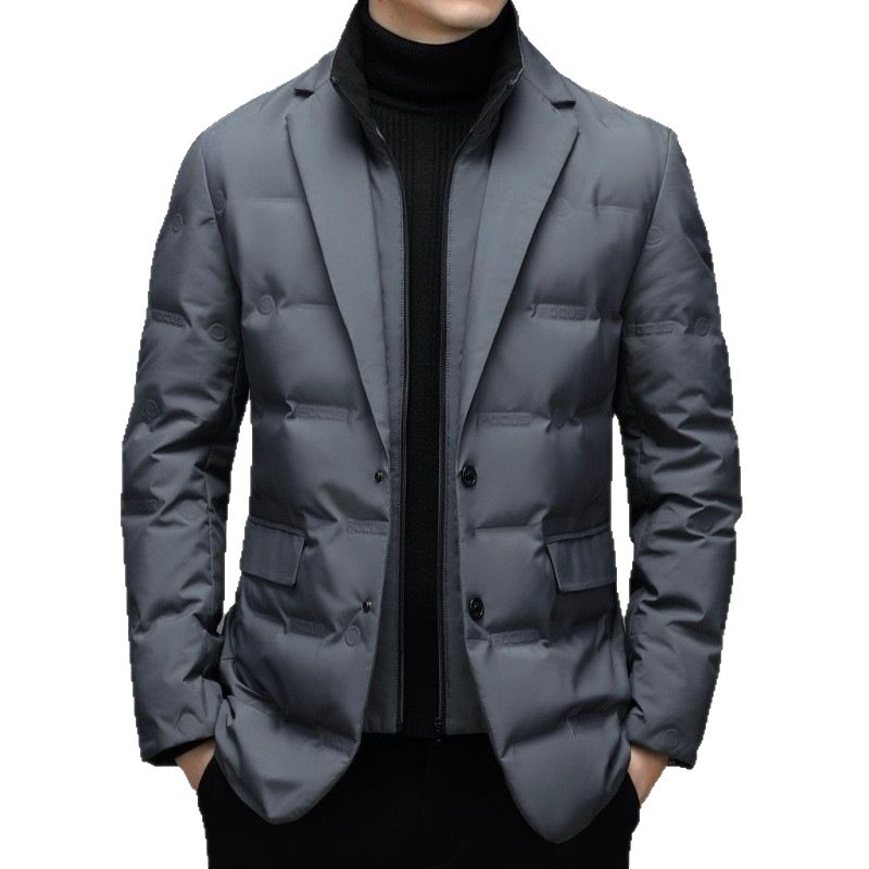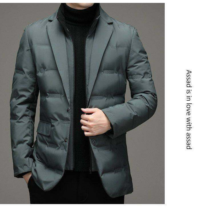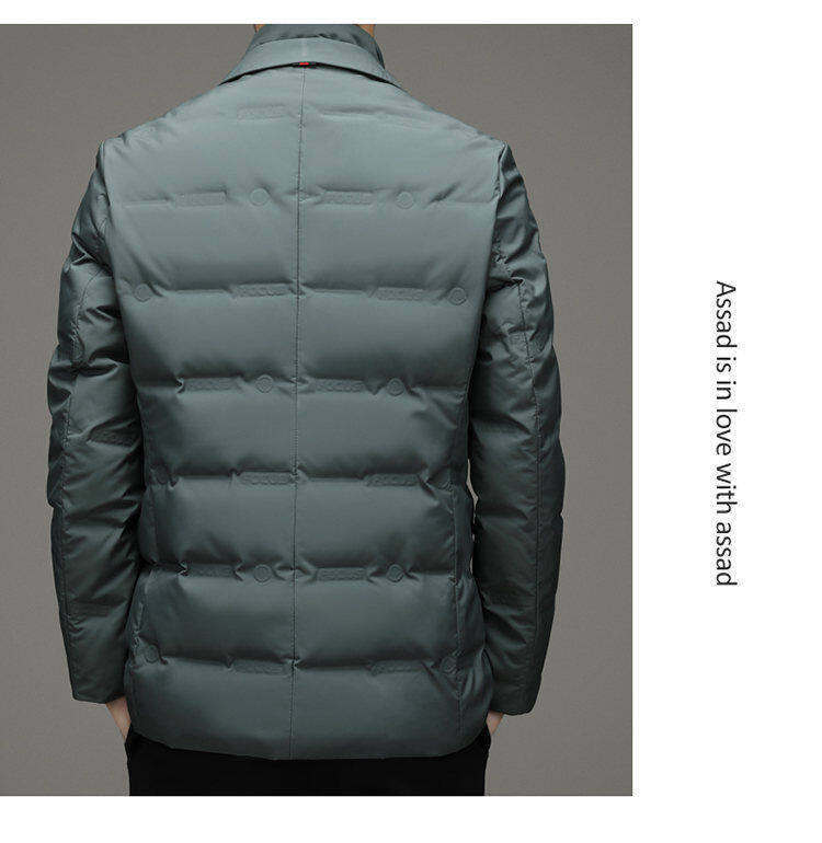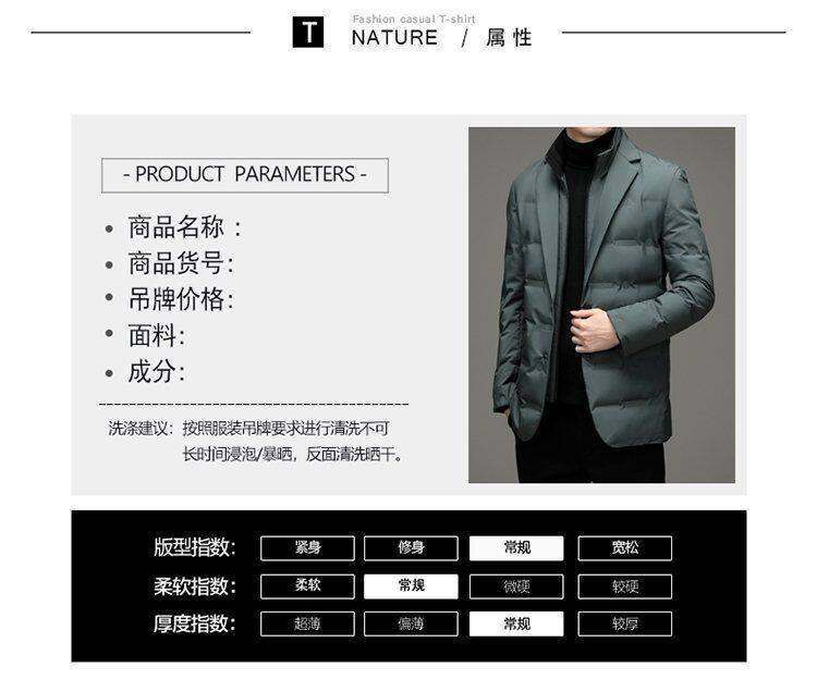 脱卸领羽绒西装2025加肥加大男士冬季新款假两件西服式羽绒服跨境