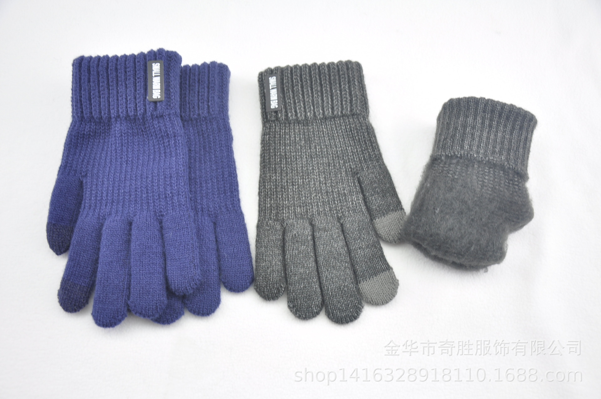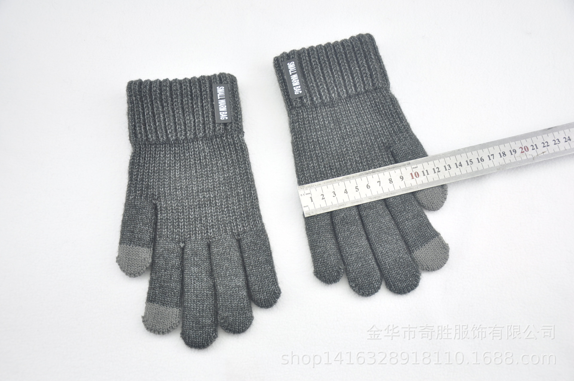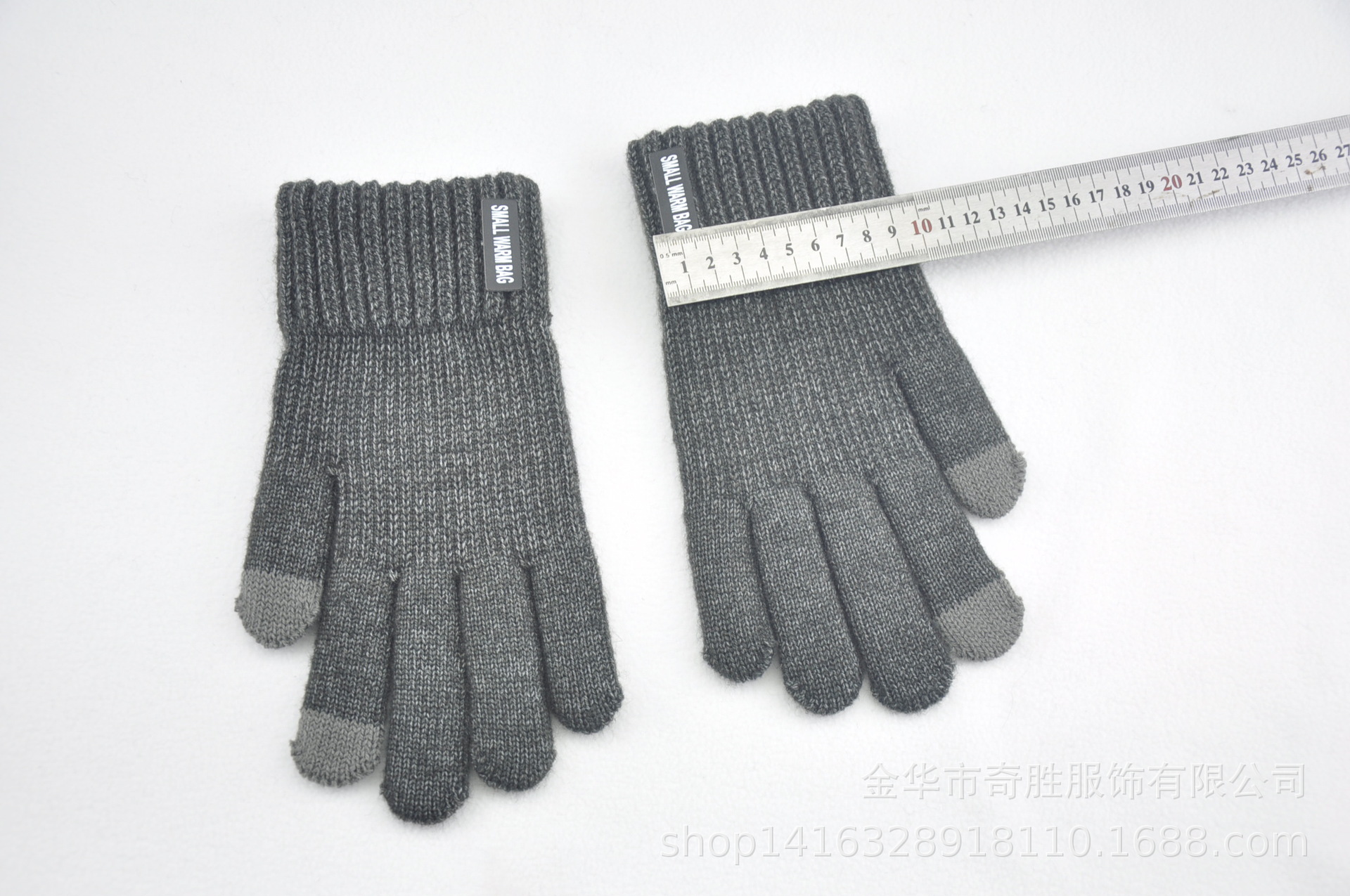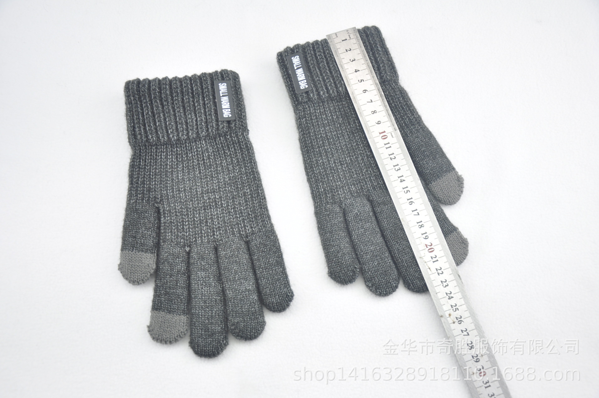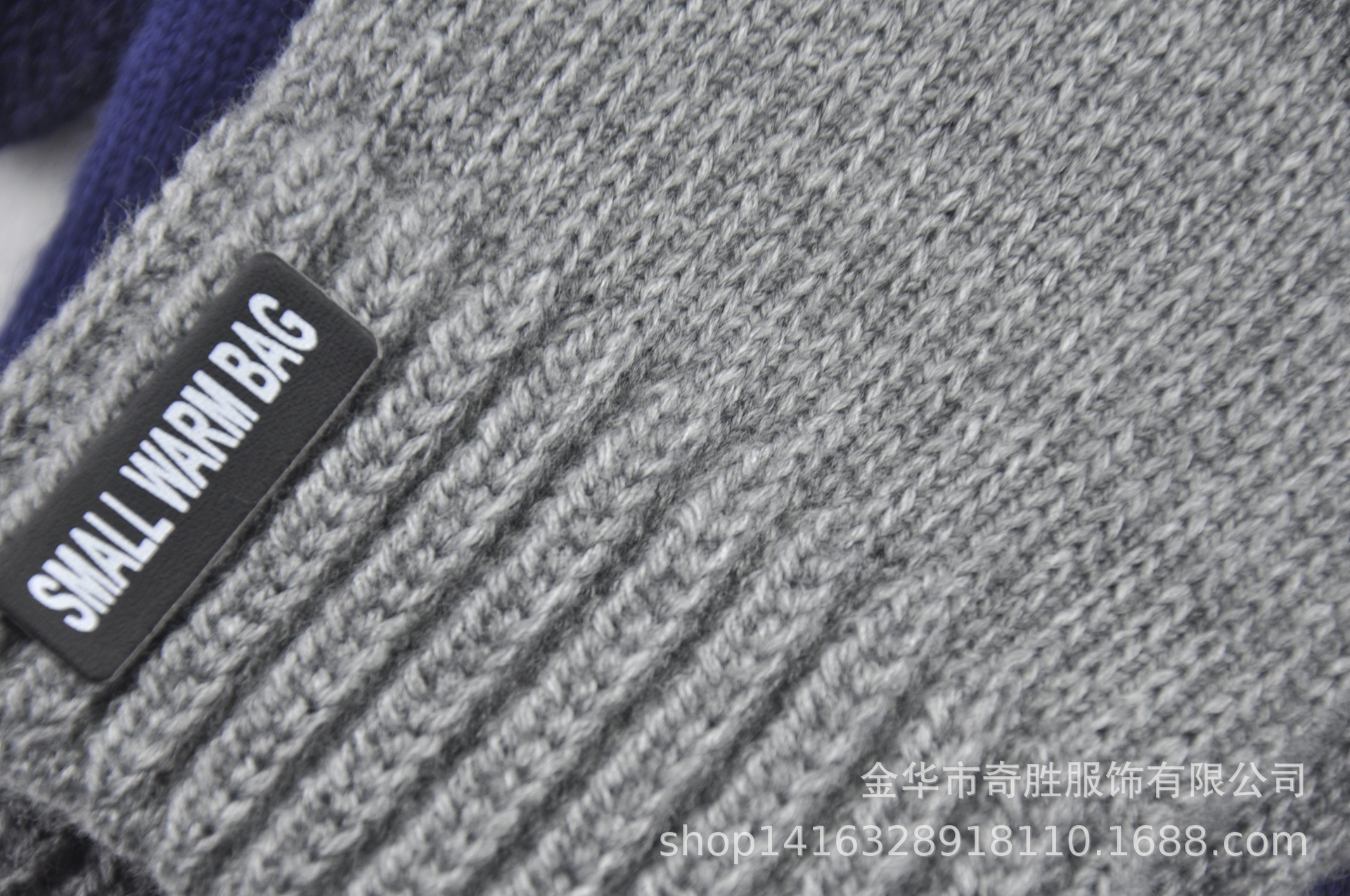 冬季户外男士加大加绒加厚骑行保暖手套 羊驼绒毛线针织提花手套