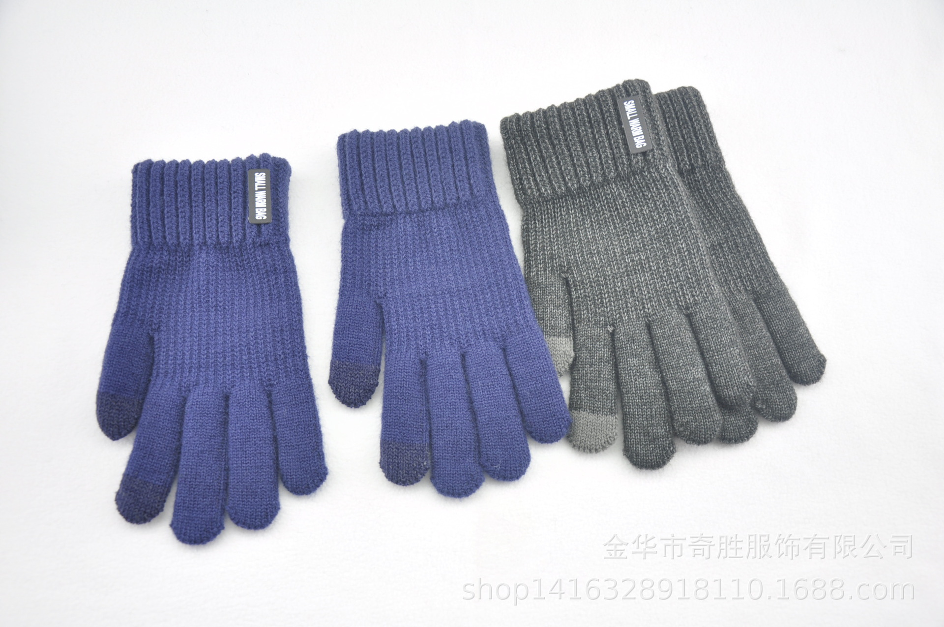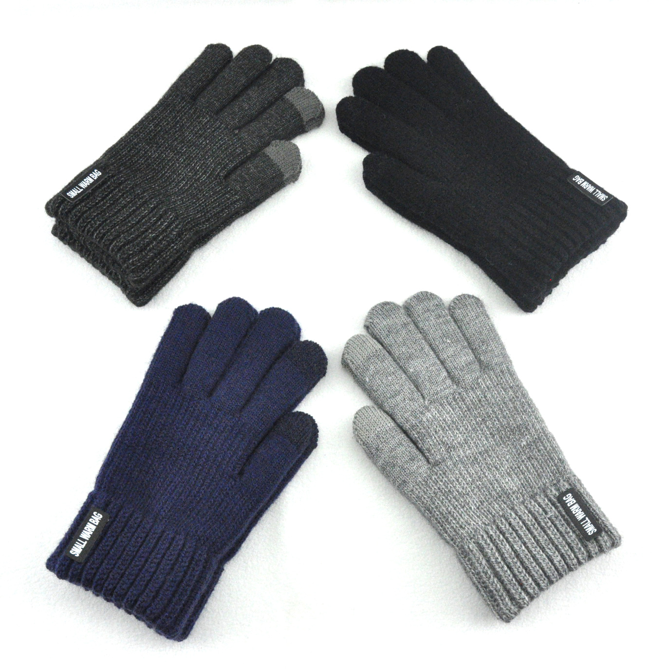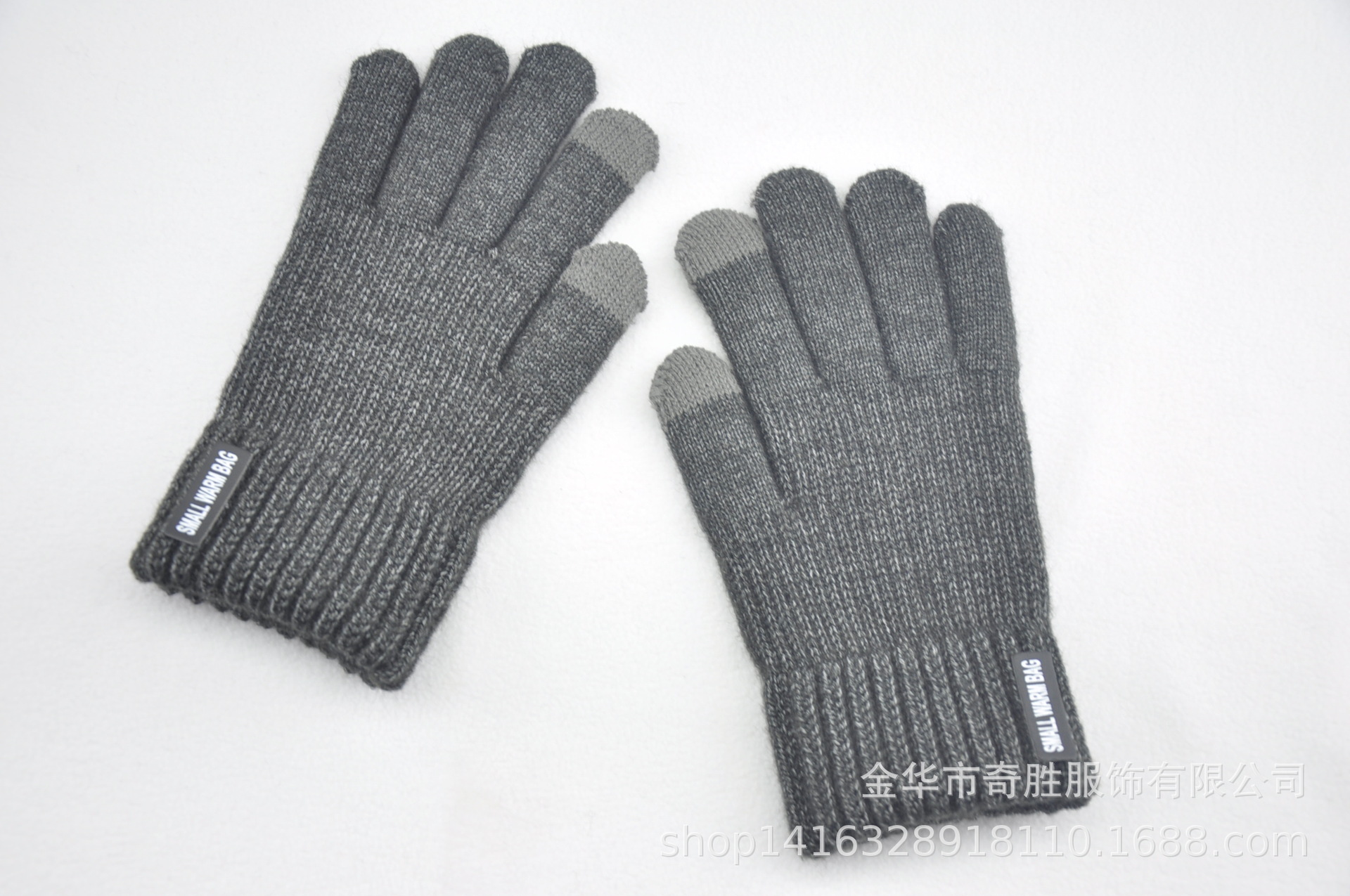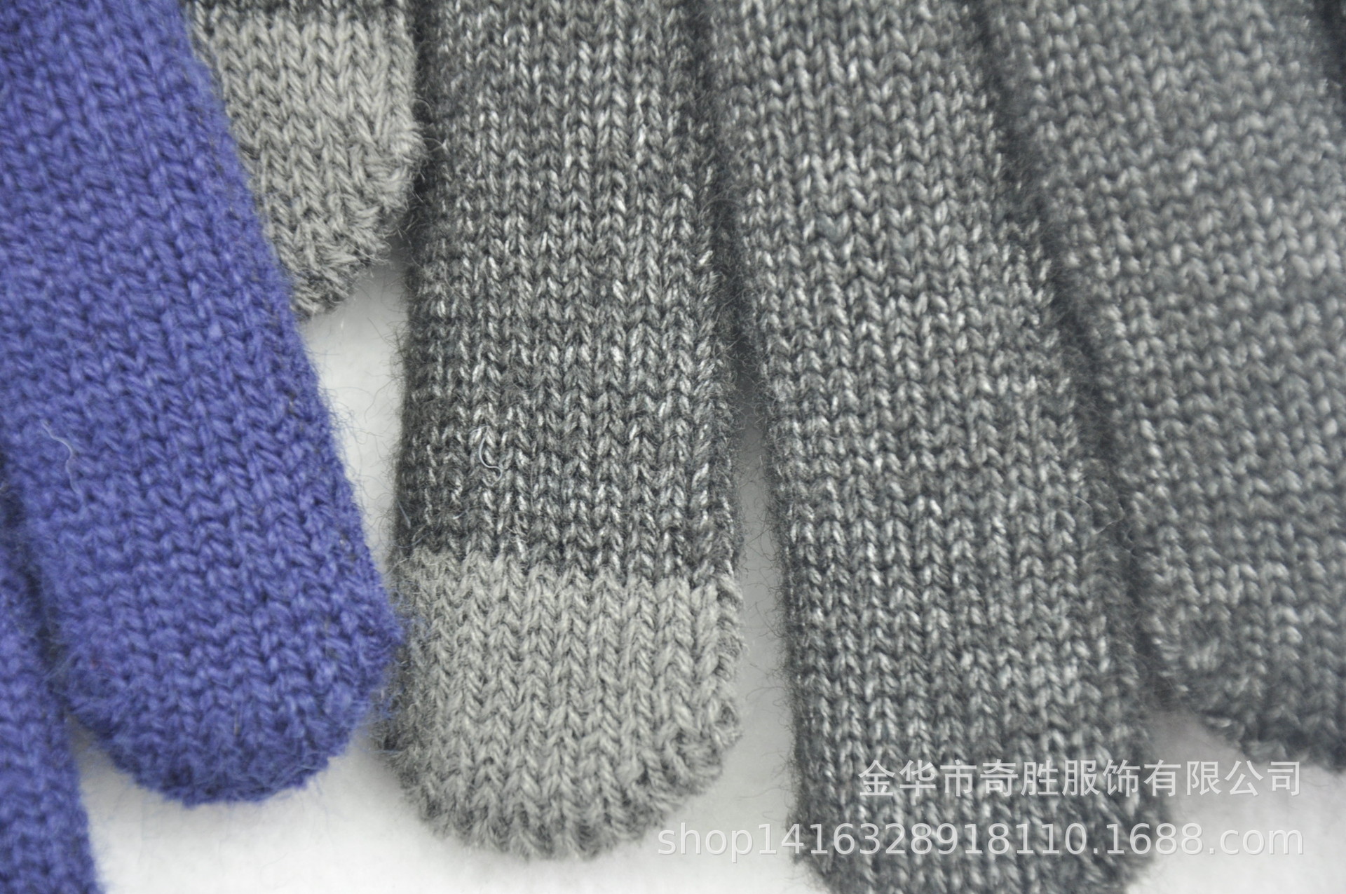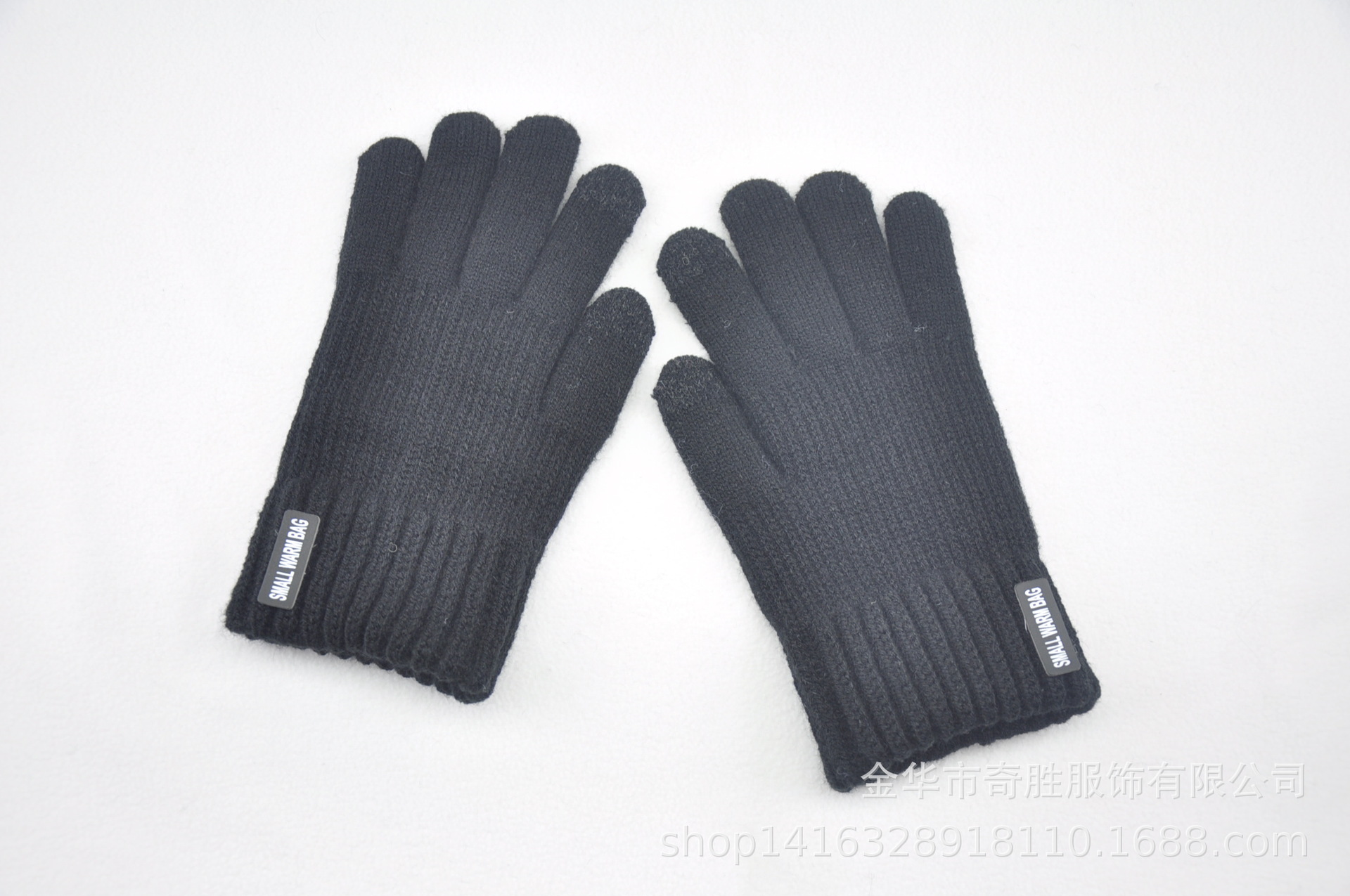 冬季户外男士加大加绒加厚骑行保暖手套 羊驼绒毛线针织提花手套