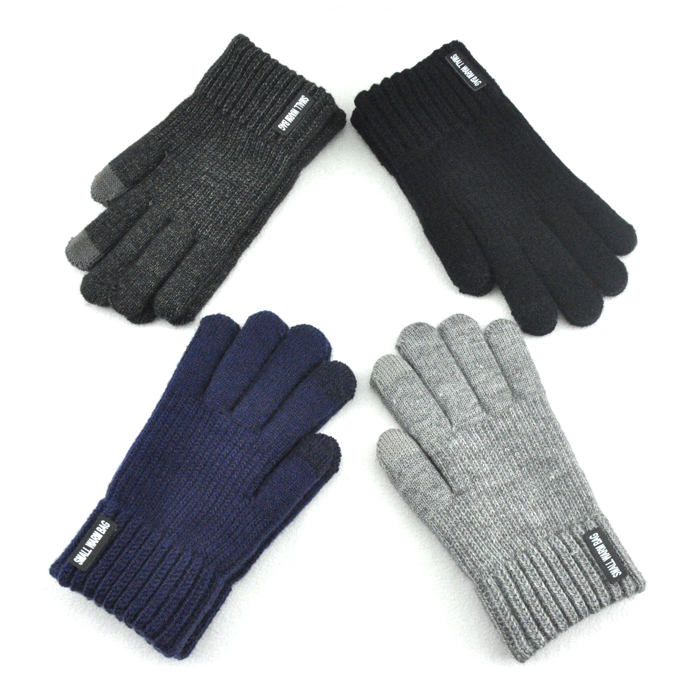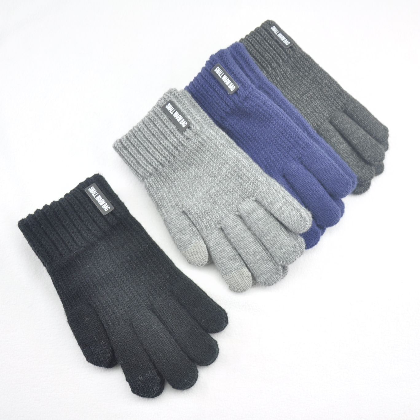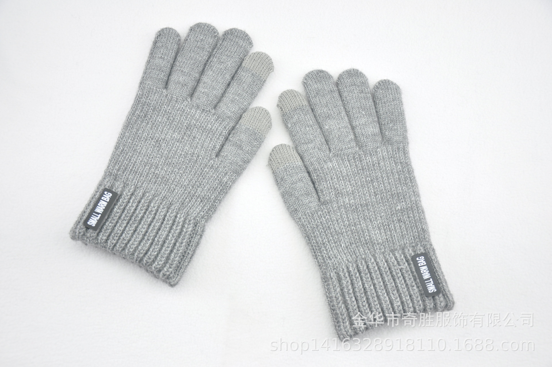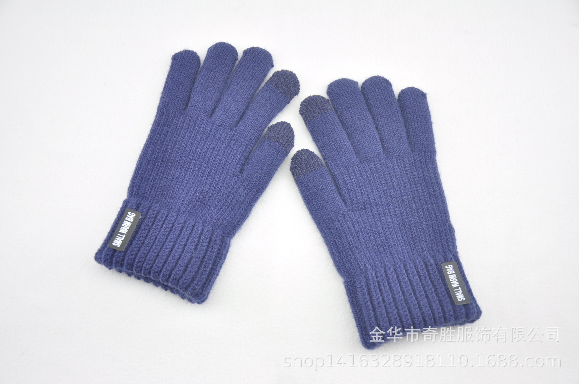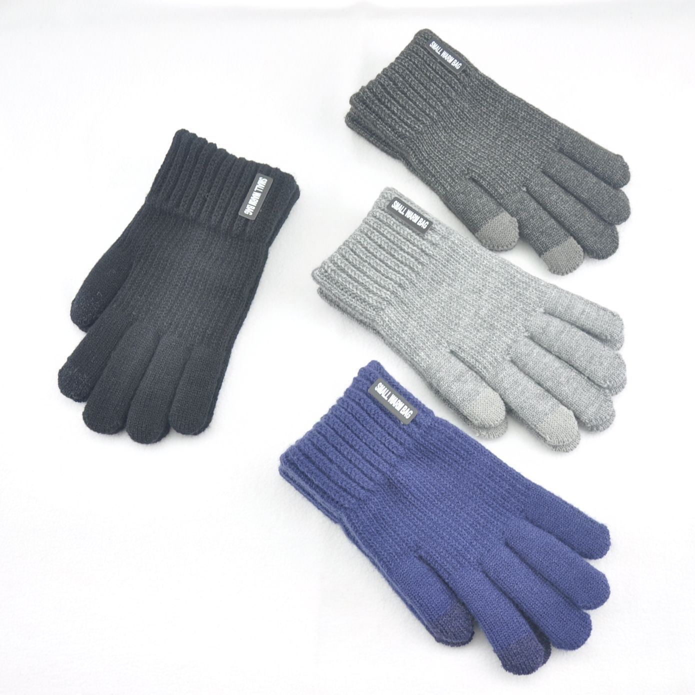 冬季户外男士加大加绒加厚骑行保暖手套 羊驼绒毛线针织提花手套