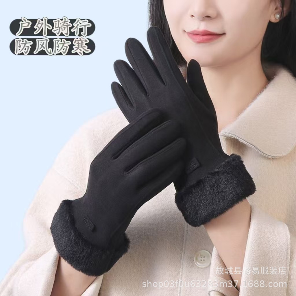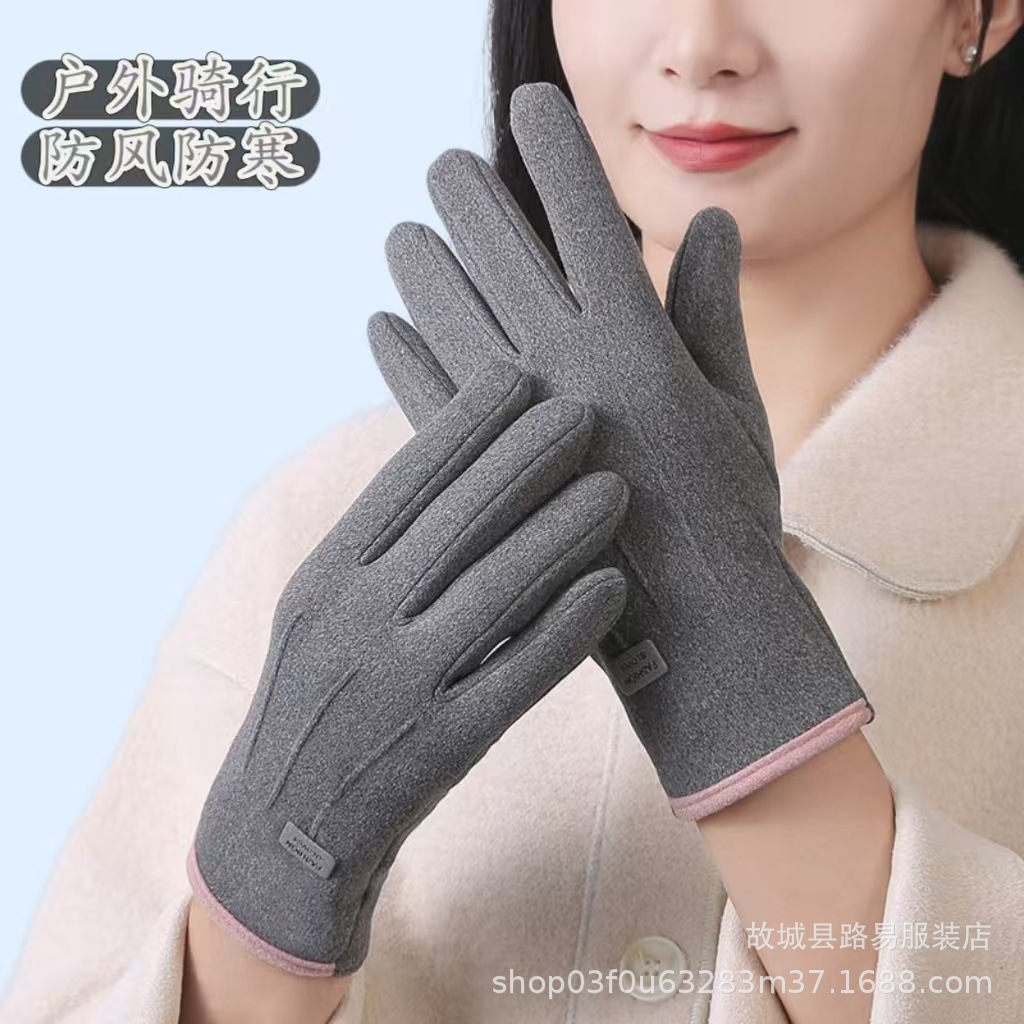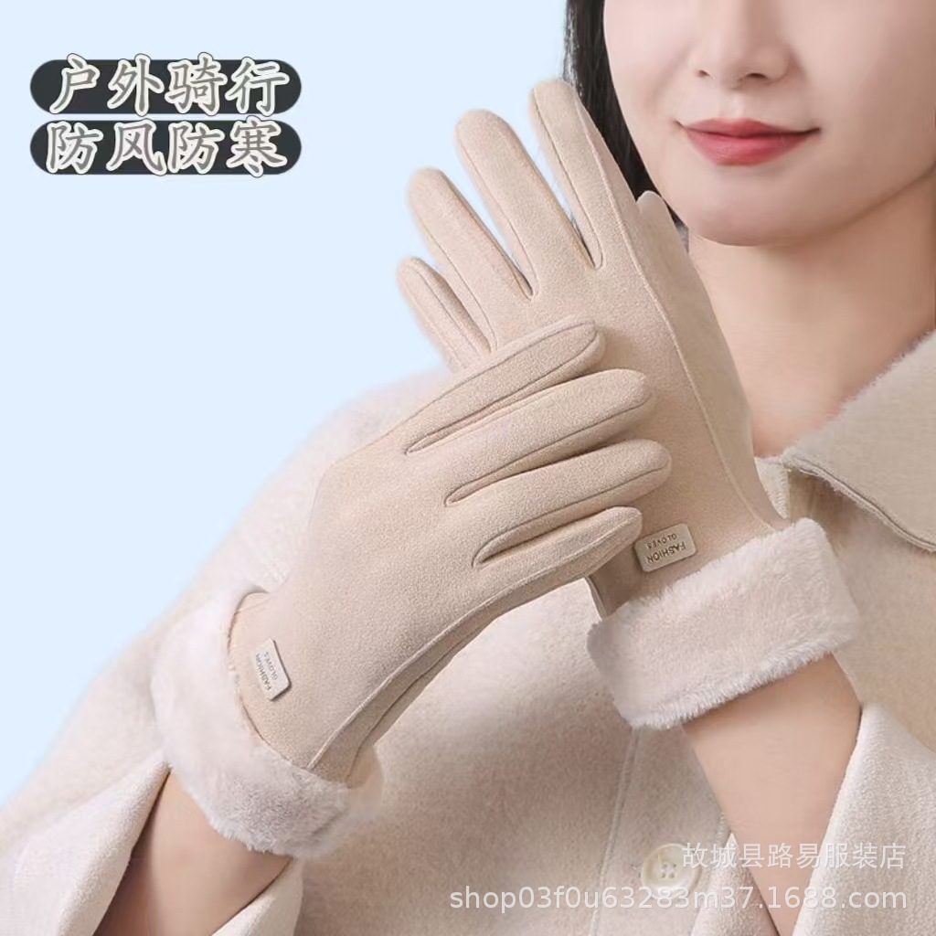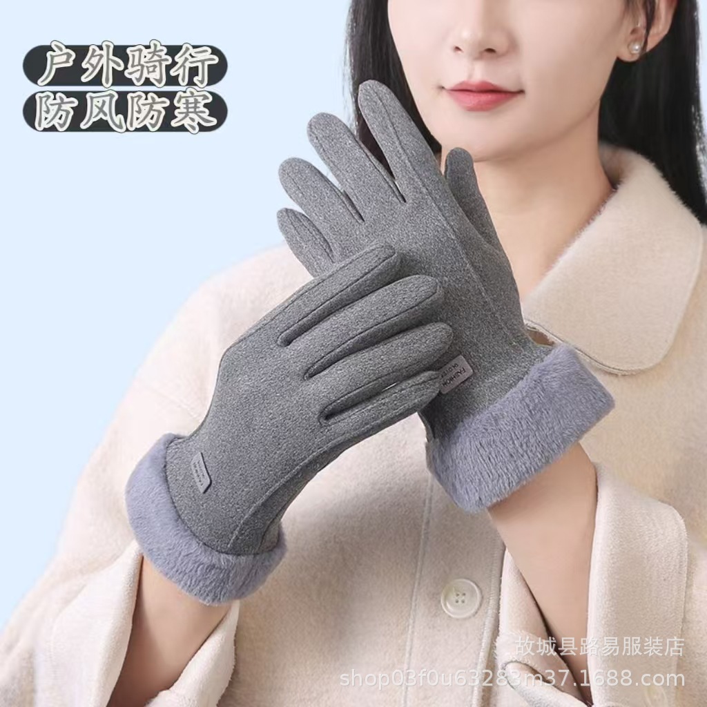 德绒手套女秋冬季户外骑行防寒棉羊绒摇粒绒开车自行车保暖手套