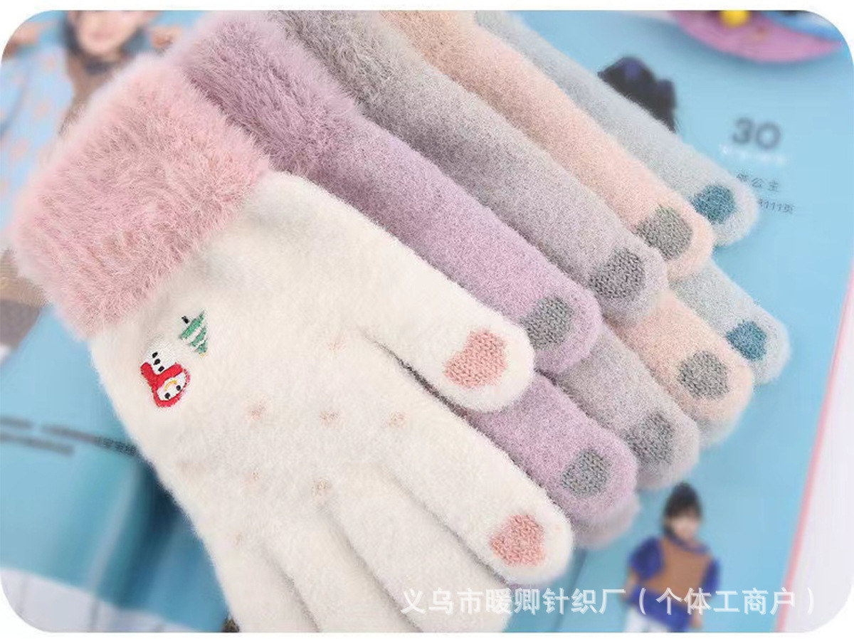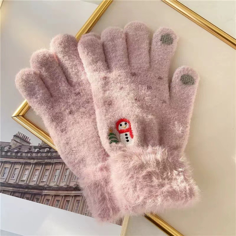 秋冬手套雪人可爱保暖时尚五指手套触屏加绒加厚针织手套批发防寒