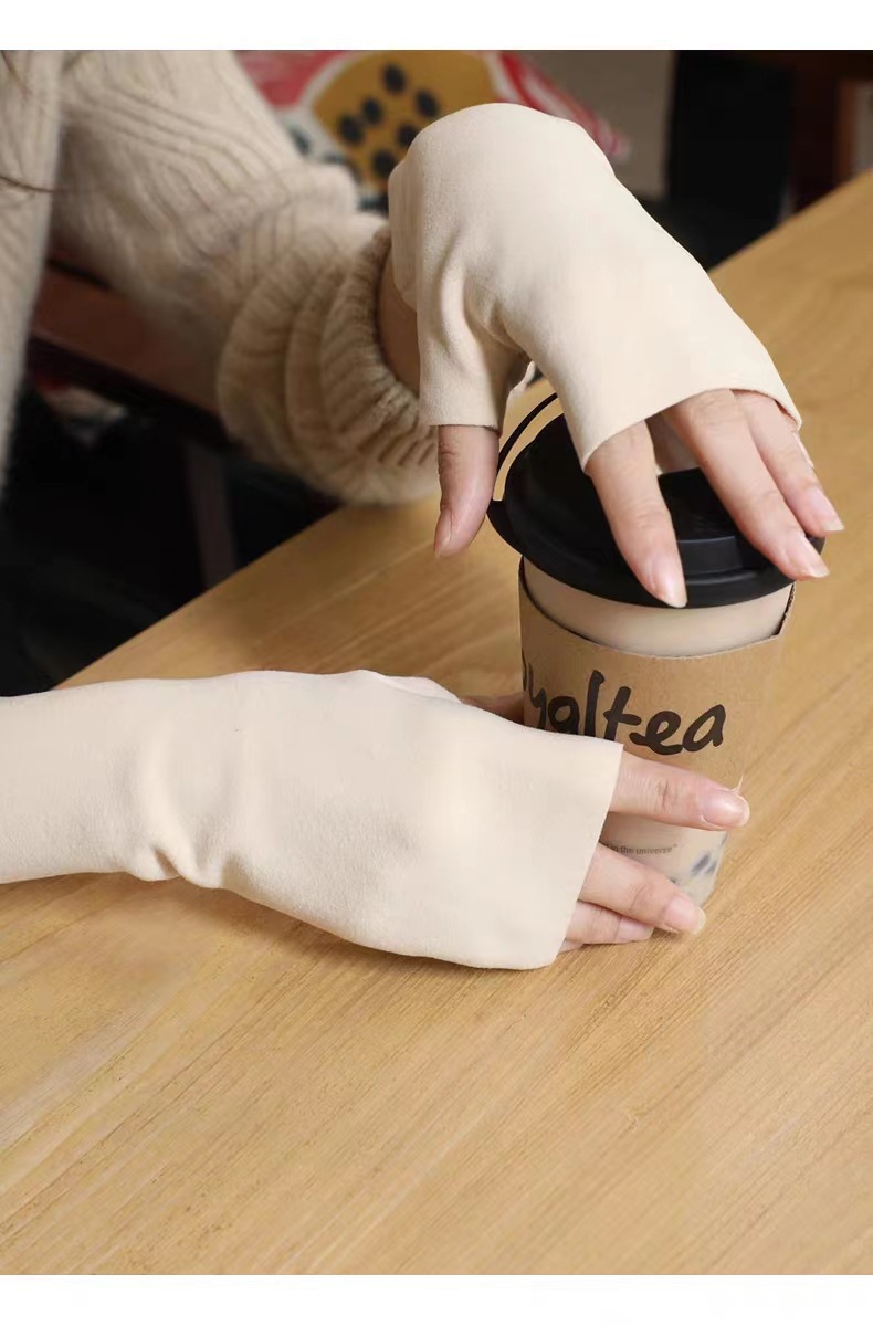 半指手套女冬保暖德绒自发热加绒护腕露指手套男女写字办公室打字