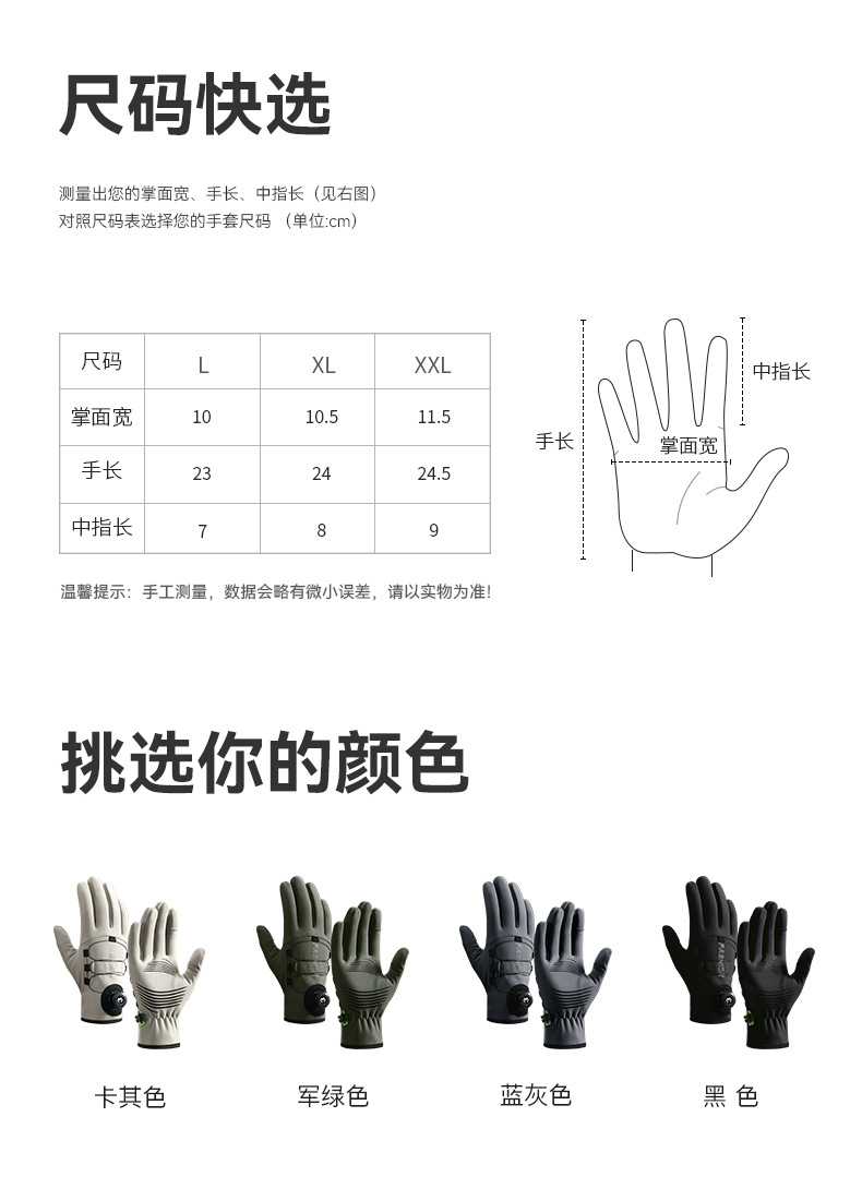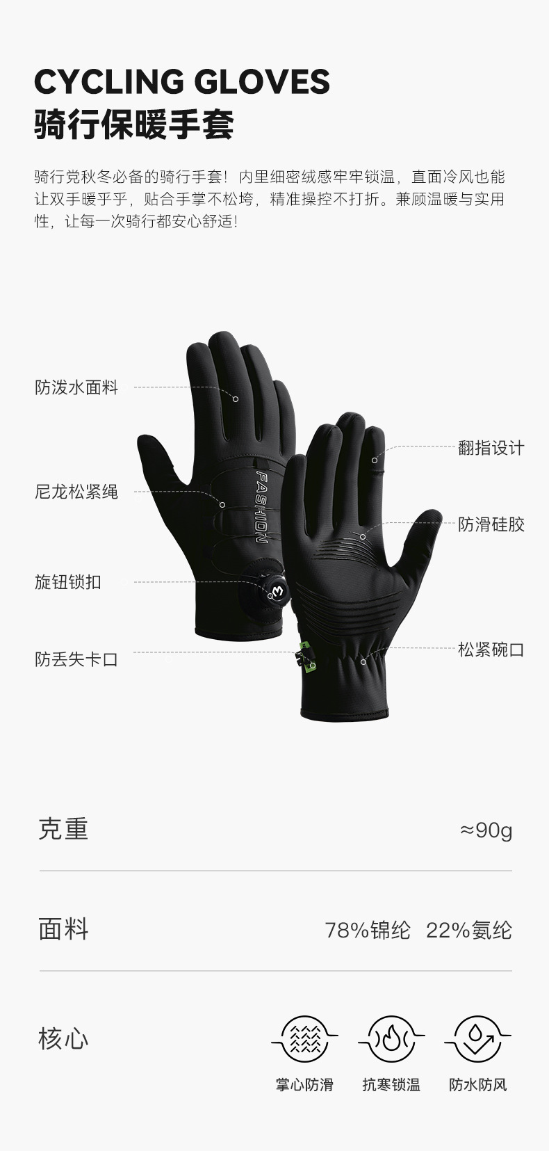 冬季骑车防风手套可触屏加绒保暖户外运动骑行防水防滑纽扣款DB83