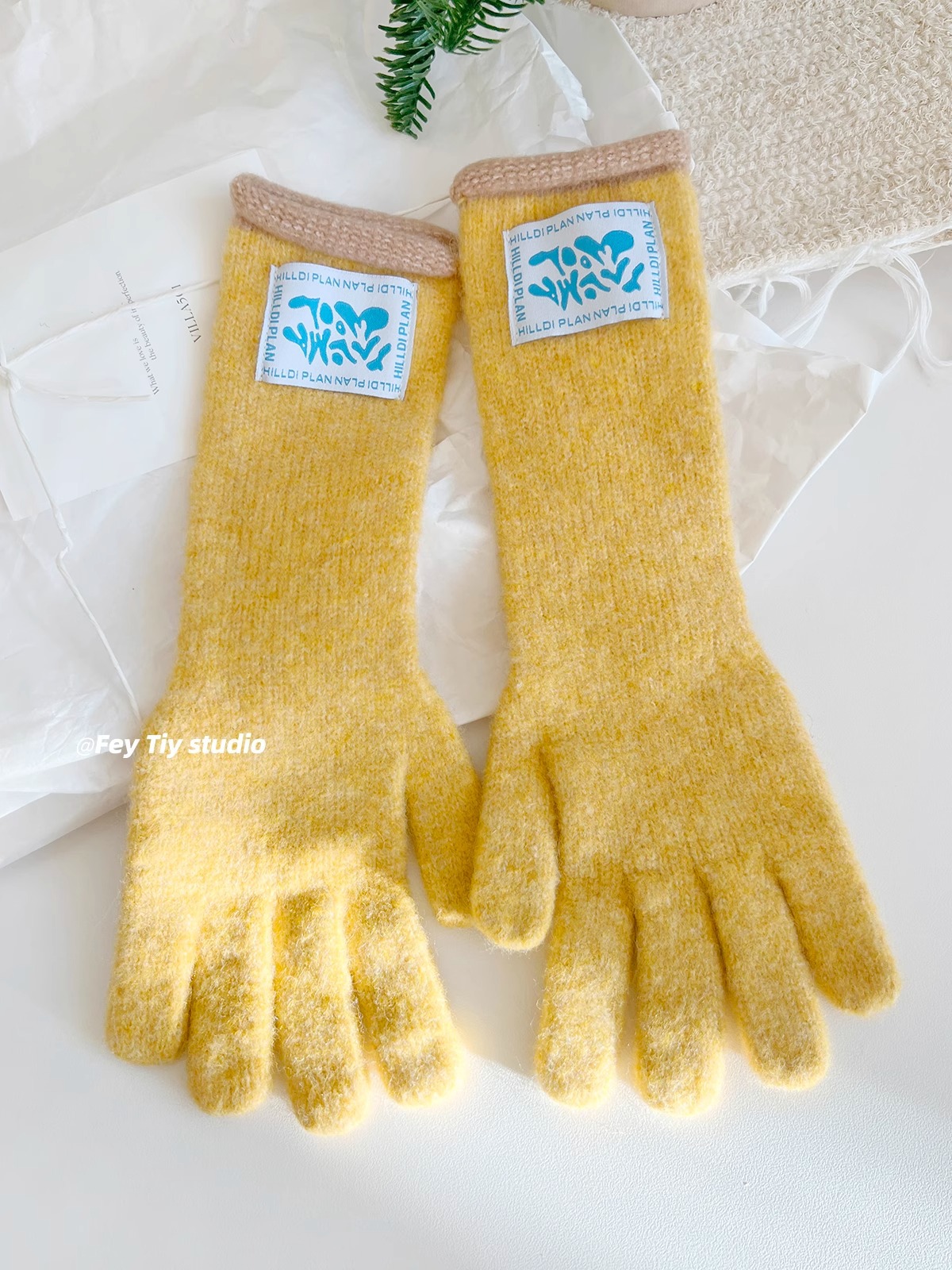韩国订单含羊毛撞色加长手套秋冬保暖可爱可触屏百搭分指针织手套