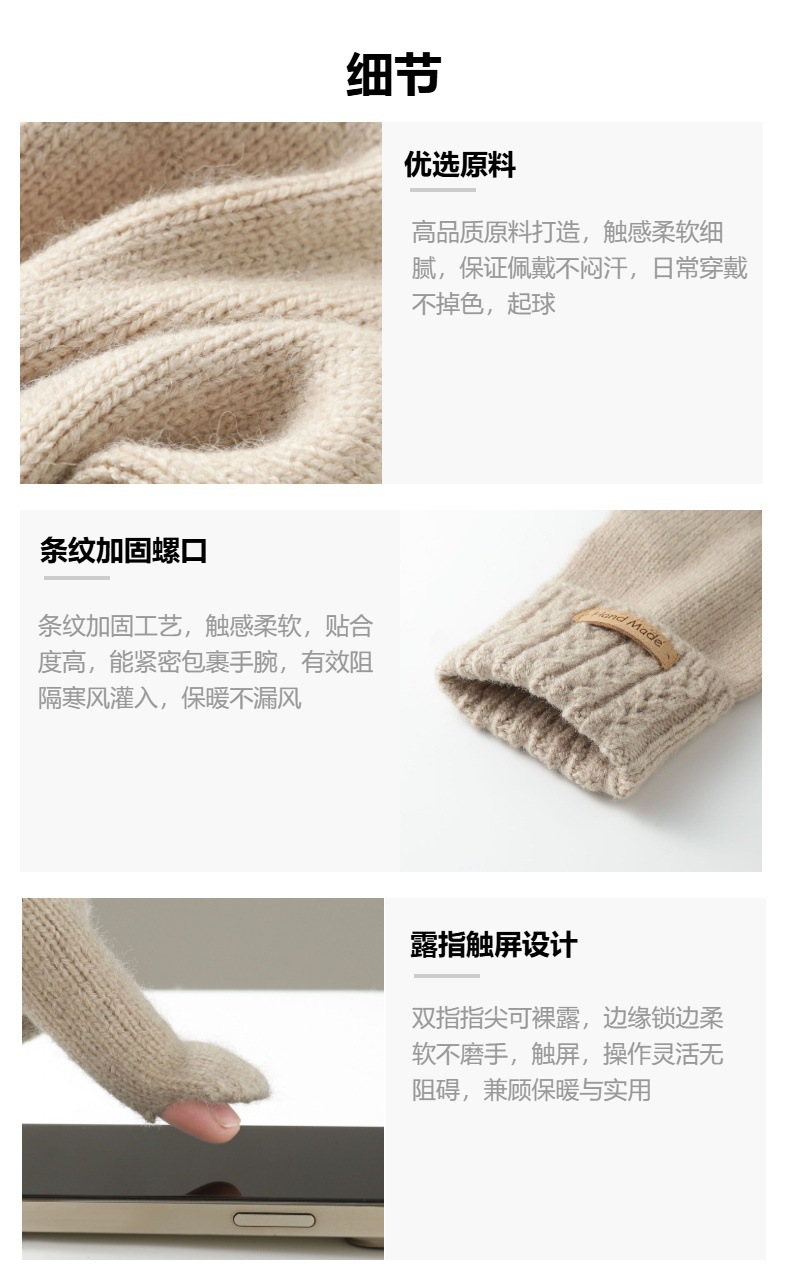 纯色宽松露指手套全指触屏手套护手户外骑行保暖手套厂家跨境男女