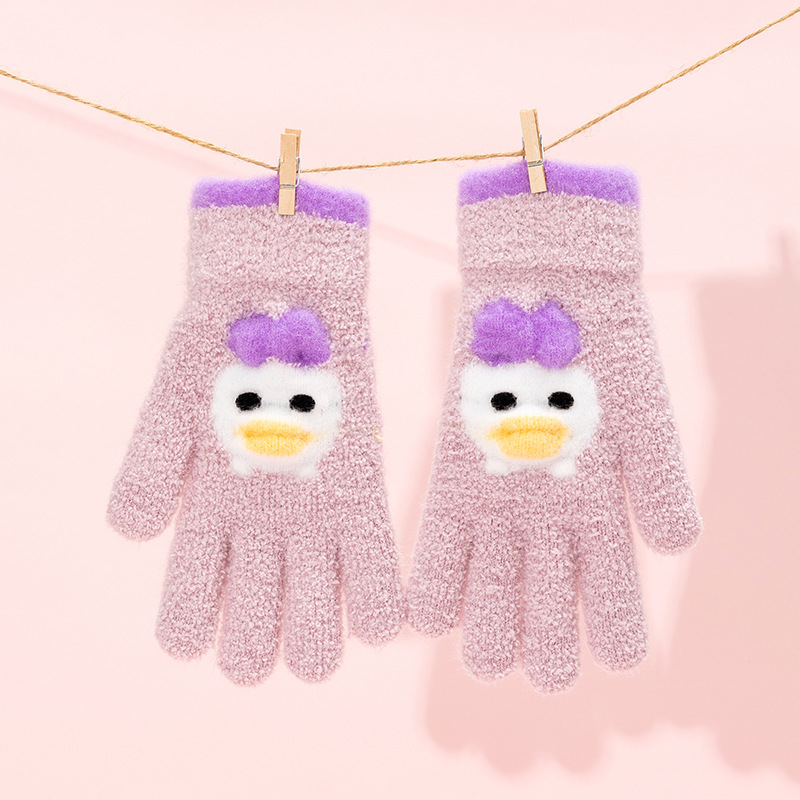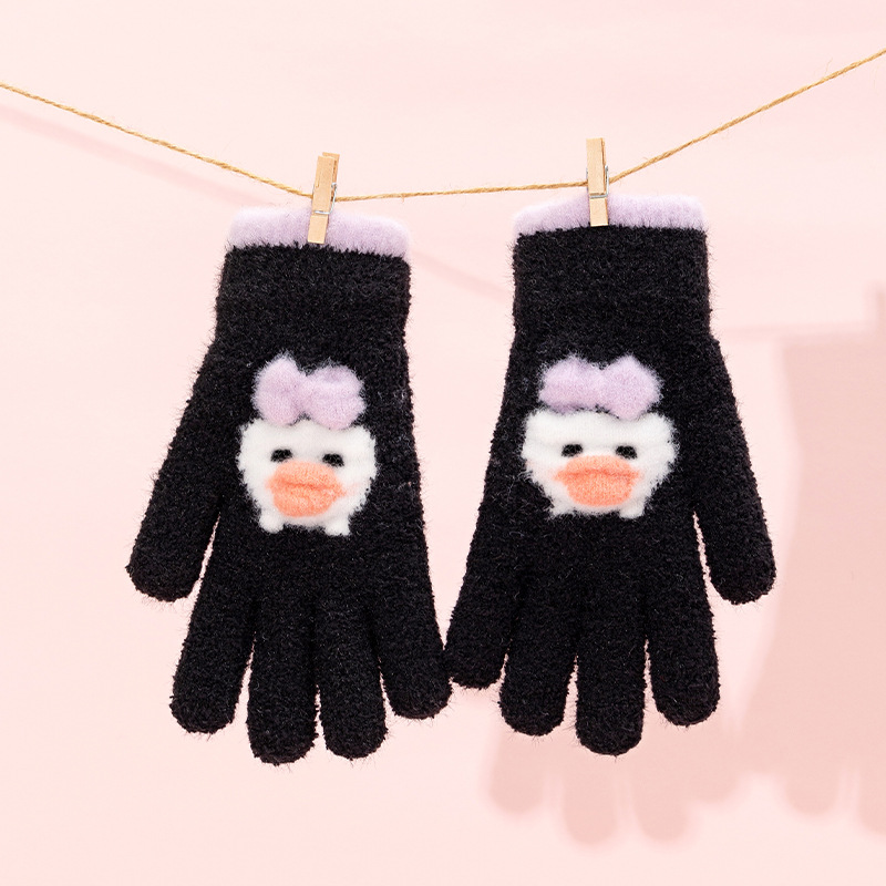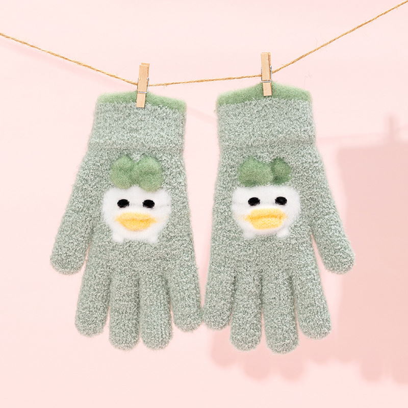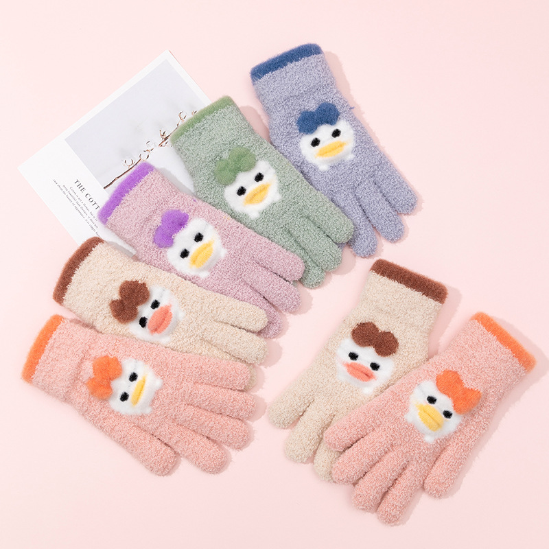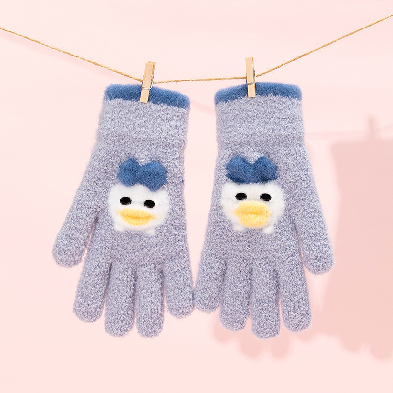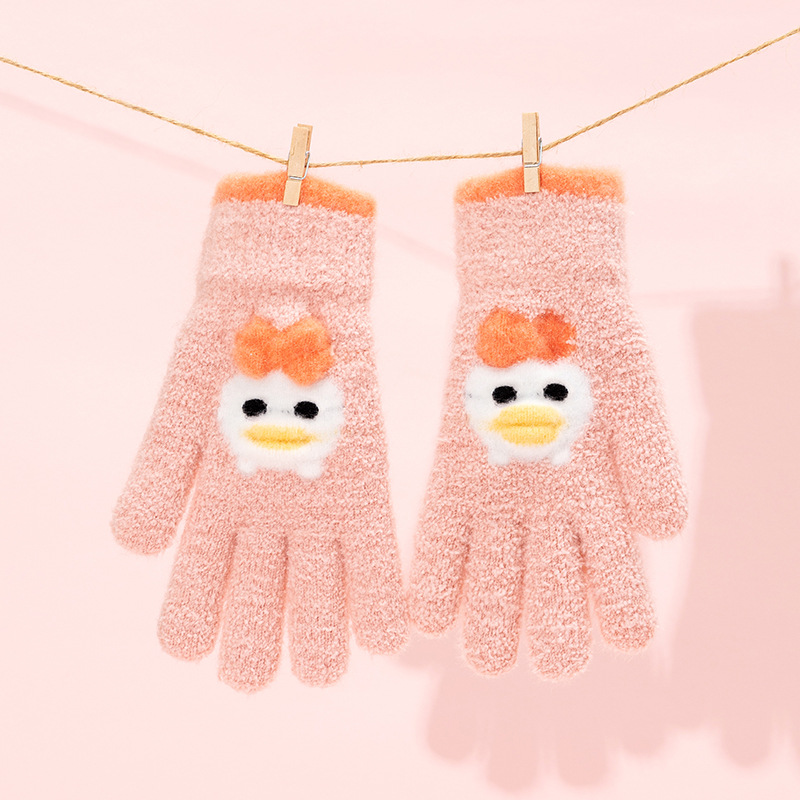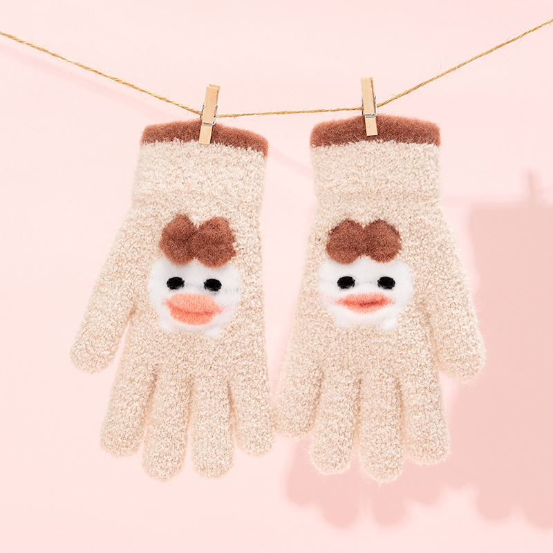 触屏可爱针织五指手套女生卡通加绒毛线加厚手套保暖户外学生冬季